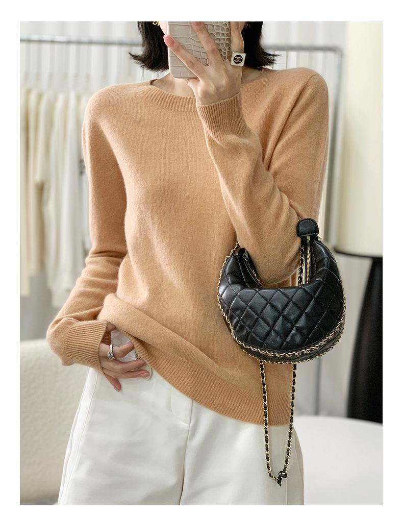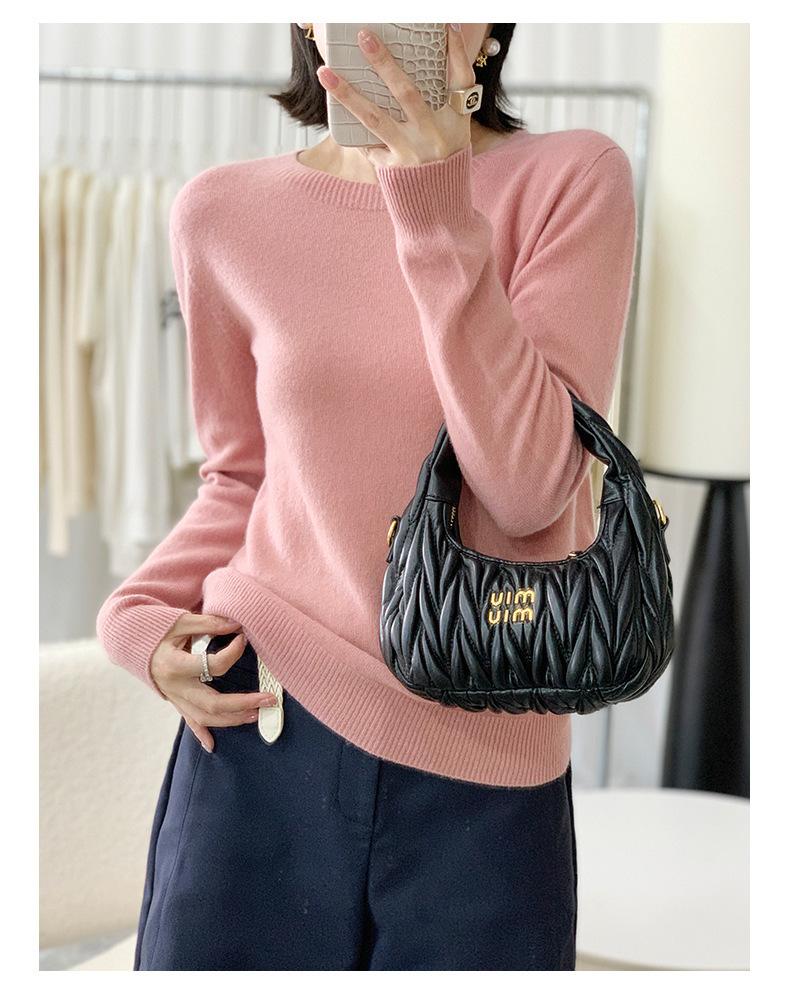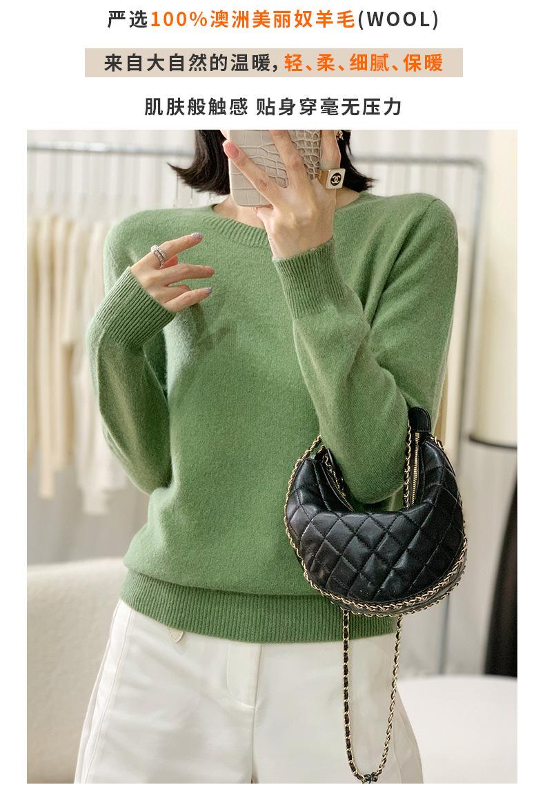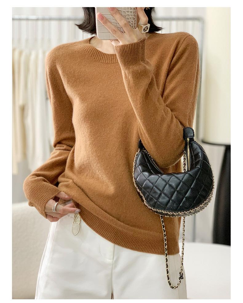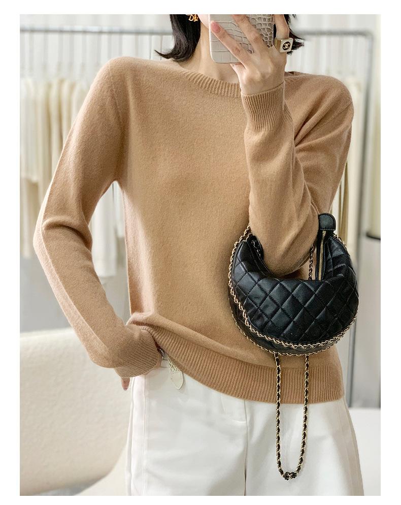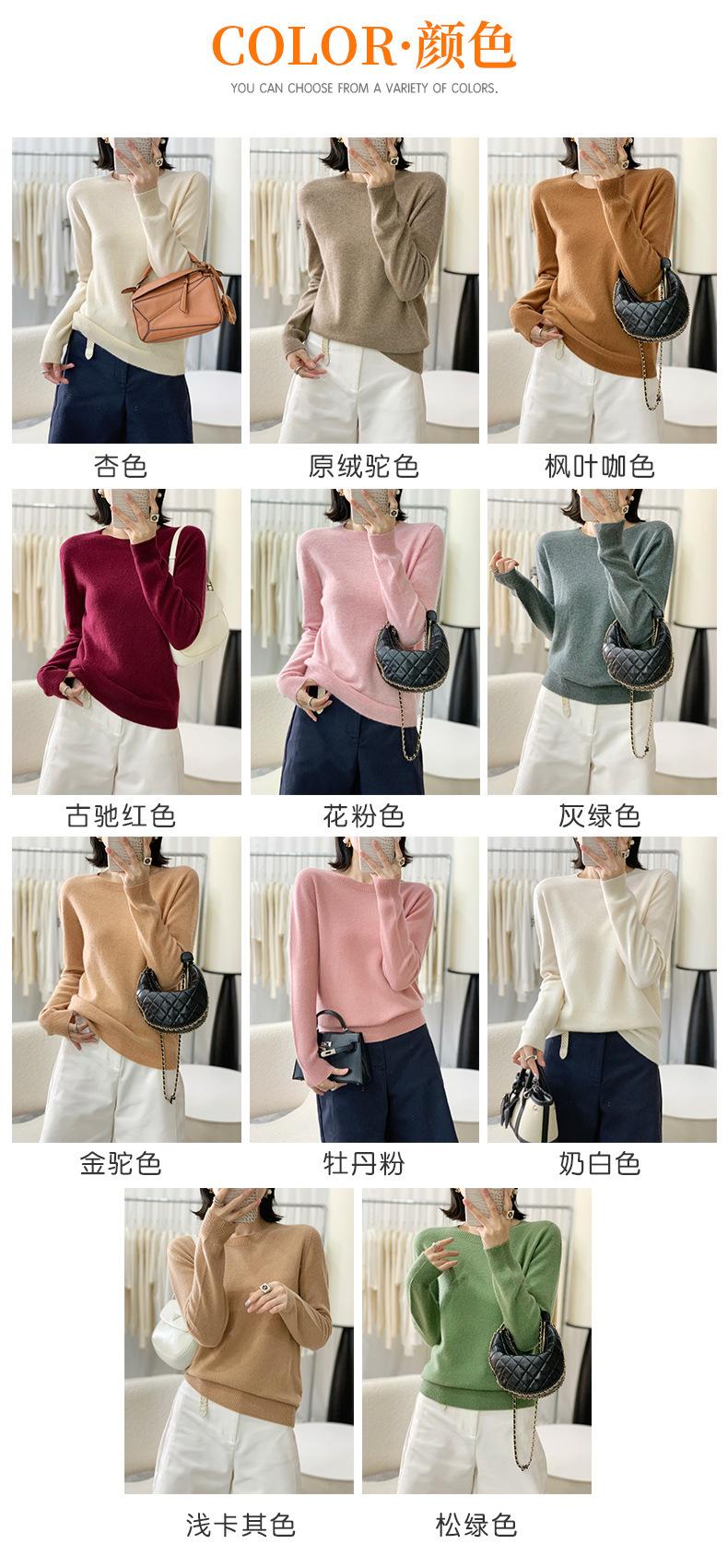 Nuevo Suéter de Punto de Lana Pura para Otoño/Invierno para Mujer, Top de Cuello Redondo, Listo para Usar de Primera Línea, Suéter Pulóver de Manga Larga, Fábrica de Origen