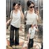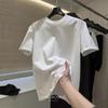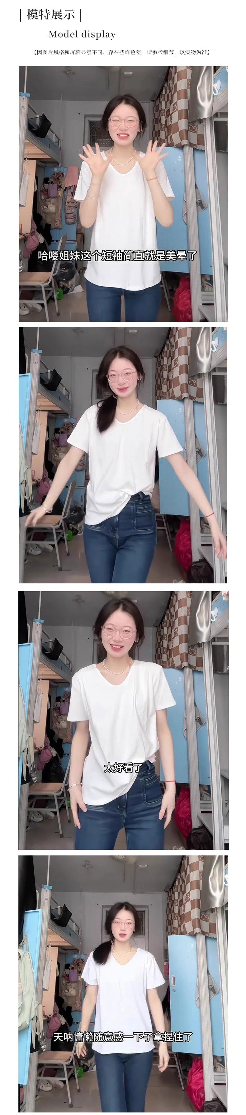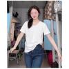 Playera de Color Sólido Cuello Redondo Hombro Recto Holgada Manga Corta Mujer Verano 2025 INS Nueva Talla Pequeña Camiseta Holgada Top