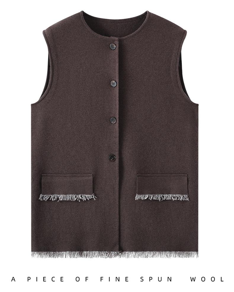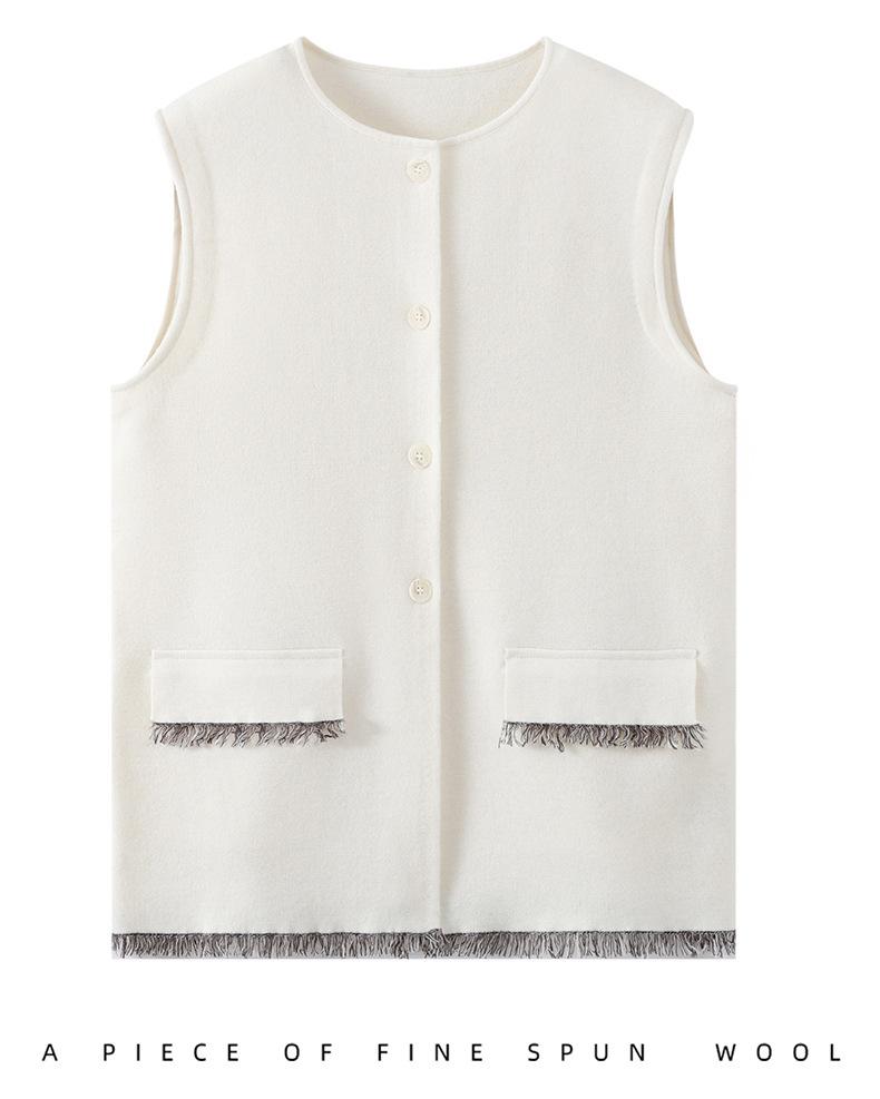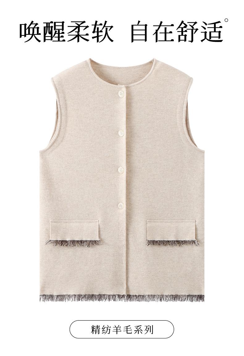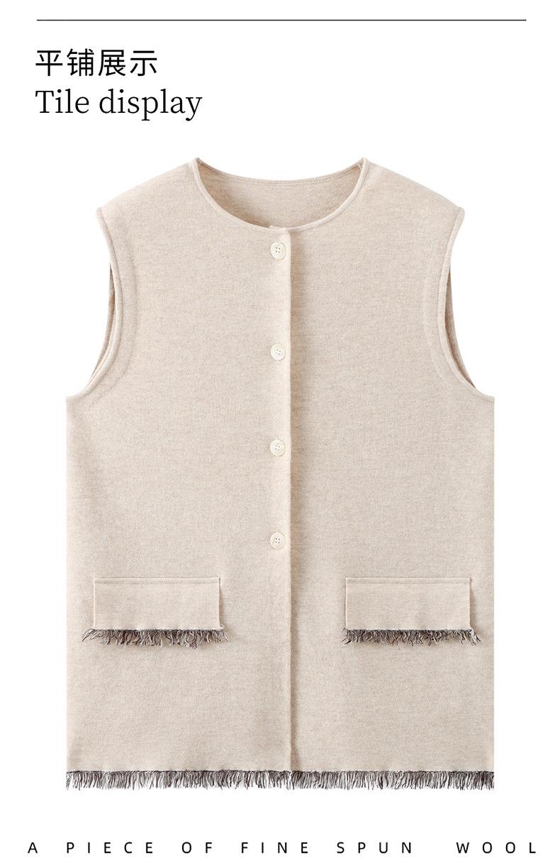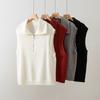 Otoño 2025 Nuevo Chaleco 100% Lana Pura Sin Mangas Tejido Acanalado Chaleco Abrigo Cárdigan Exterior para Mujer