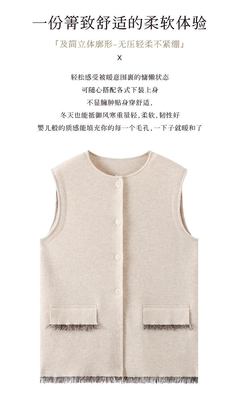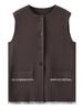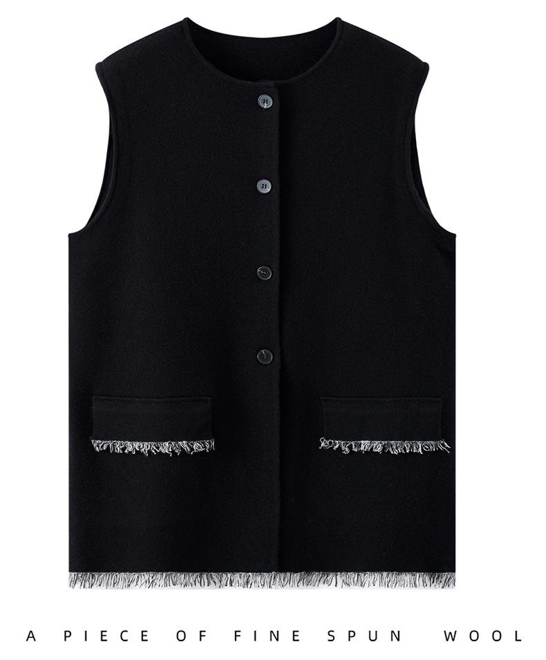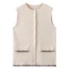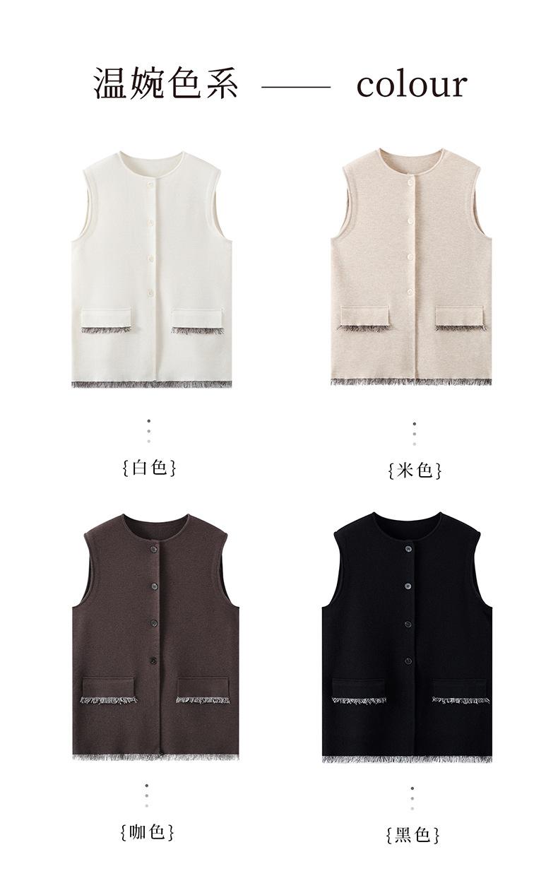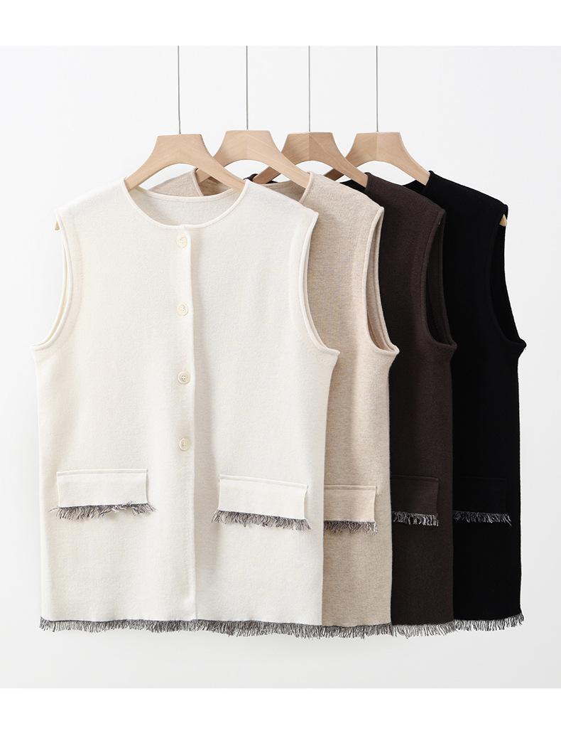Otoño 2025 Nuevo Chaleco 100% Lana Pura Sin Mangas Tejido Acanalado Chaleco Abrigo Cárdigan Exterior para Mujer