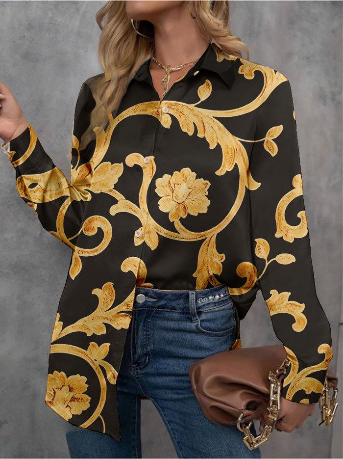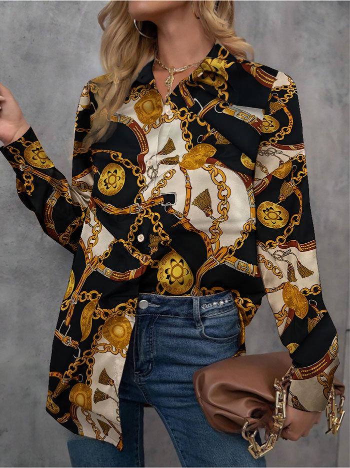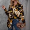 Ropa de Mujer Europea y Americana de Primavera y Otoño 2024 Moda Transfronteriza Estampado Digital Solapa Top de Manga Larga Camisa para Ir al Trabajo Moderna y Versátil
