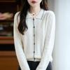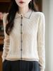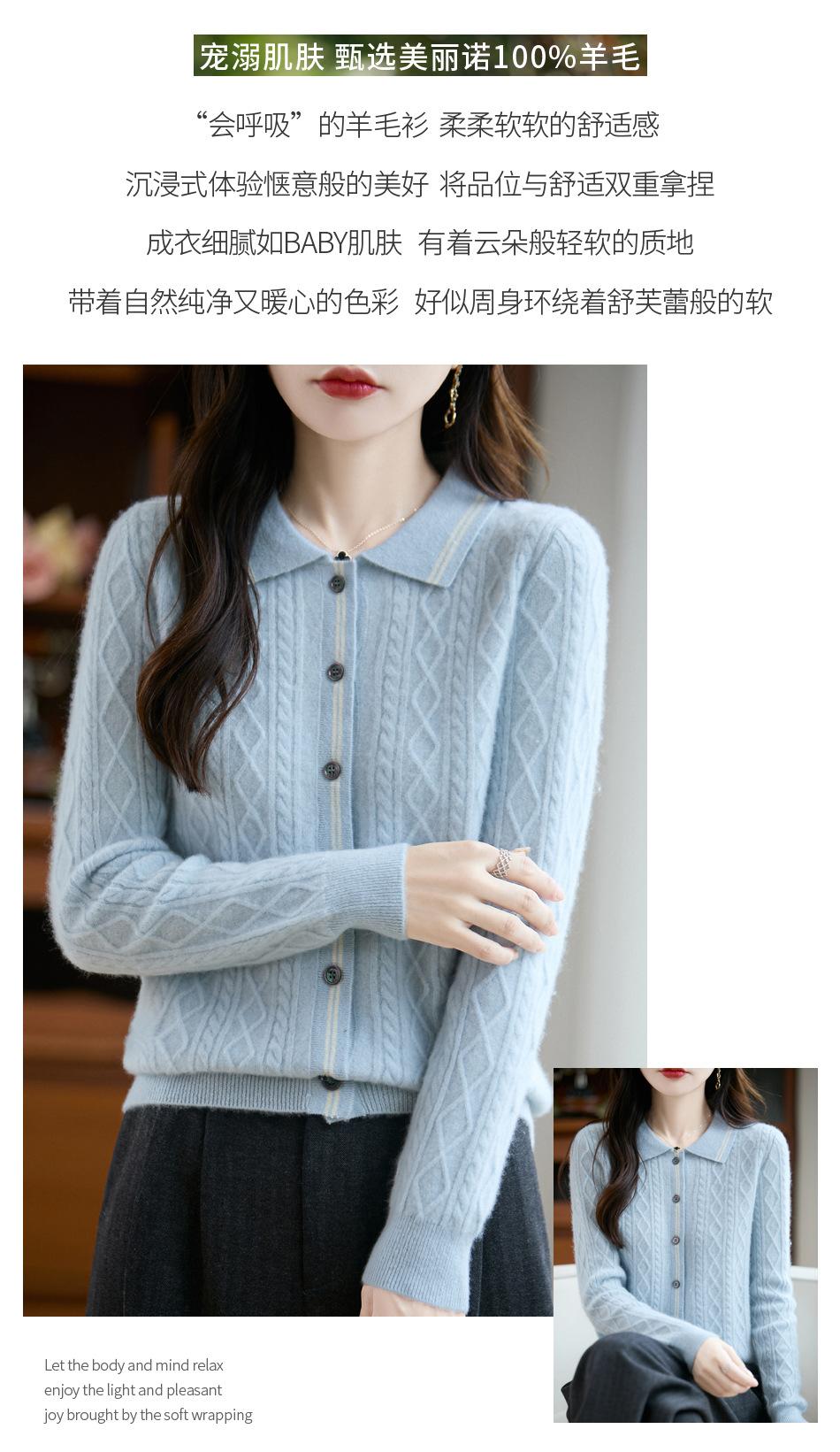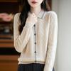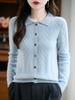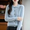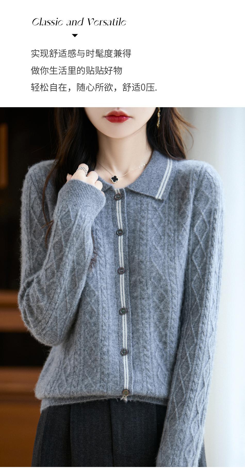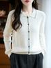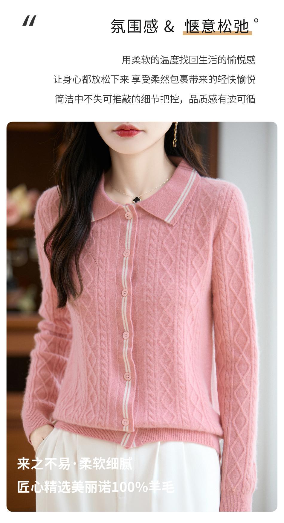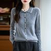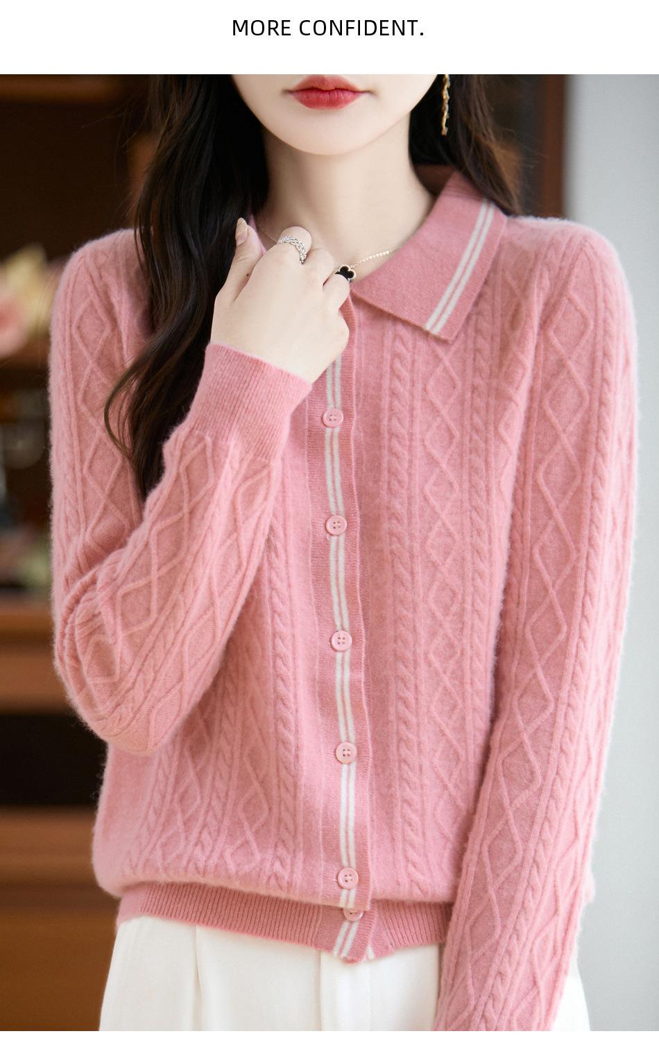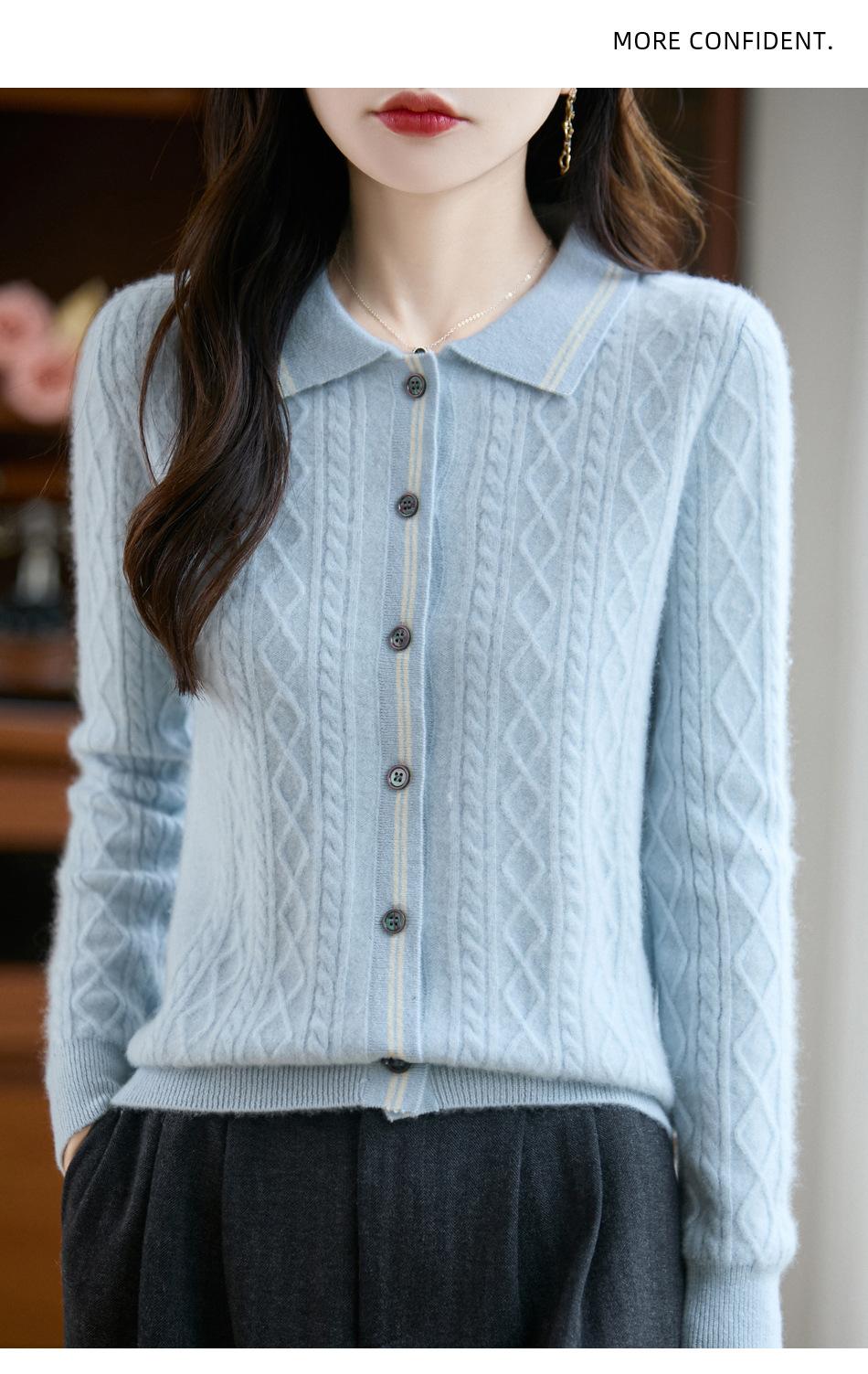 2025 Otoño/Invierno Nuevo Cárdigan de Punto con Cuello POLO de Lana Pura Manga Larga para Mujer Punto Cable Bloque de Color Suelto Versátil Top