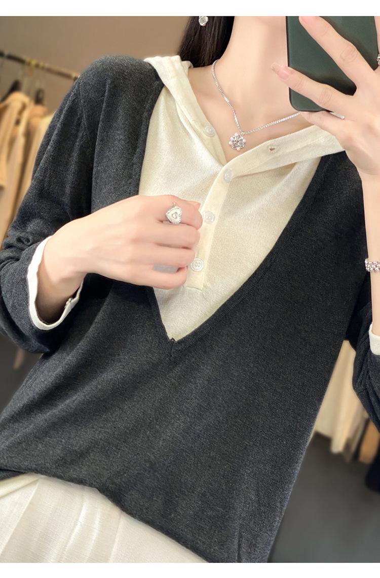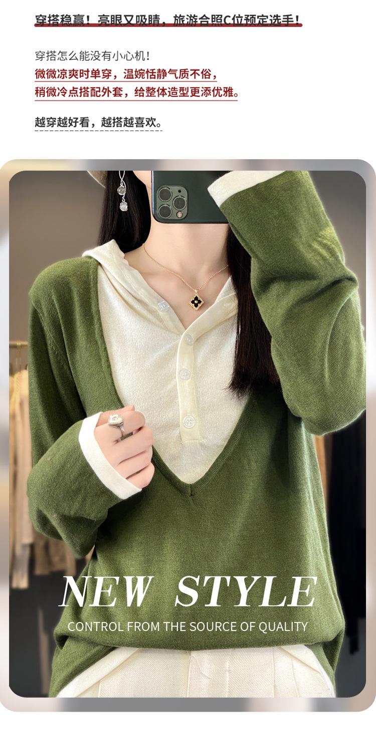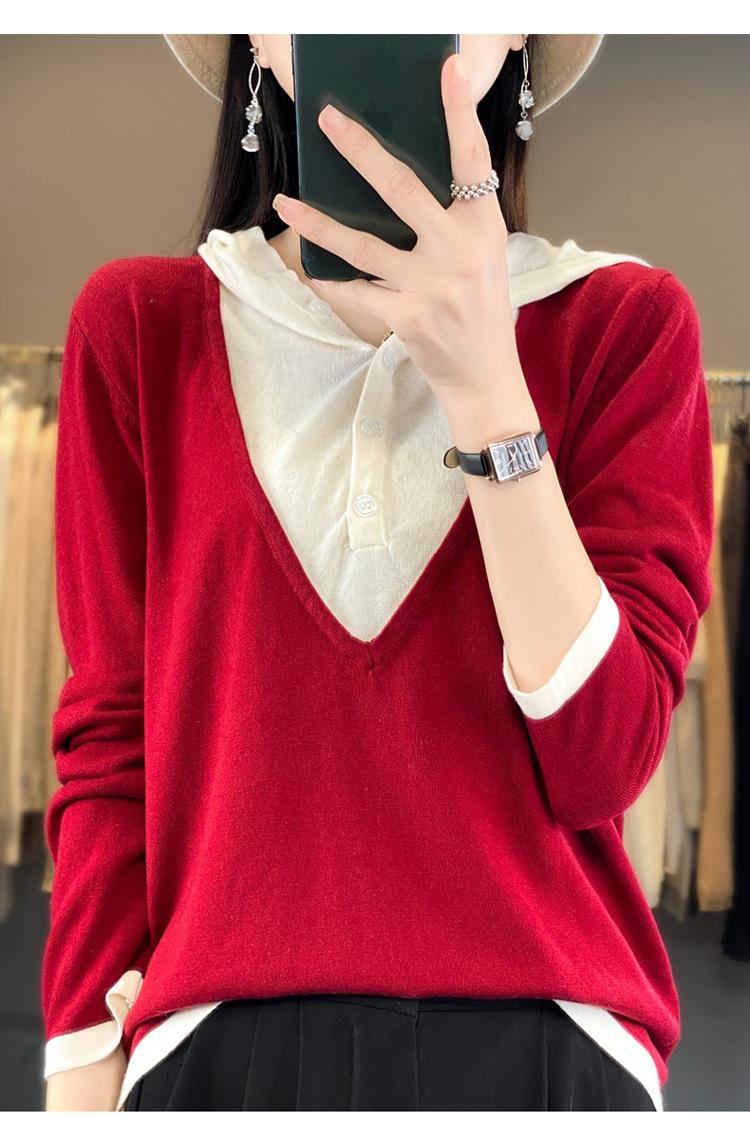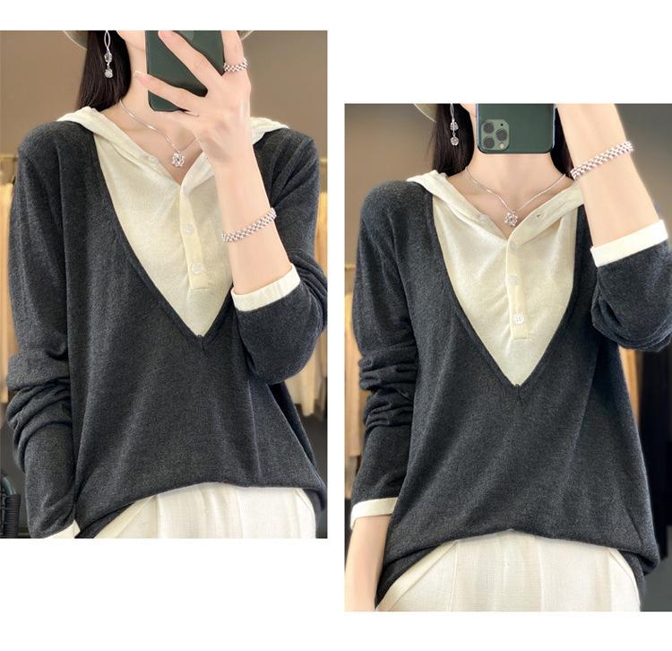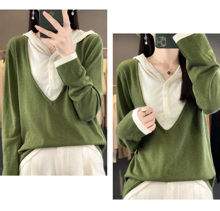 Nuevo Suéter Pulóver para Mujer Transfronterizo Bloque de Color Lana 2025 Cálido Tejido Fino Manga Larga Sudadera con Capucha Otoño Invierno Suéter Tejido para Mujer
