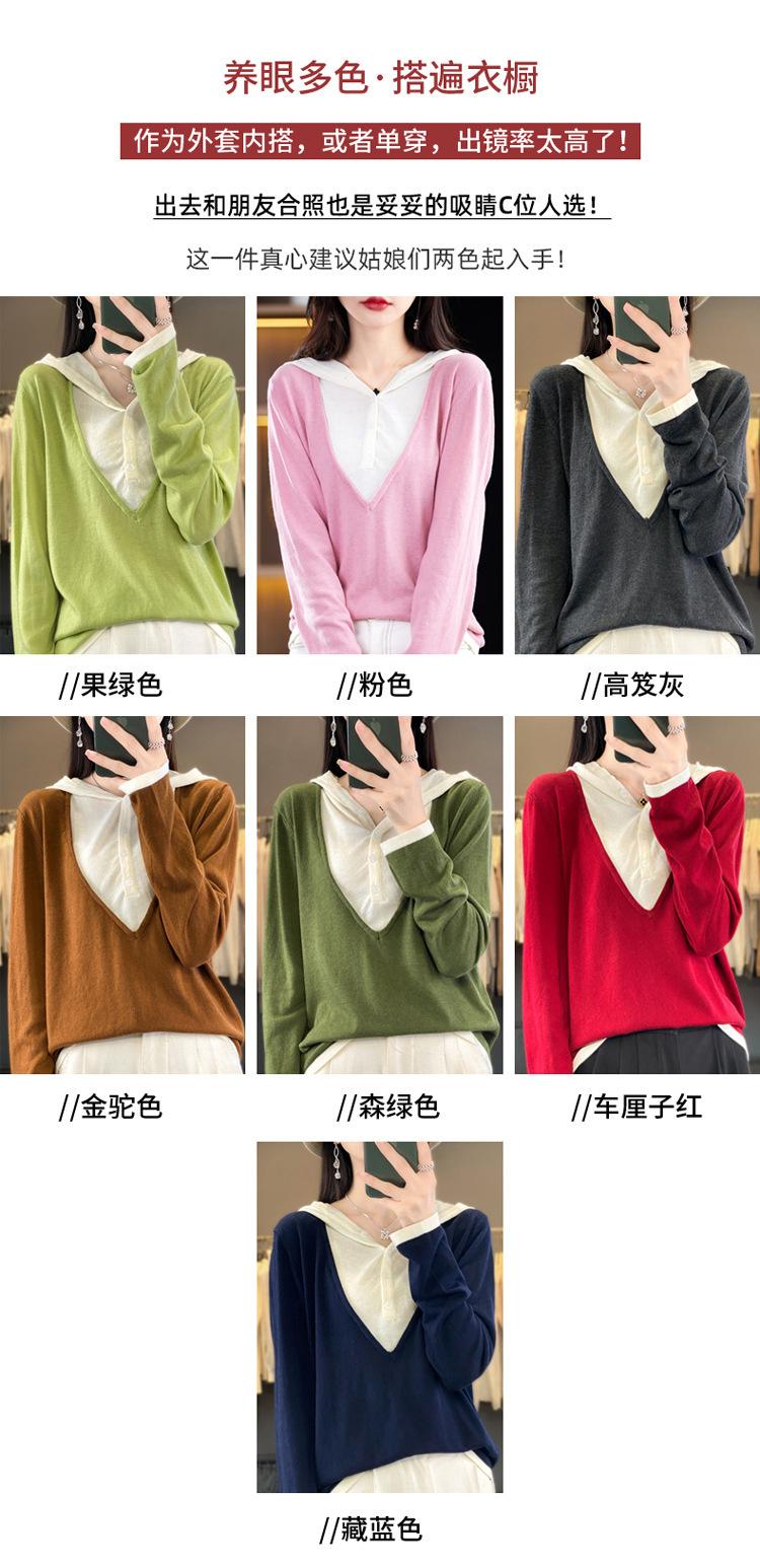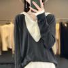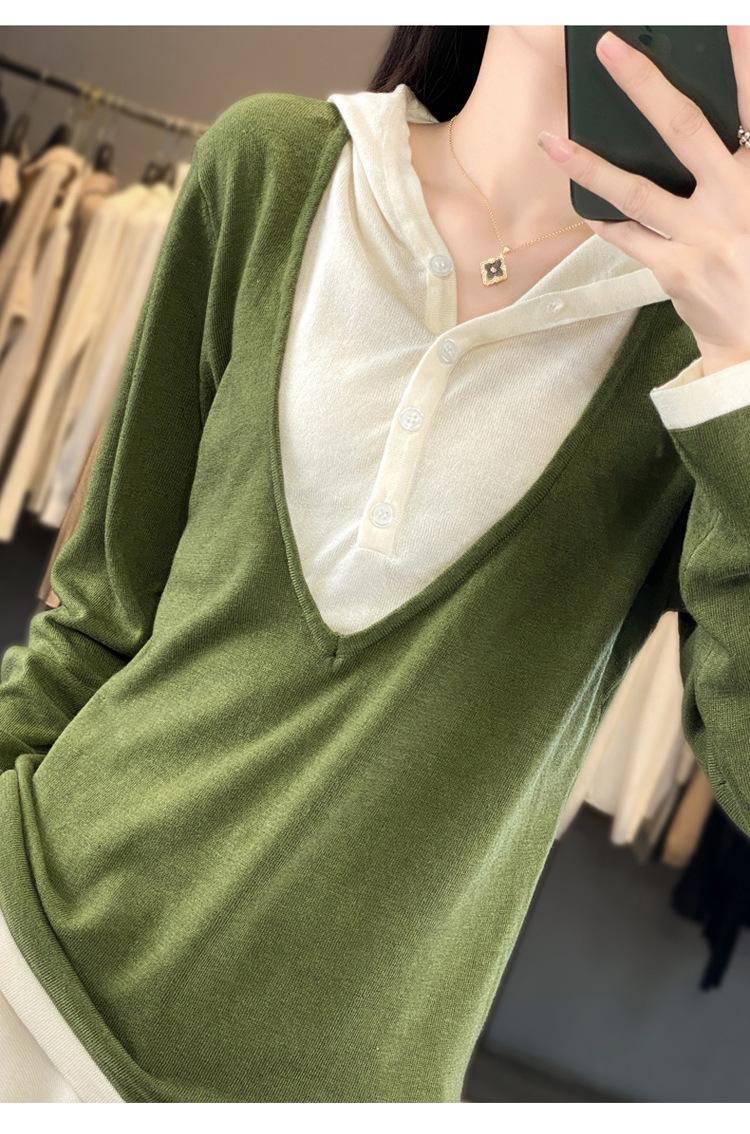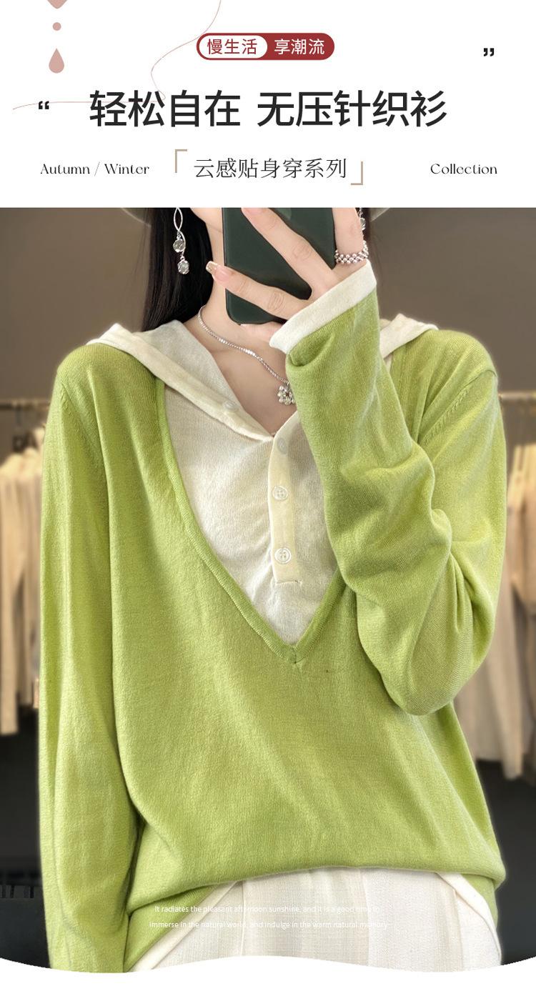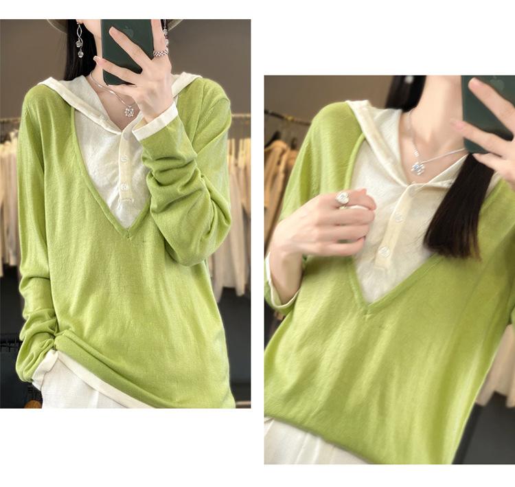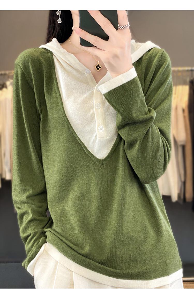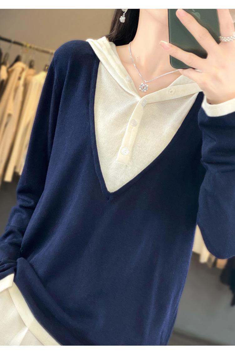 Nuevo Suéter Pulóver para Mujer Transfronterizo Bloque de Color Lana 2025 Cálido Tejido Fino Manga Larga Sudadera con Capucha Otoño Invierno Suéter Tejido para Mujer