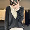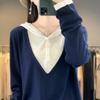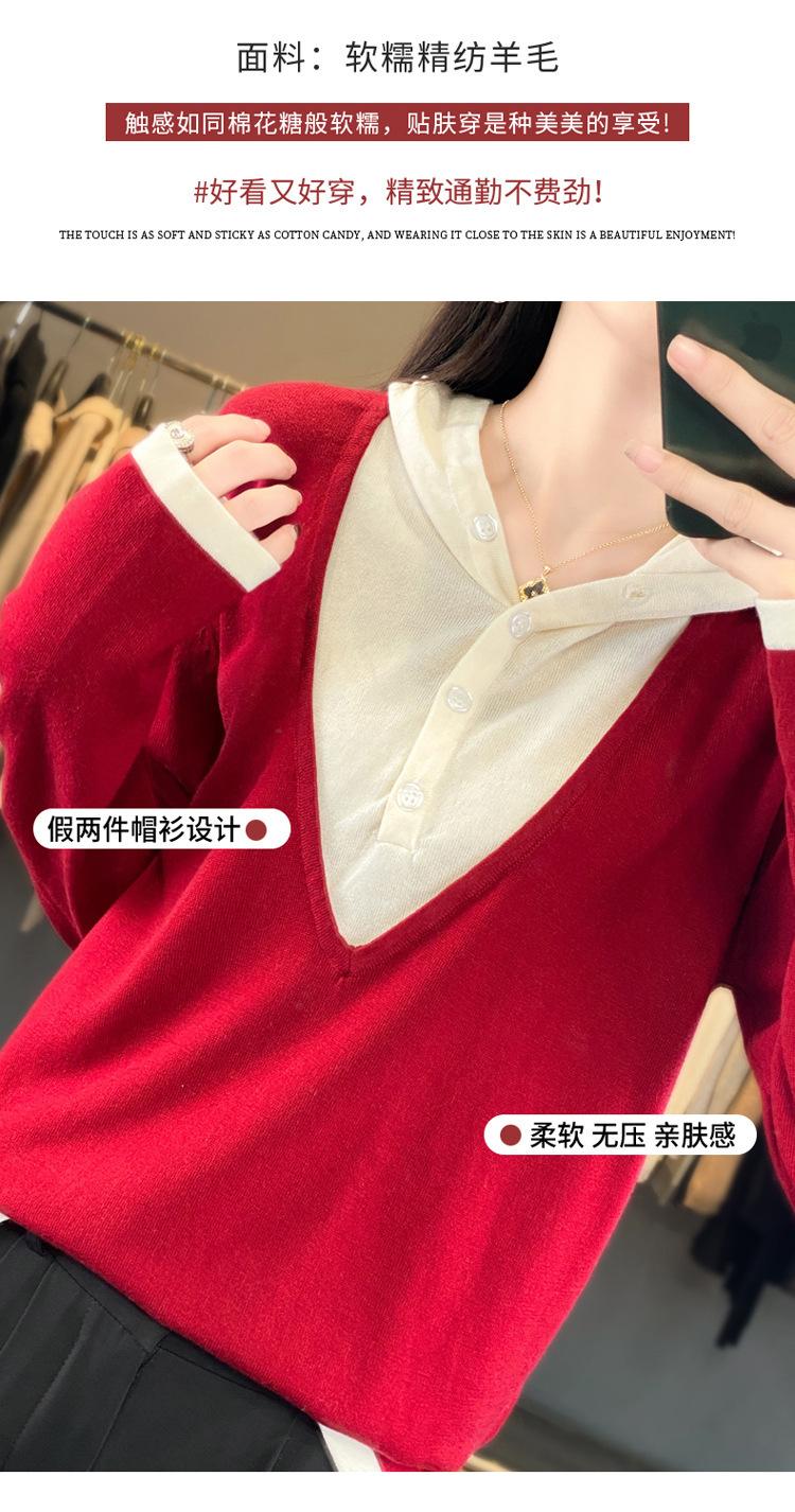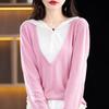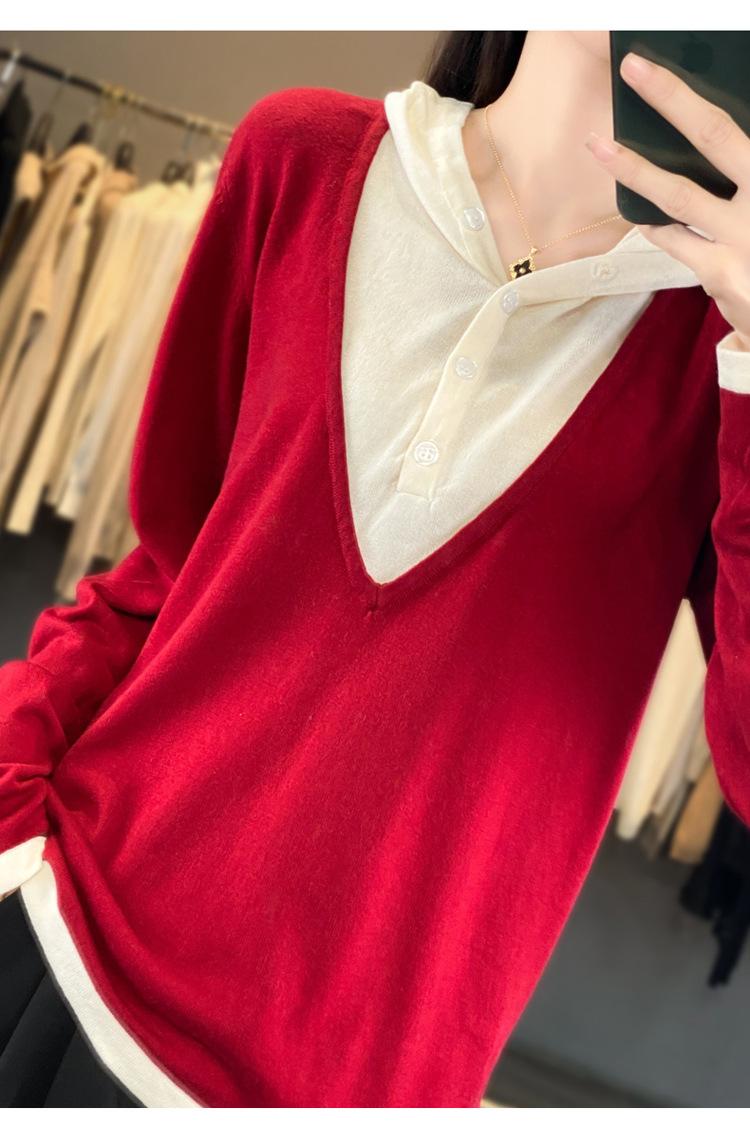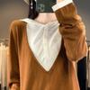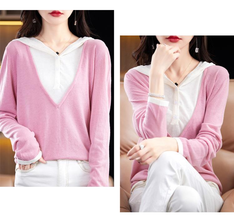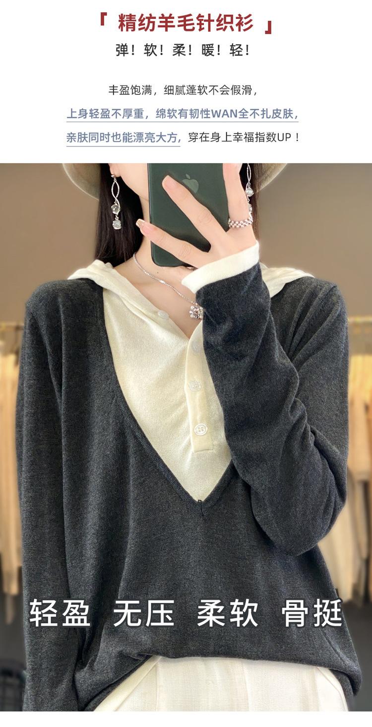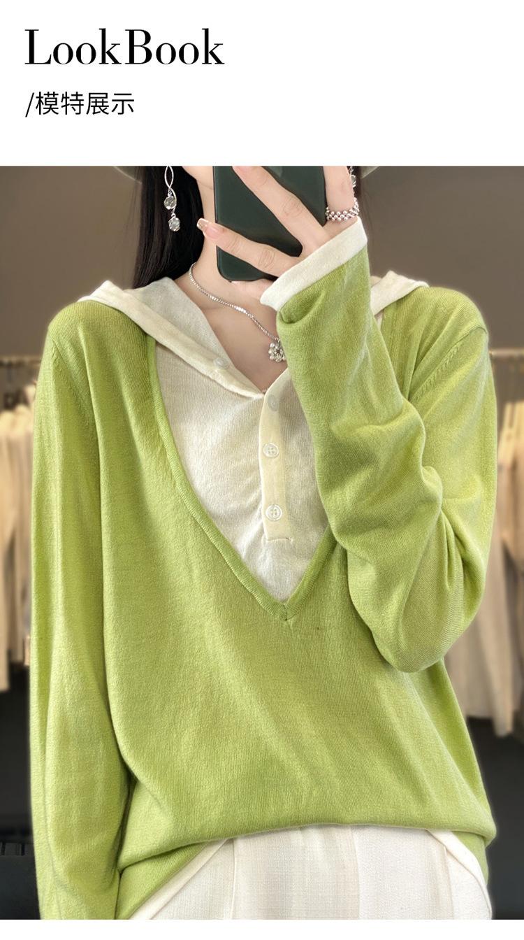 Nuevo Suéter Pulóver para Mujer Transfronterizo Bloque de Color Lana 2025 Cálido Tejido Fino Manga Larga Sudadera con Capucha Otoño Invierno Suéter Tejido para Mujer