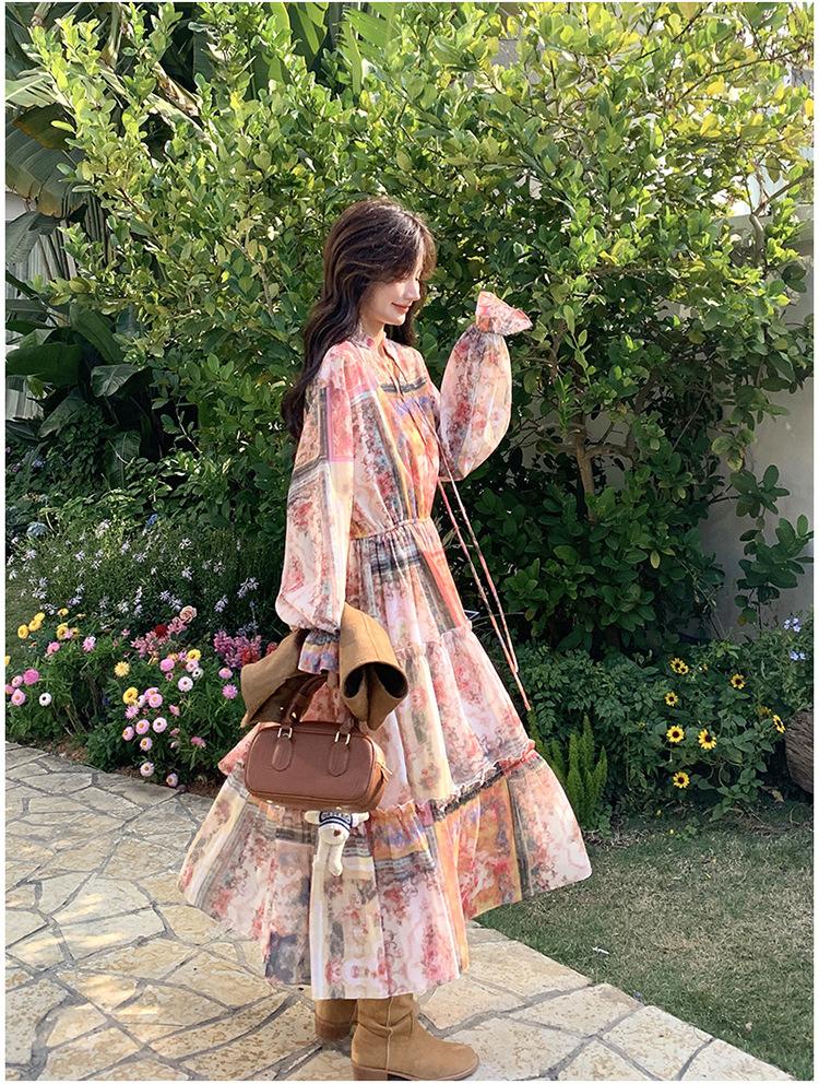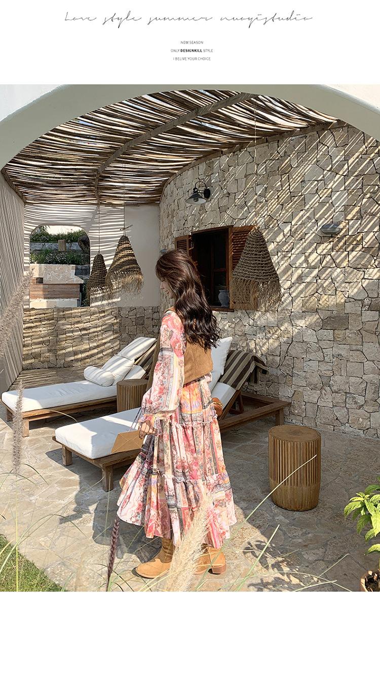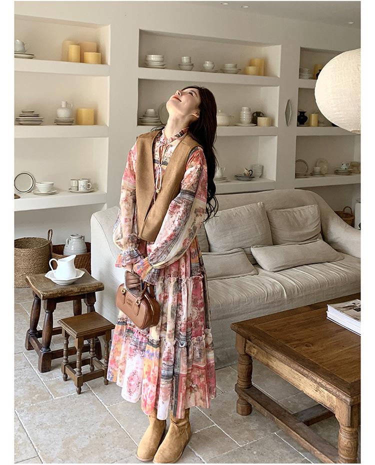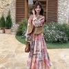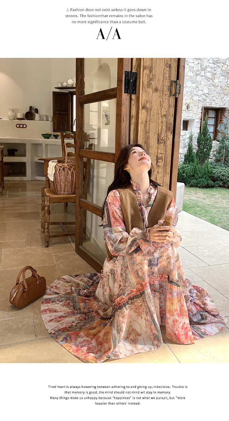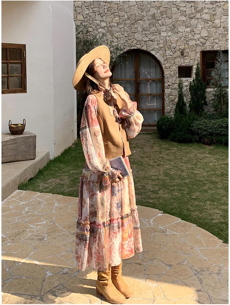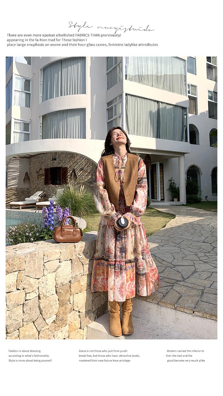 Conjunto de dos piezas de primavera y otoño para mujer 2025 Nuevo estilo Reductor de edad Chaleco versátil + Conjunto de vestido largo estampado Conjunto de dos piezas