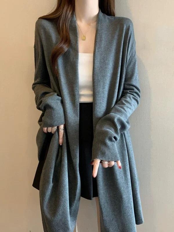 Cárdigan de Punto Casual para Mujer con Diseño de Alta Gama, Estilo Holgazán de Talla Grande y Corte Medio, Otoño e Invierno