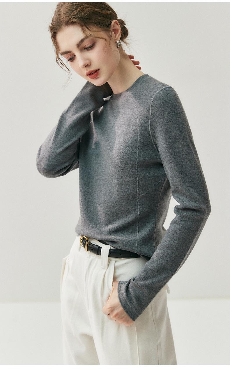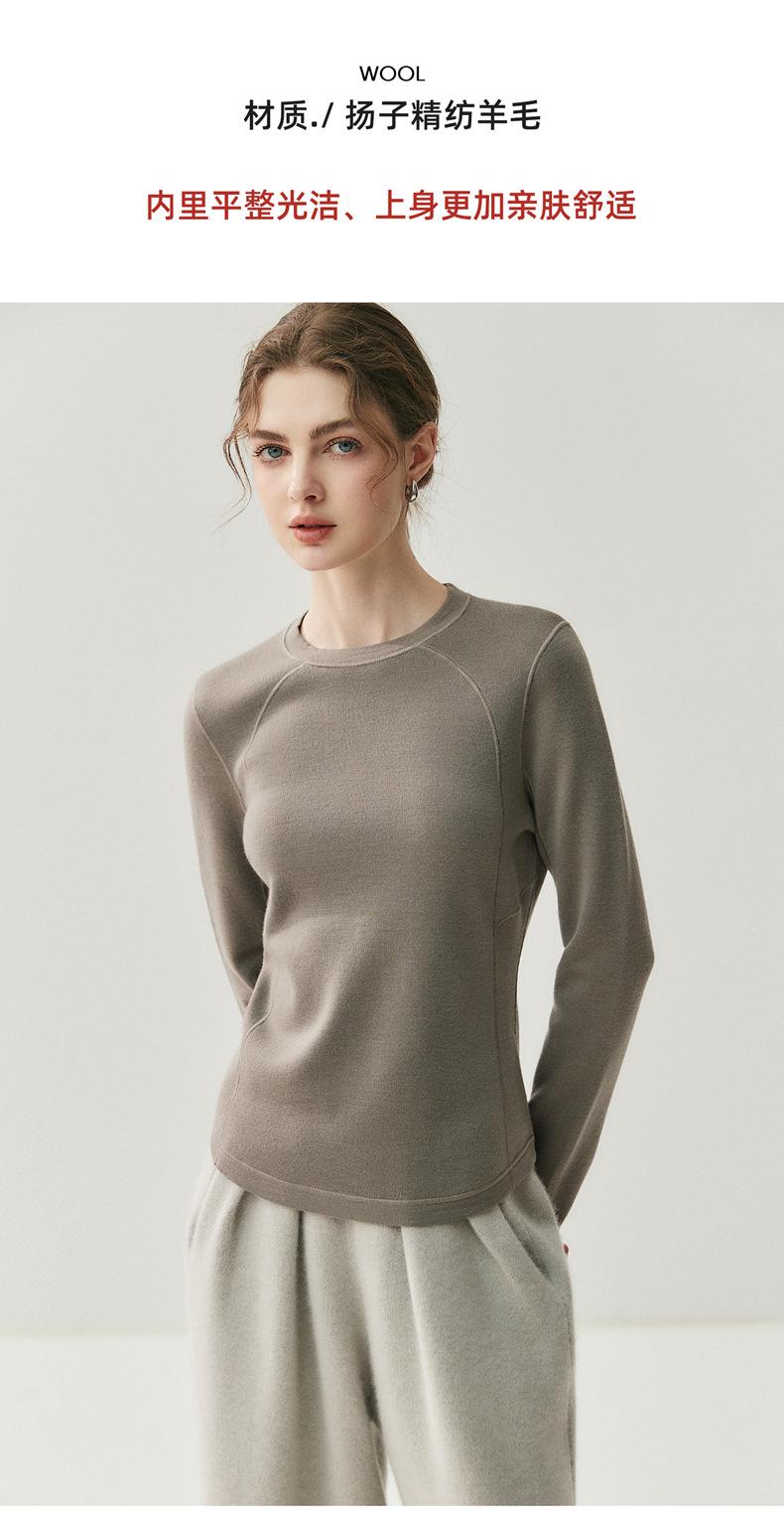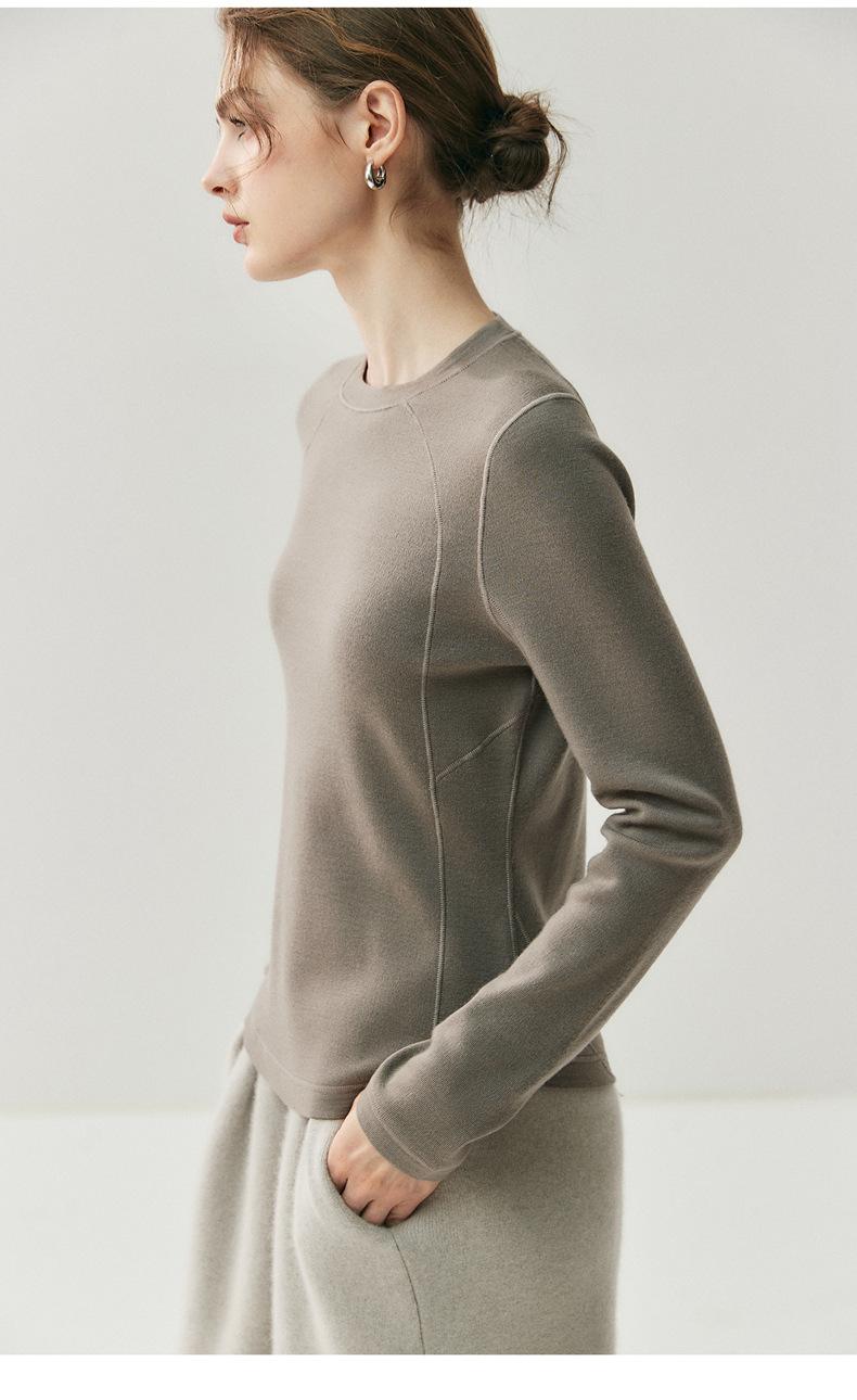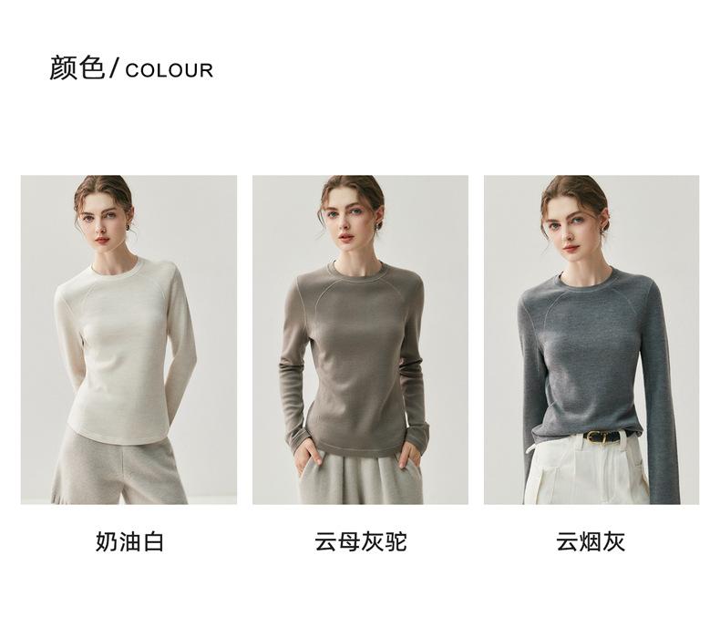 Suéter de lana merino 100% Yangtze para mujer, otoño e invierno, cuello redondo, moda simple, yoga, punto ajustado, suéter básico