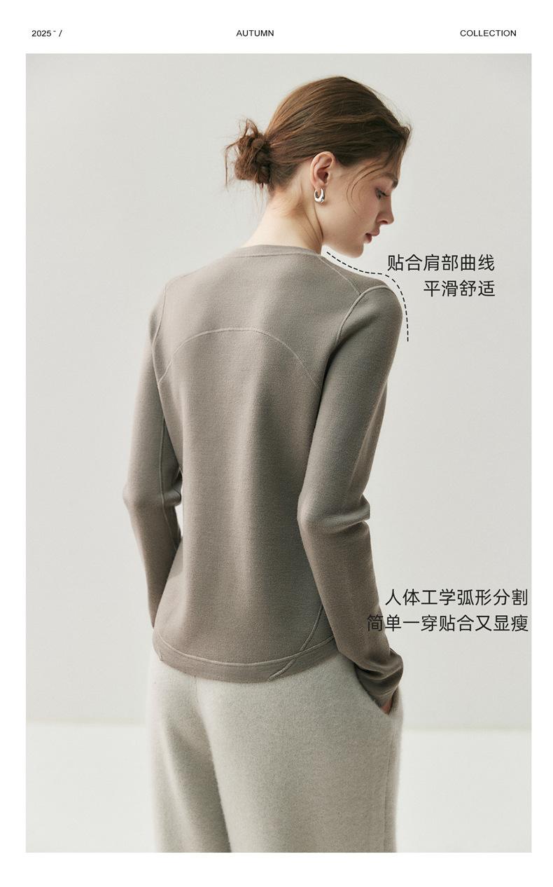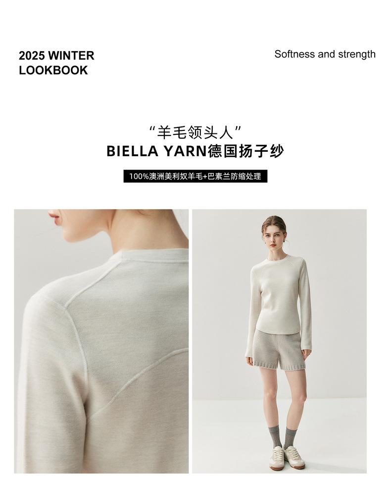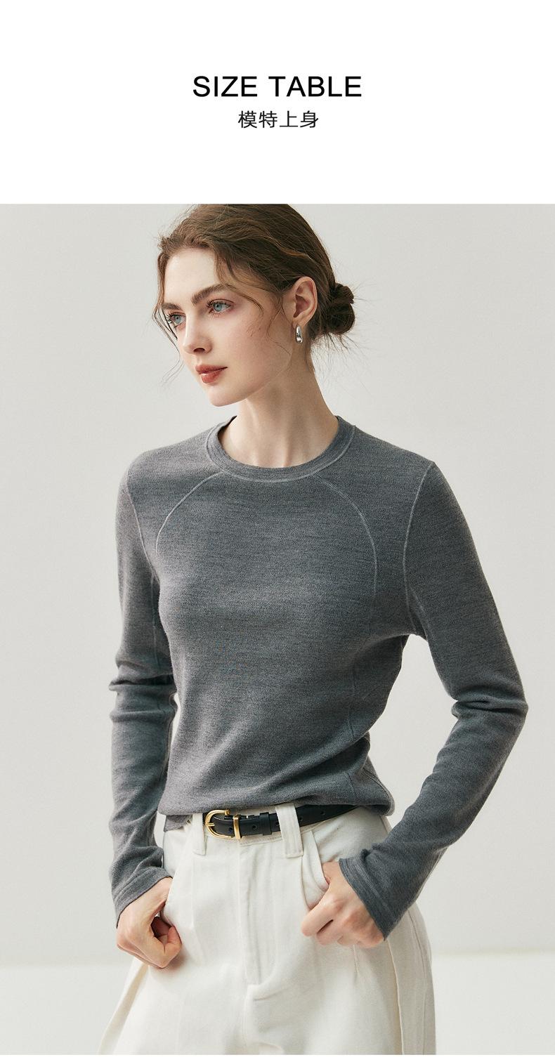 Suéter de lana merino 100% Yangtze para mujer, otoño e invierno, cuello redondo, moda simple, yoga, punto ajustado, suéter básico