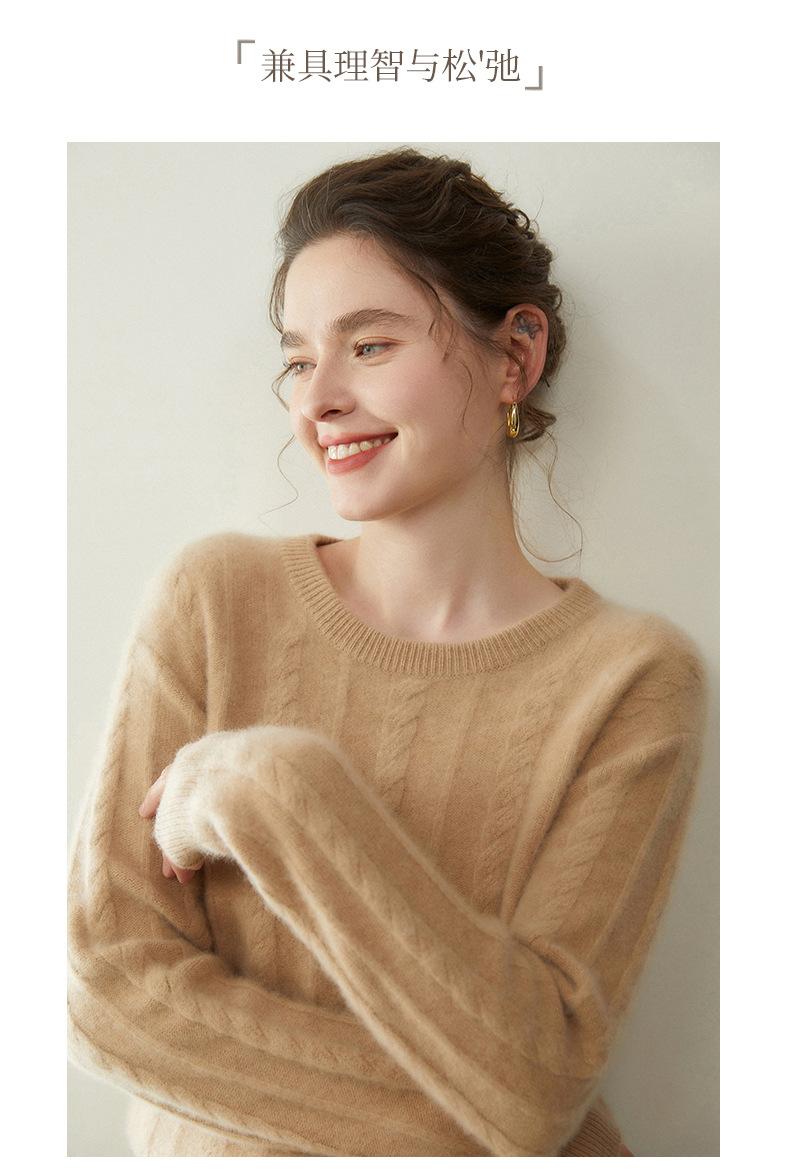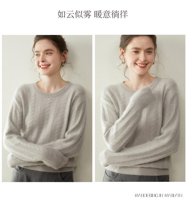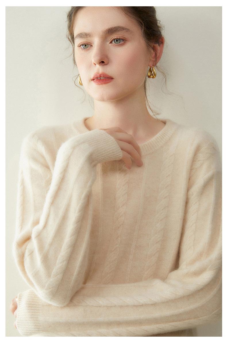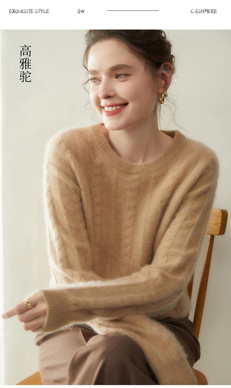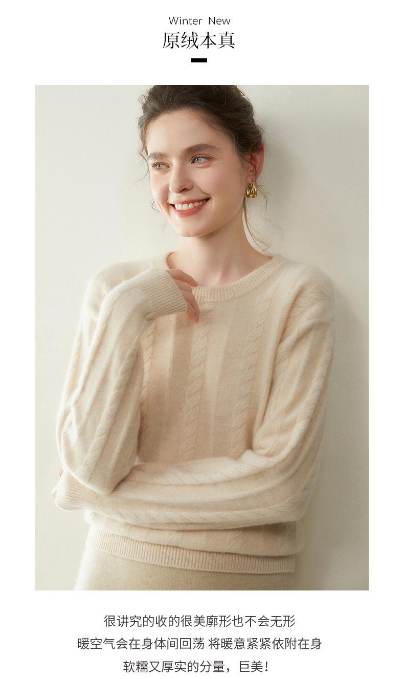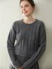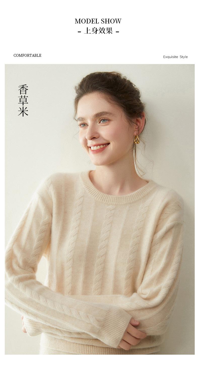 Otoño/Invierno 2025 Nuevo Estilo Prendas de Punto de Cachemira para Mujer Suéter de Manga Larga con Cuello Redondo Moda Punto de Cable Versátil Camisa Básica Holgada