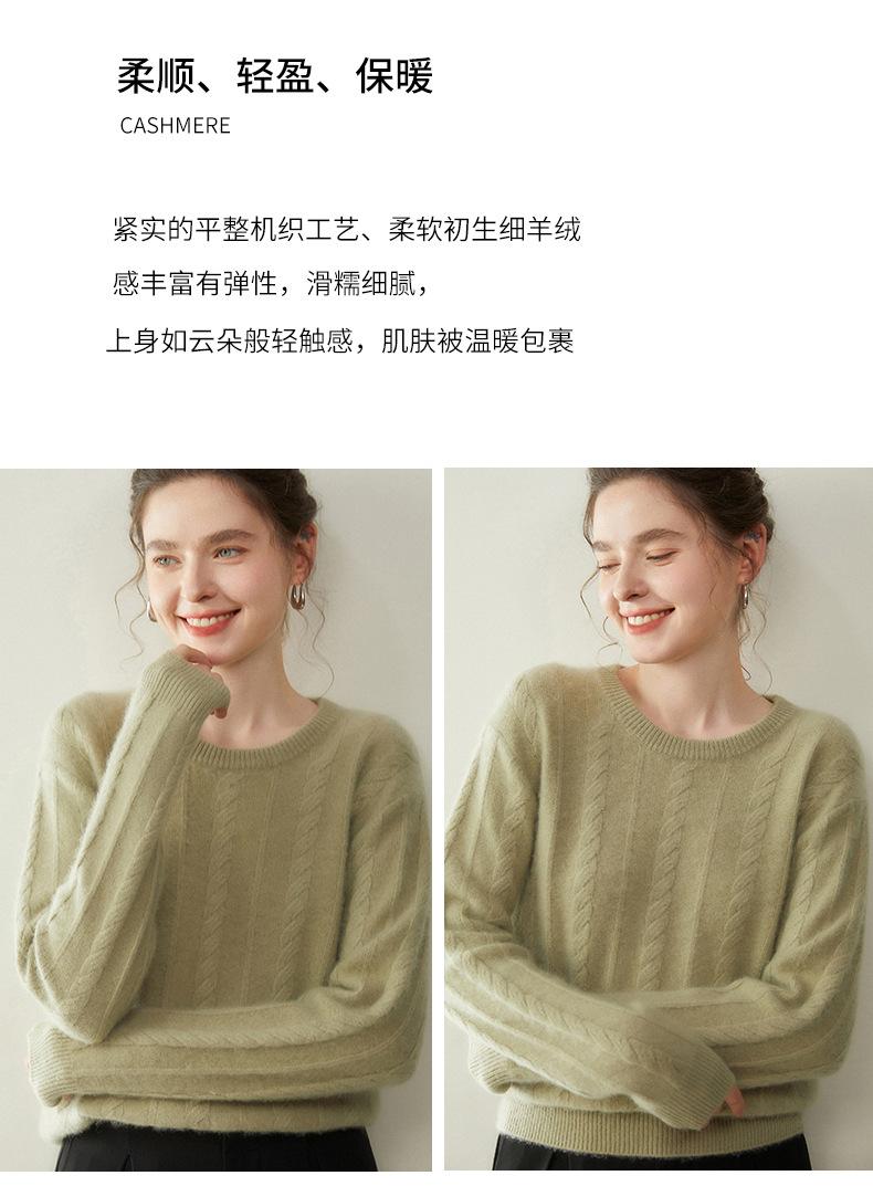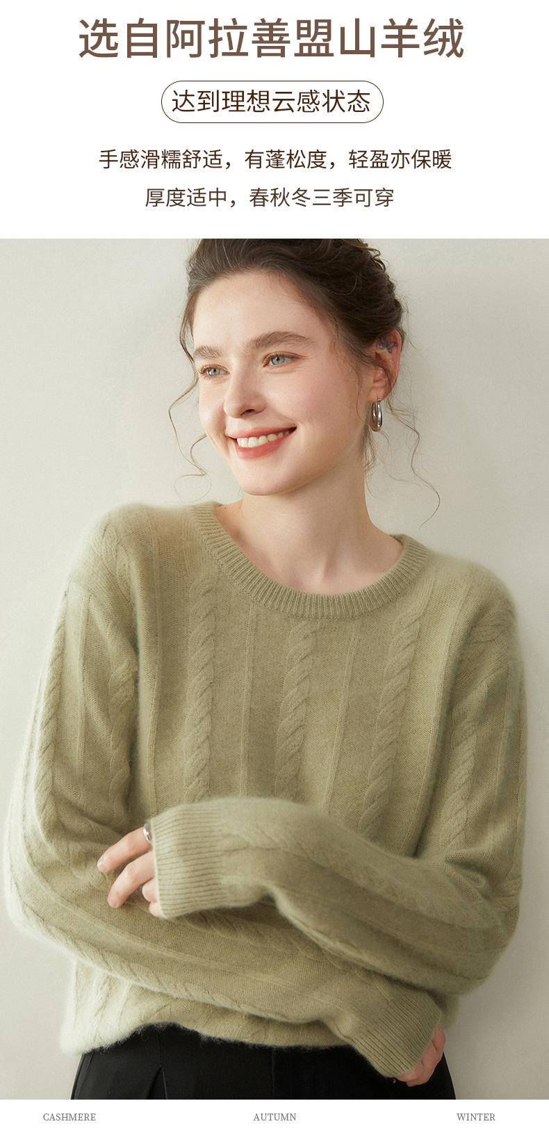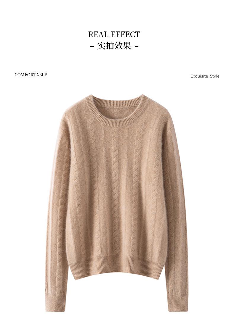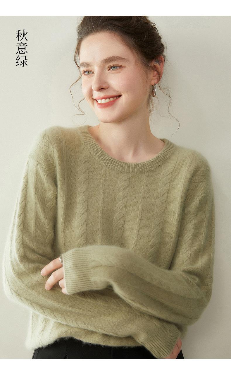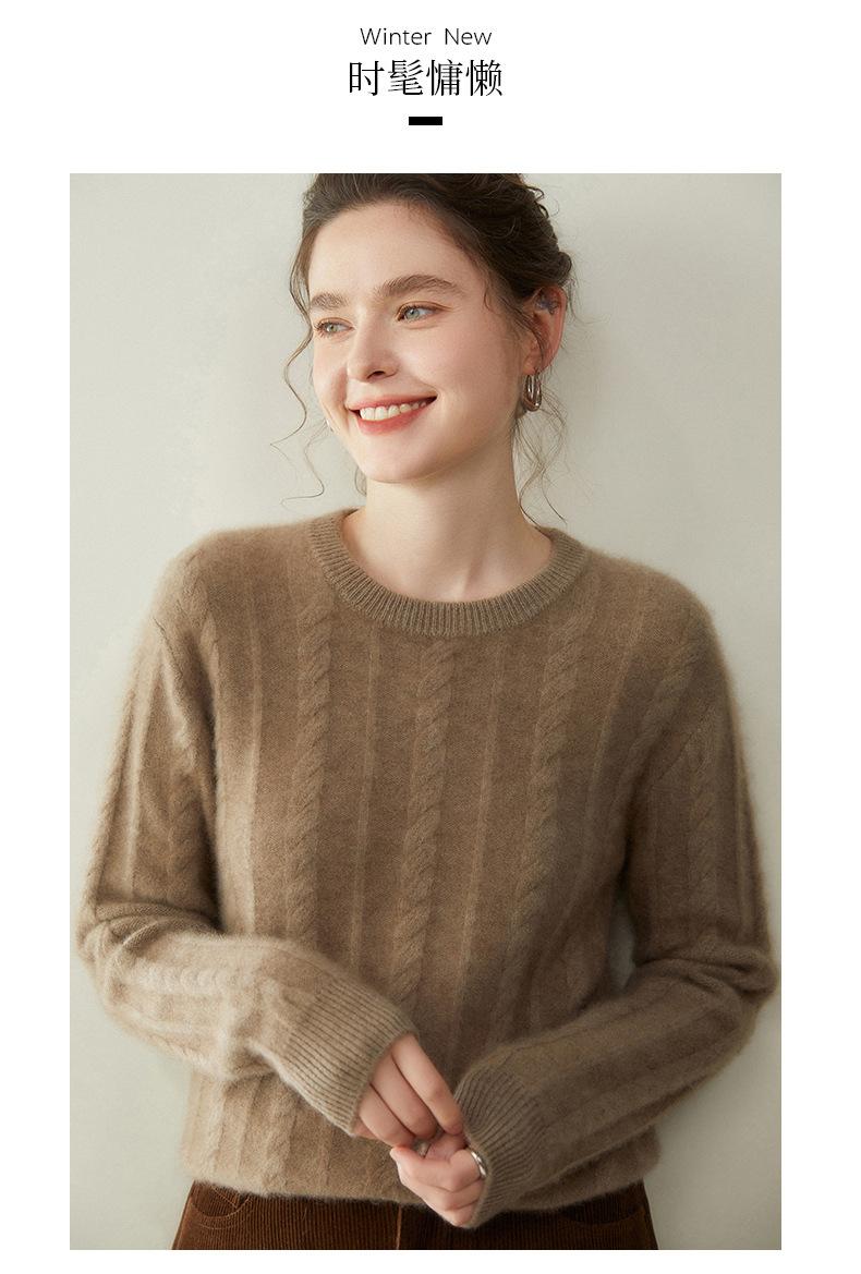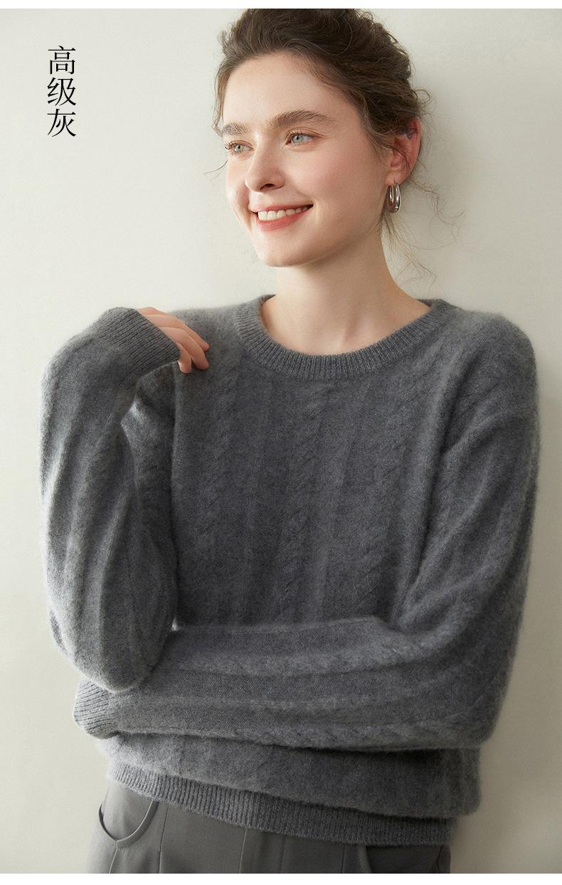 Otoño/Invierno 2025 Nuevo Estilo Prendas de Punto de Cachemira para Mujer Suéter de Manga Larga con Cuello Redondo Moda Punto de Cable Versátil Camisa Básica Holgada