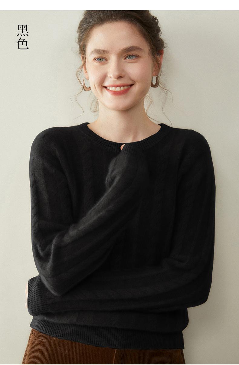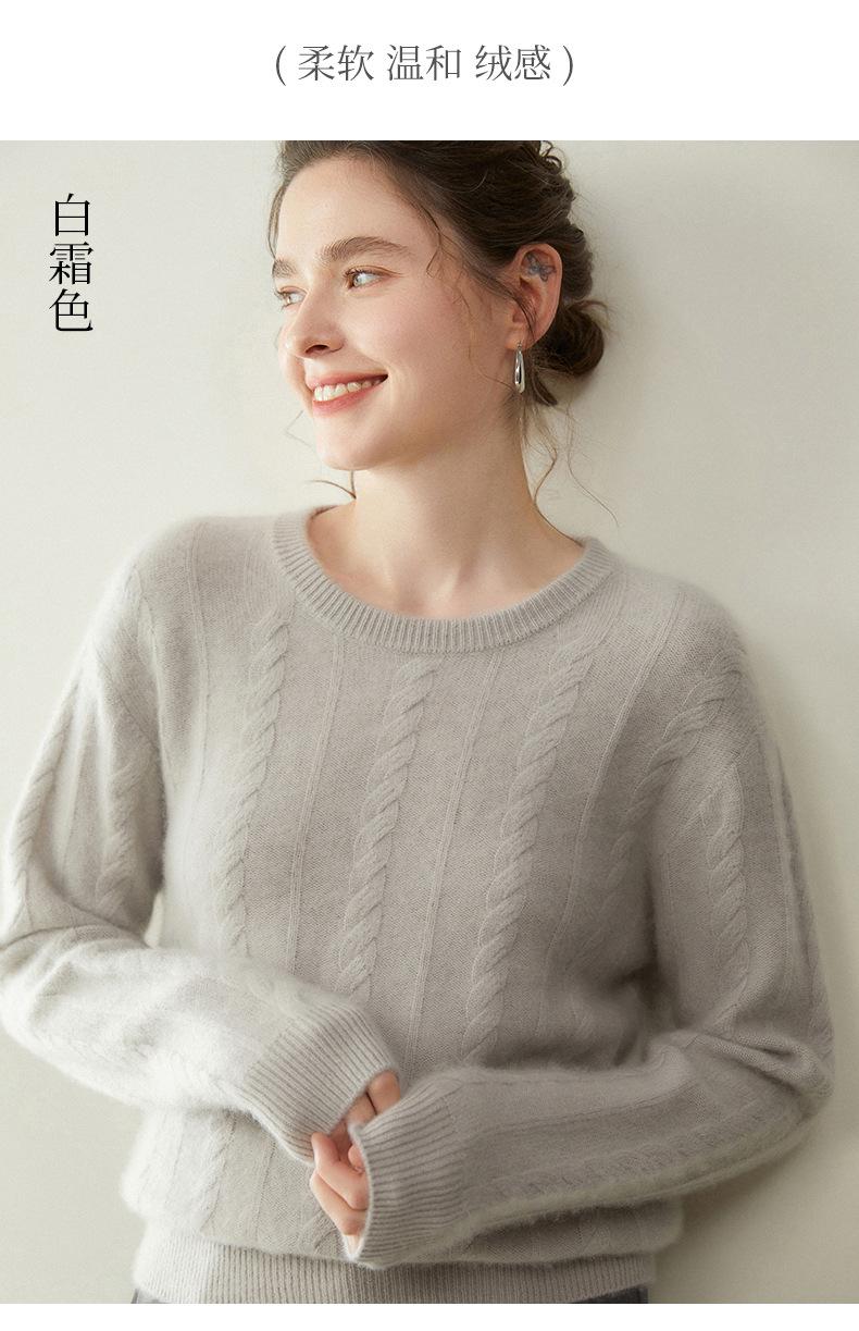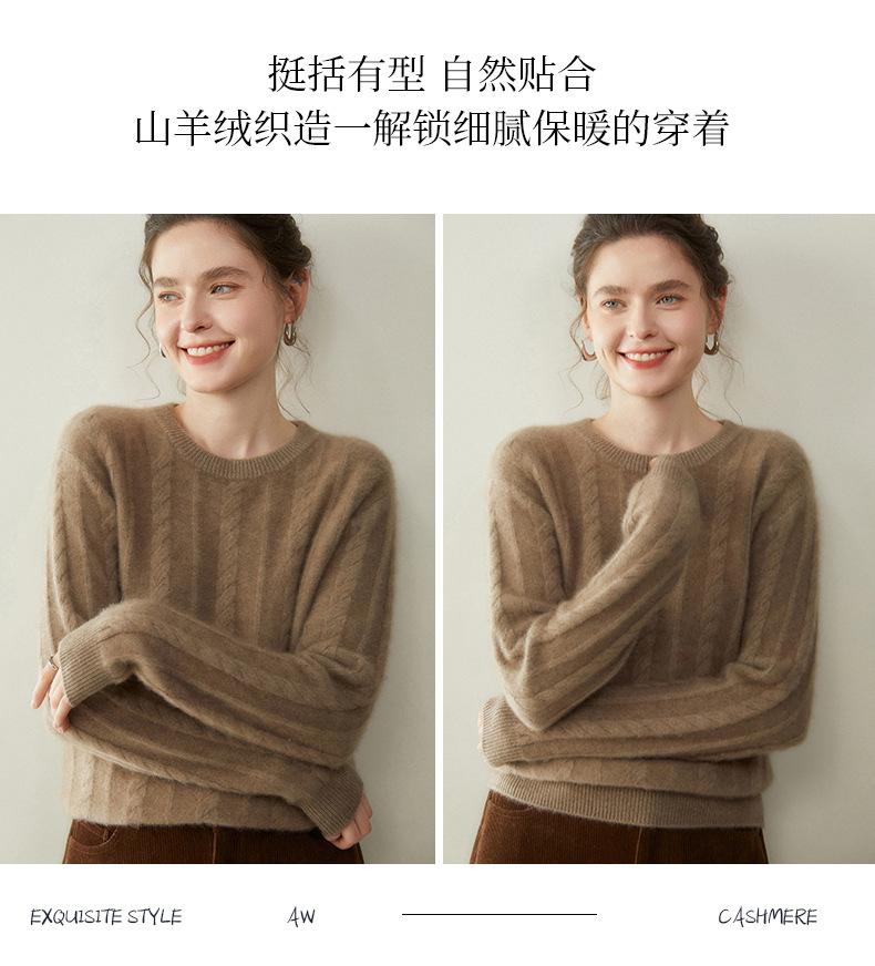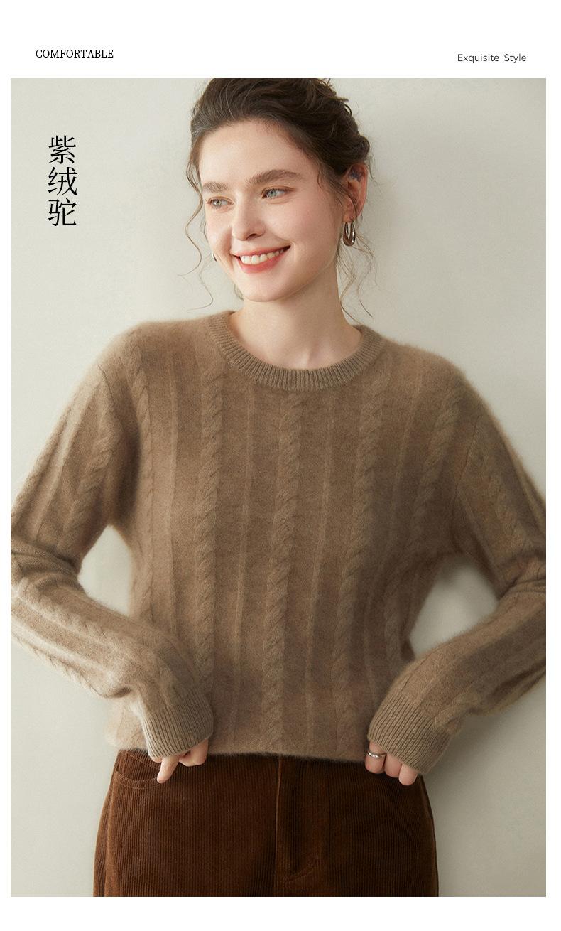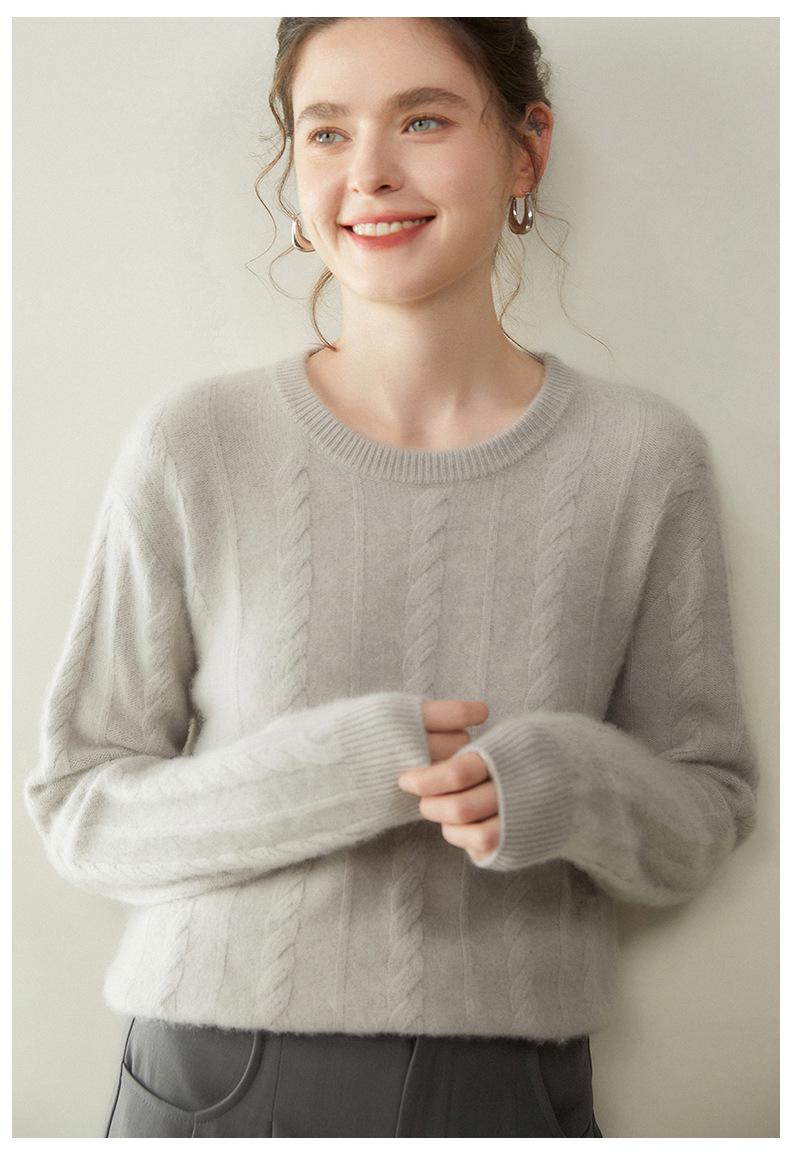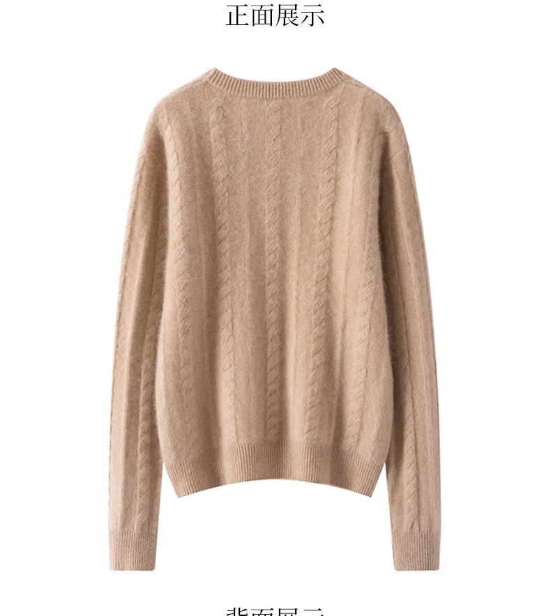 Otoño/Invierno 2025 Nuevo Estilo Prendas de Punto de Cachemira para Mujer Suéter de Manga Larga con Cuello Redondo Moda Punto de Cable Versátil Camisa Básica Holgada
