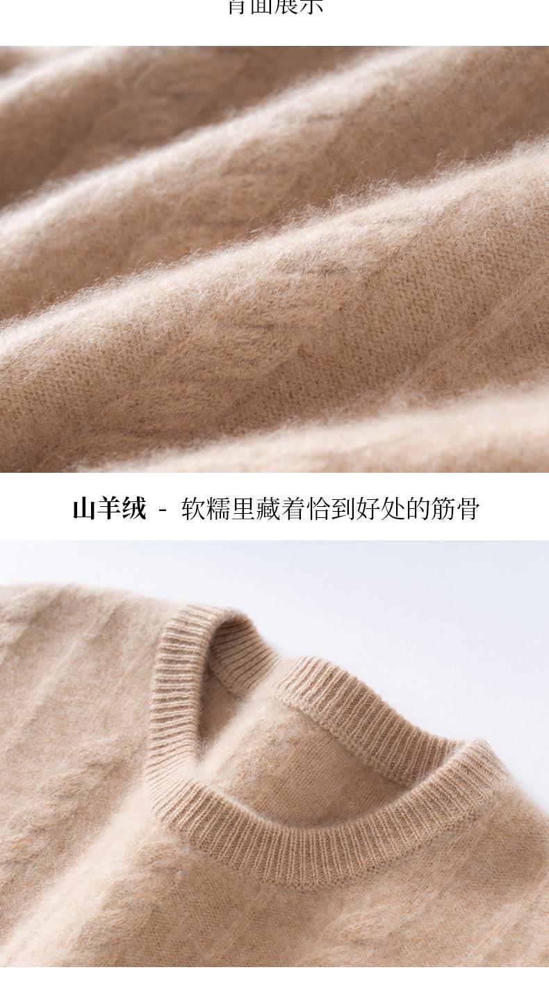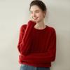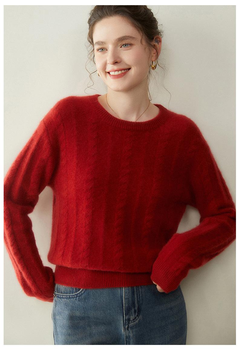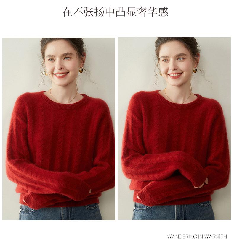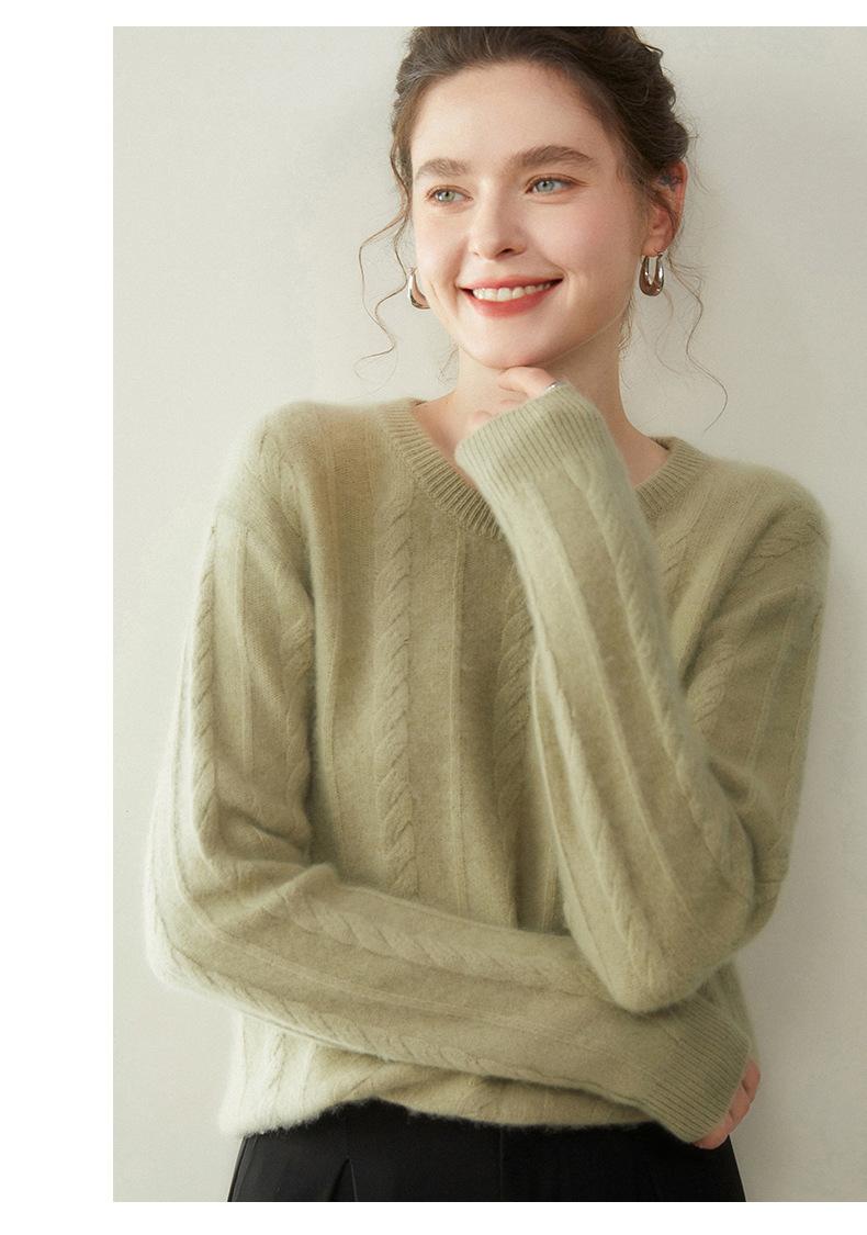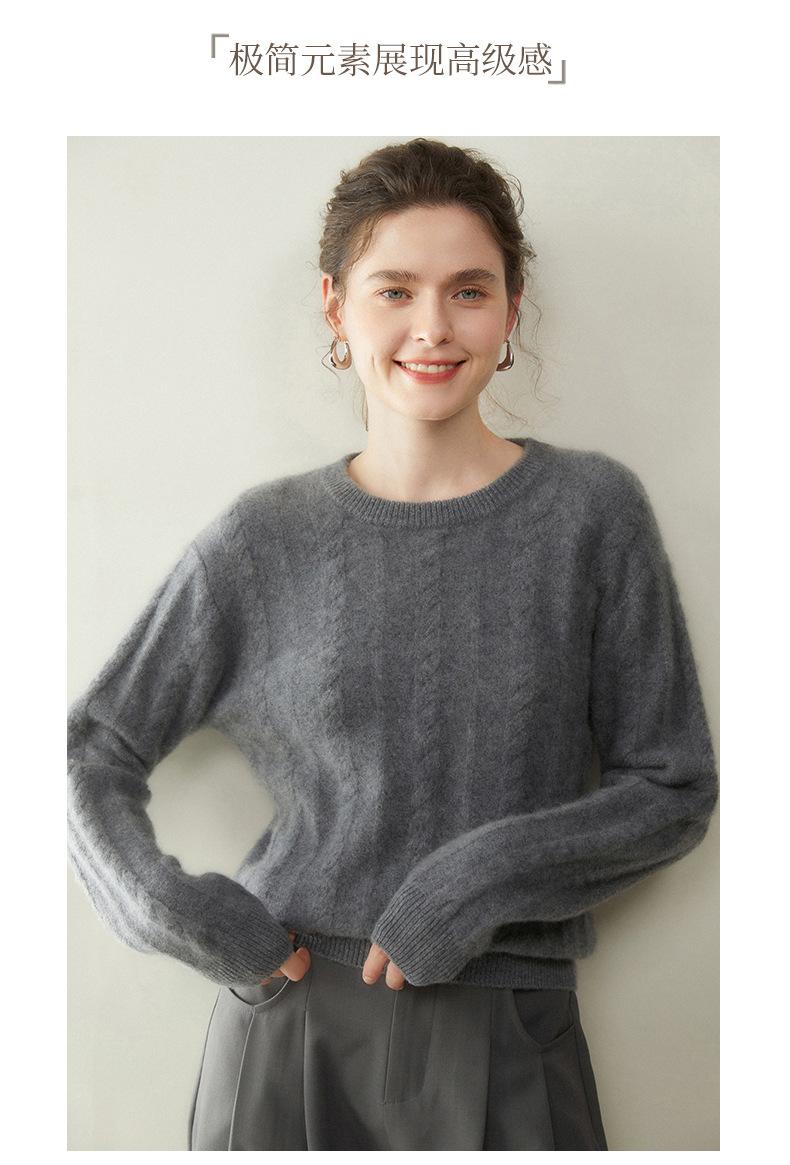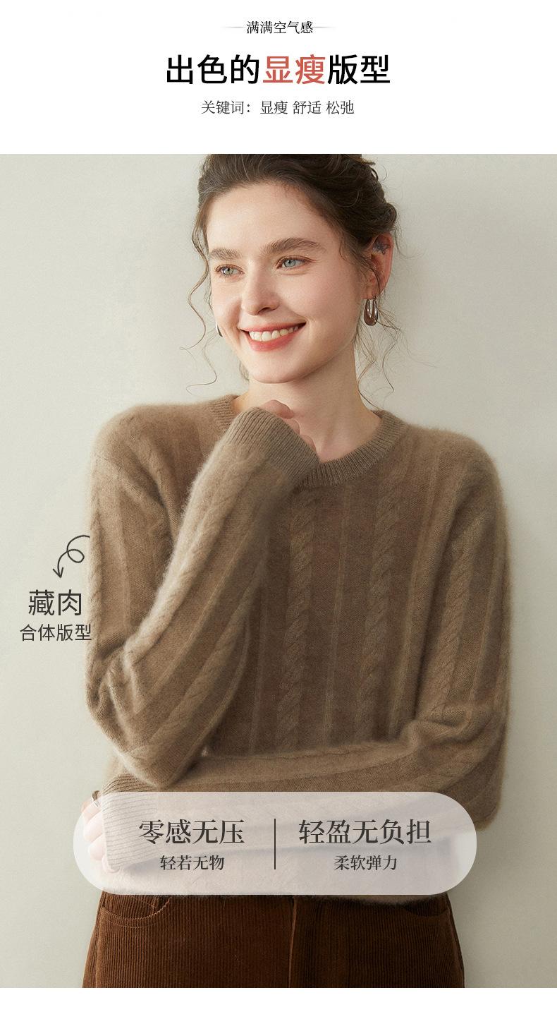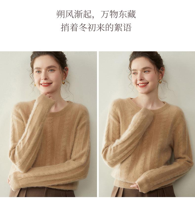 Otoño/Invierno 2025 Nuevo Estilo Prendas de Punto de Cachemira para Mujer Suéter de Manga Larga con Cuello Redondo Moda Punto de Cable Versátil Camisa Básica Holgada