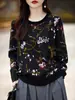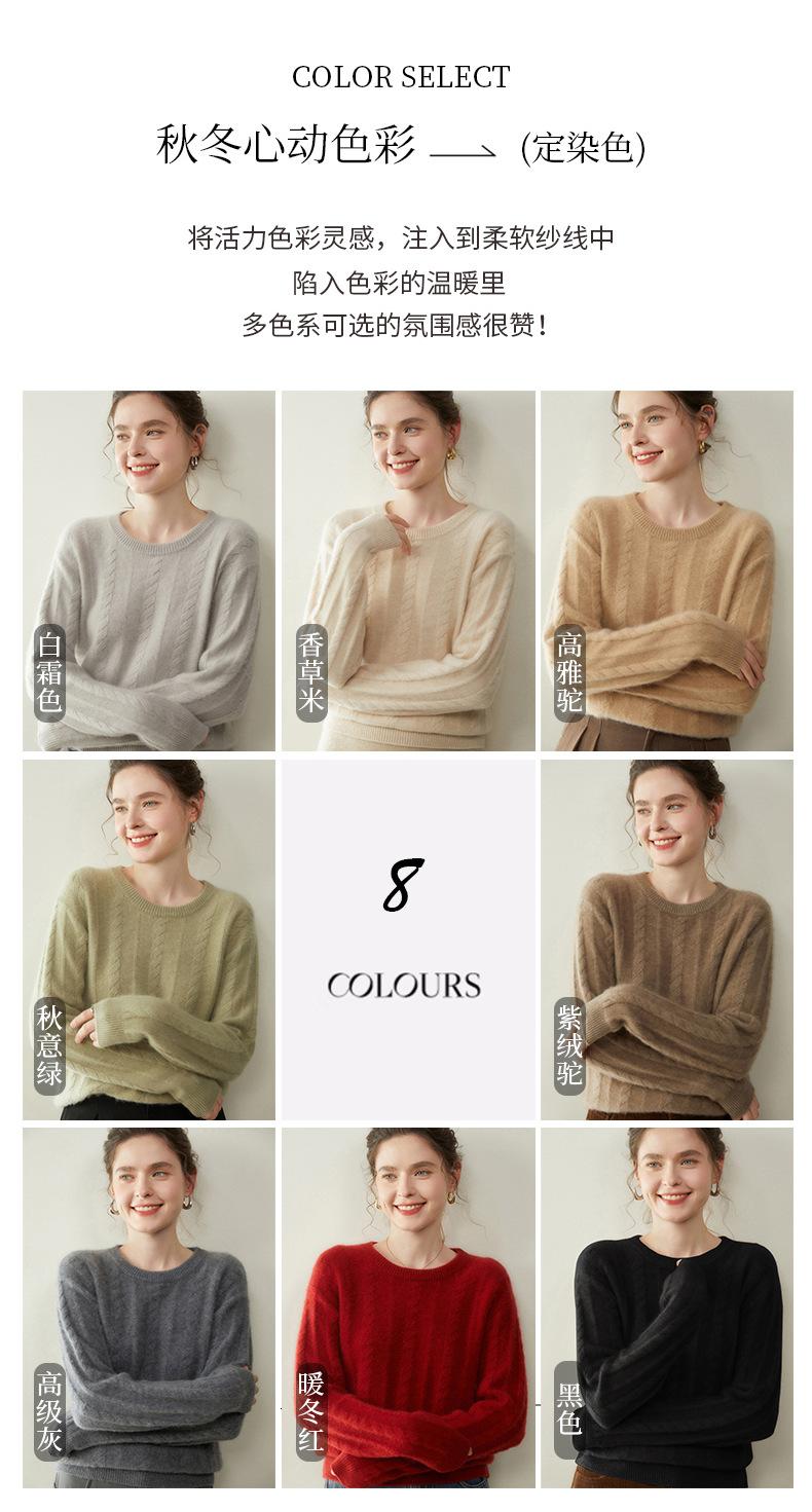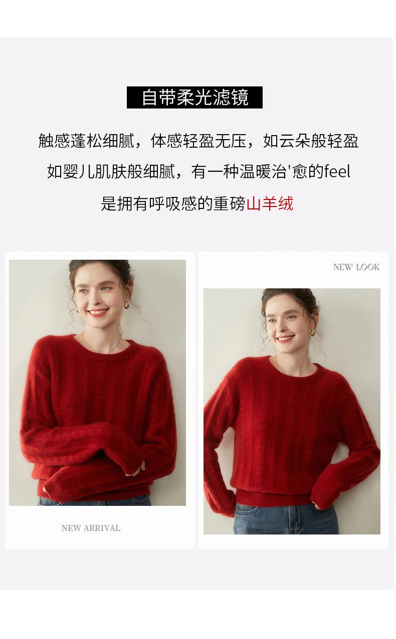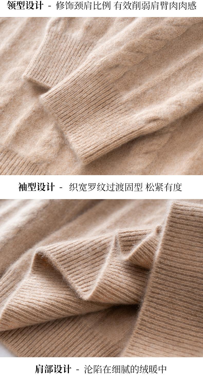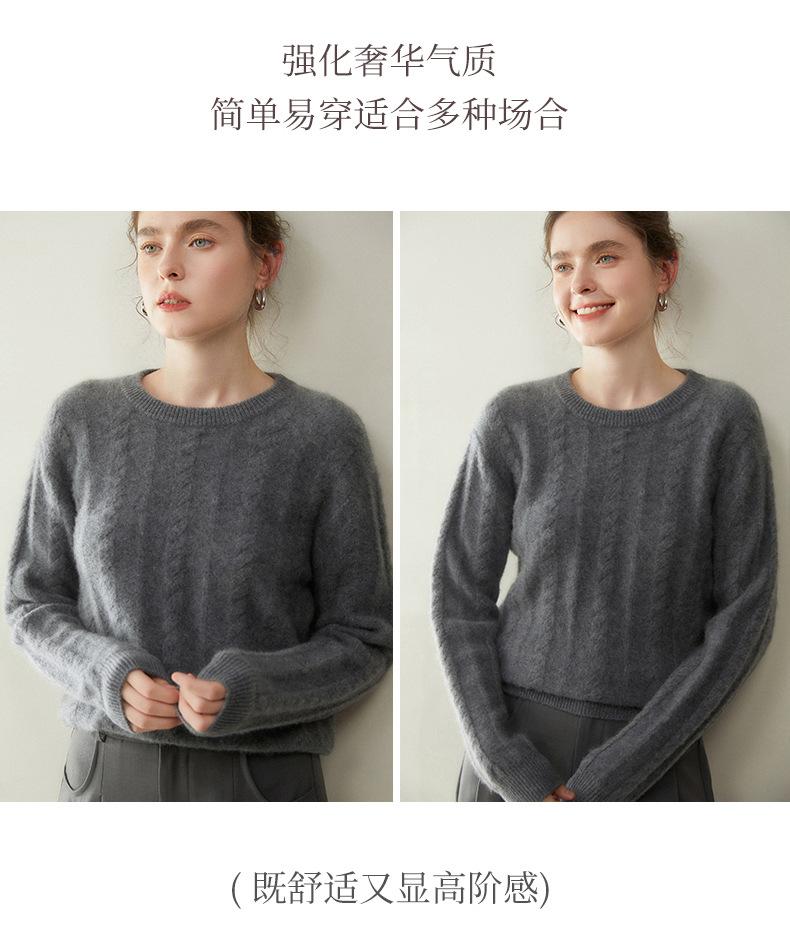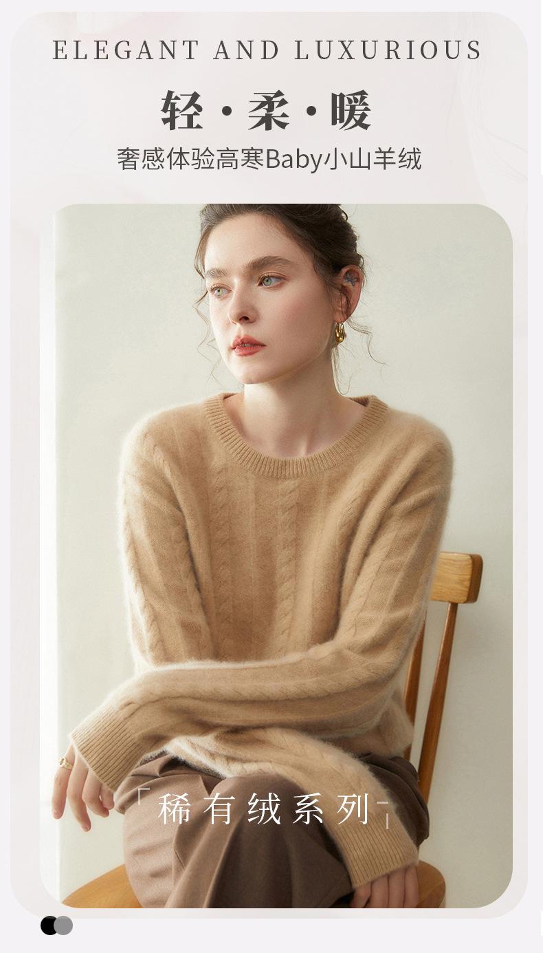 Otoño/Invierno 2025 Nuevo Estilo Prendas de Punto de Cachemira para Mujer Suéter de Manga Larga con Cuello Redondo Moda Punto de Cable Versátil Camisa Básica Holgada
