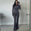 Traje de Sudadera con Estampado de Lunares y Letras Sexy que Muestra el Ombligo para Mujer, Estilo Europeo y Americano Transfronterizo, Nuevo Otoño e Invierno 2025