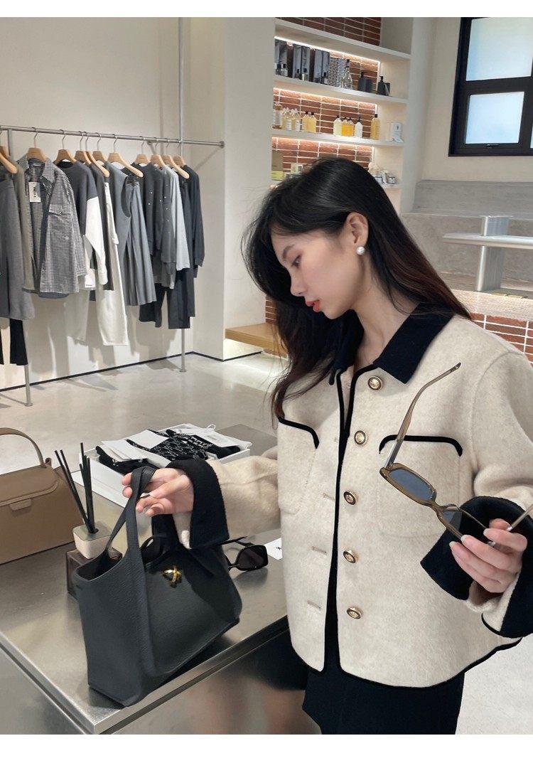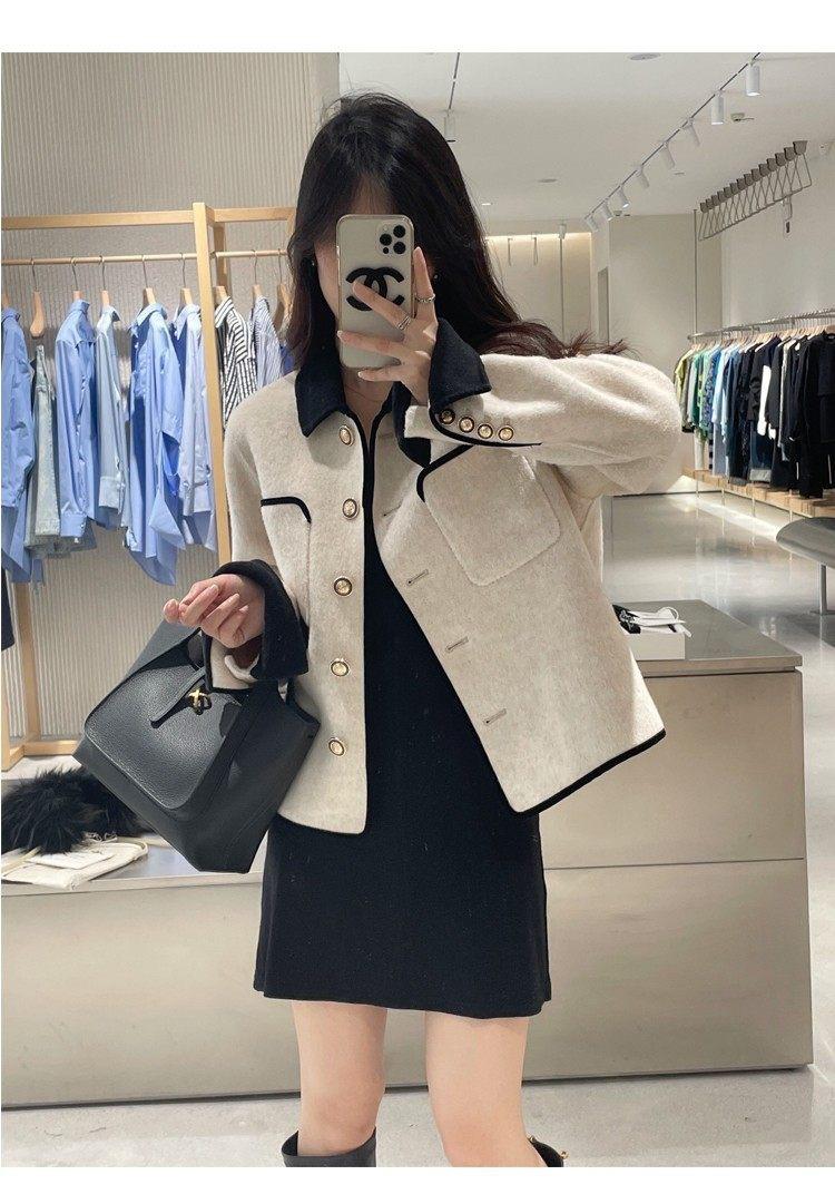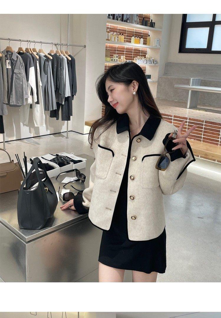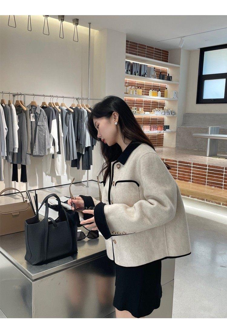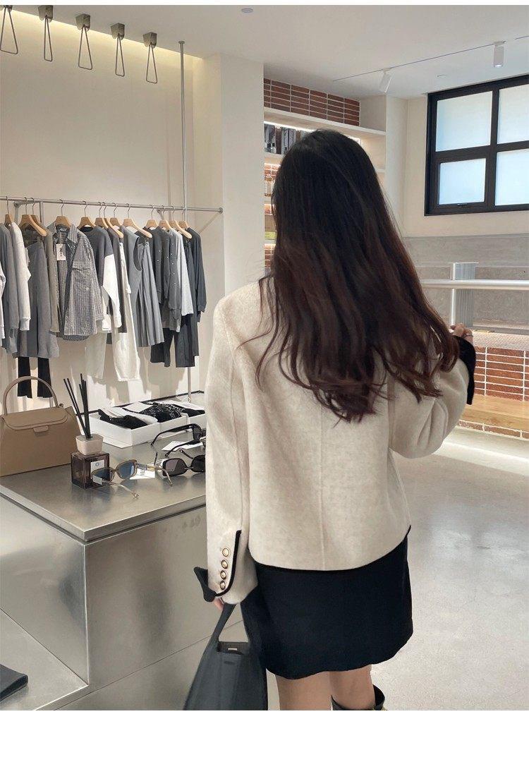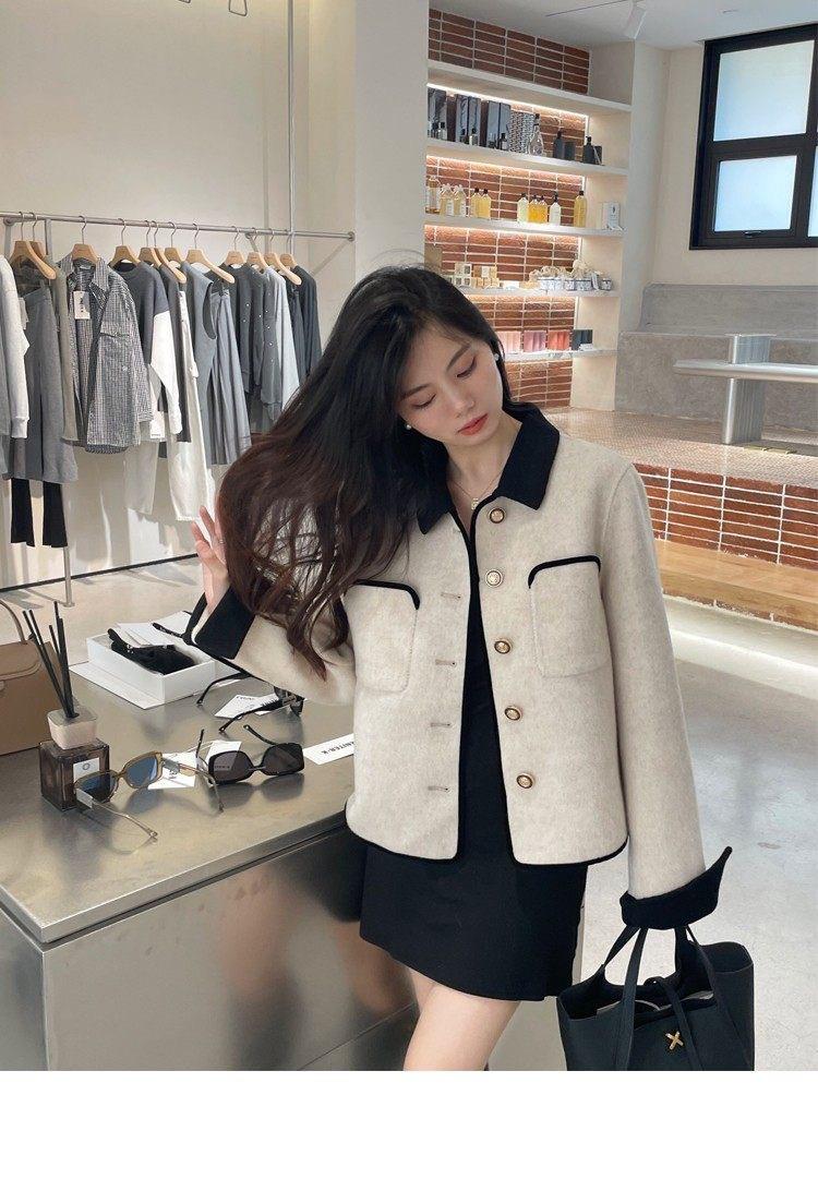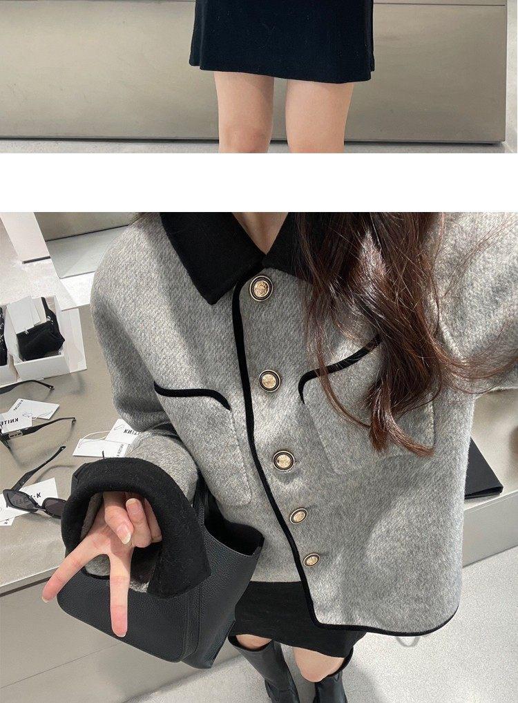 Abrigo de Cachemira de Tweed de Doble Cara Estilo Nuevo 2024 para Mujer, Chaqueta Corta de Lana Petite Estilo Francés con Botones Dorados Pequeños, Versátil