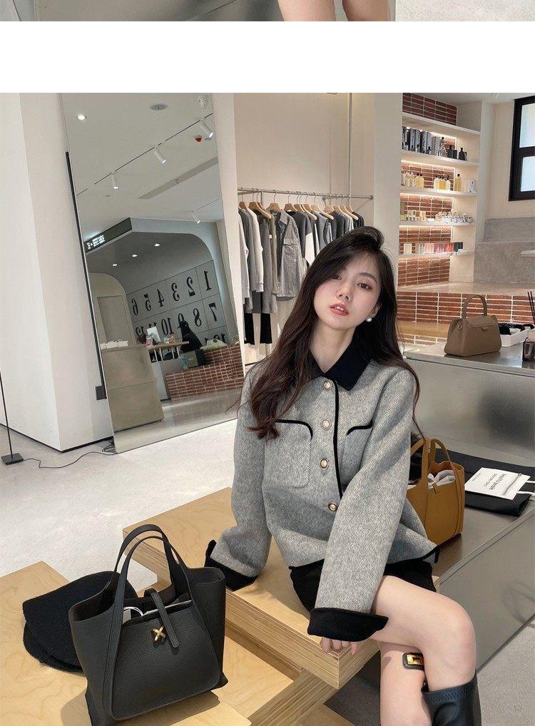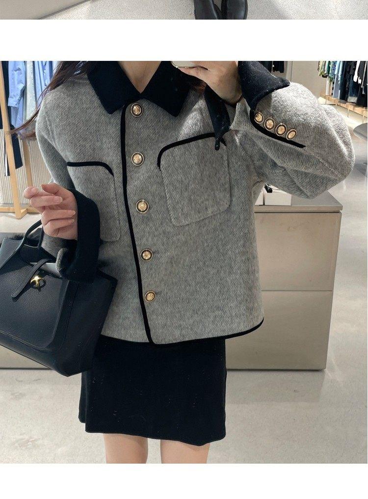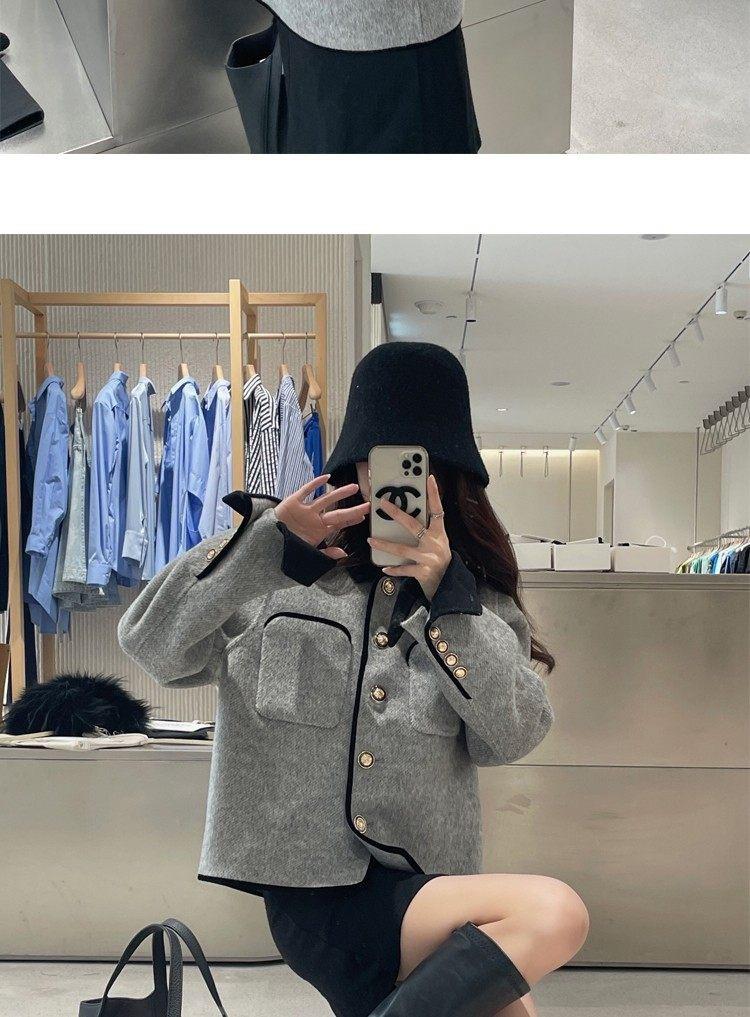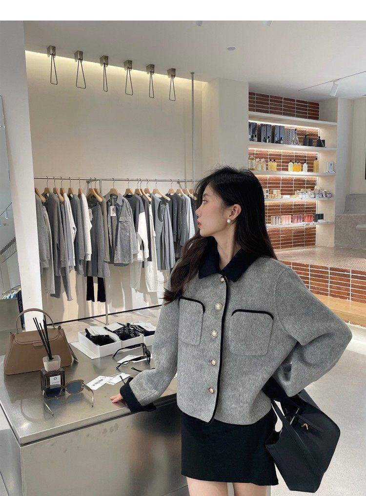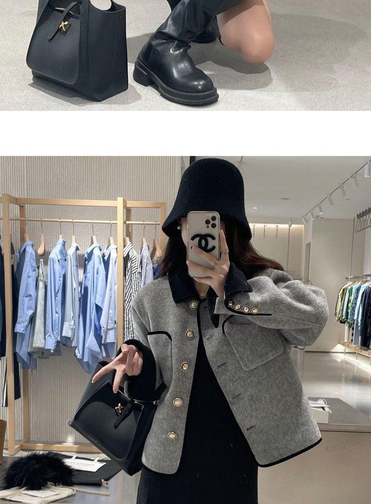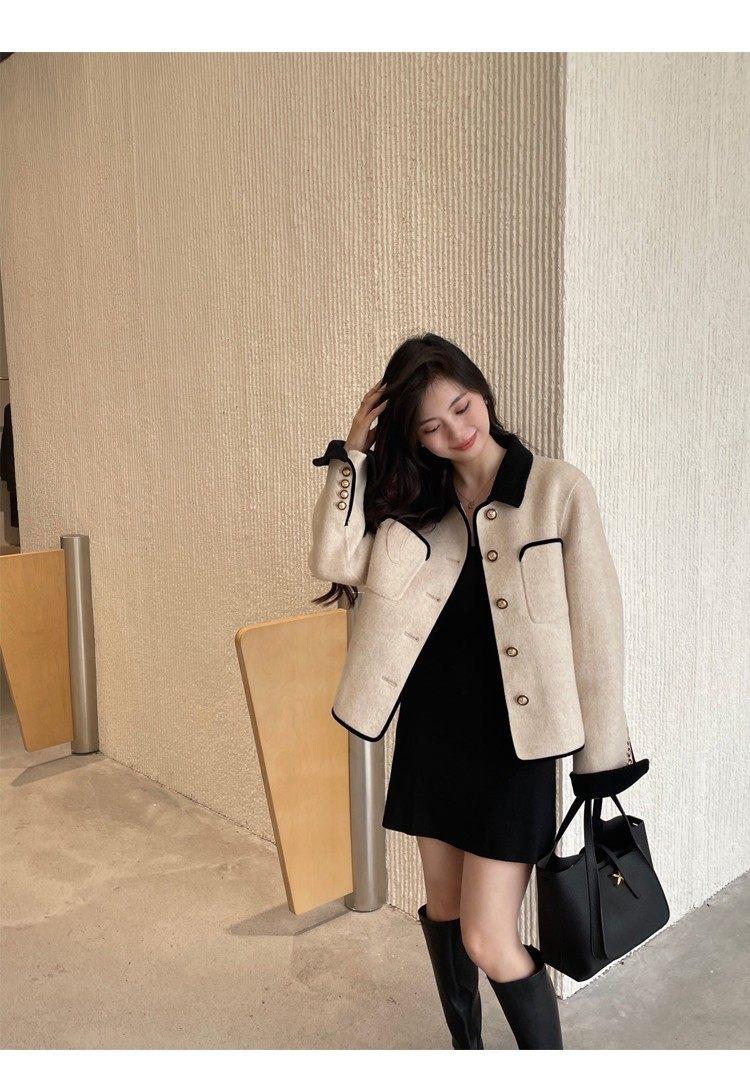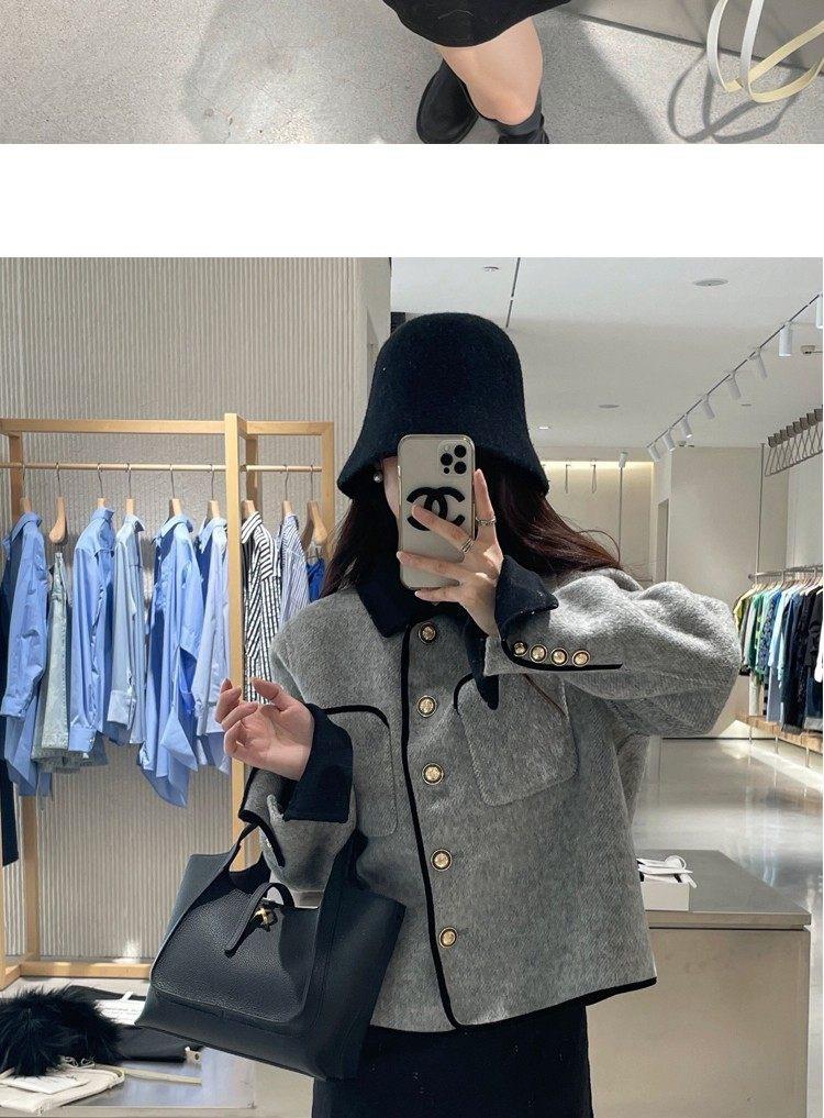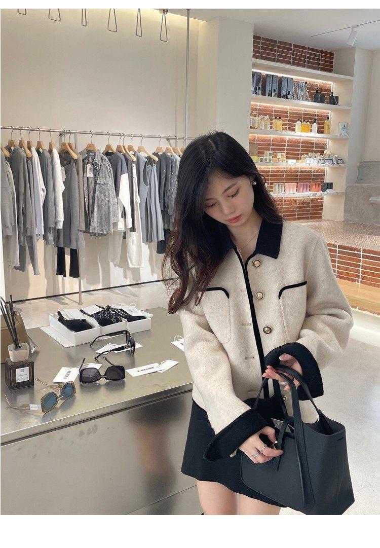 Abrigo de Cachemira de Tweed de Doble Cara Estilo Nuevo 2024 para Mujer, Chaqueta Corta de Lana Petite Estilo Francés con Botones Dorados Pequeños, Versátil