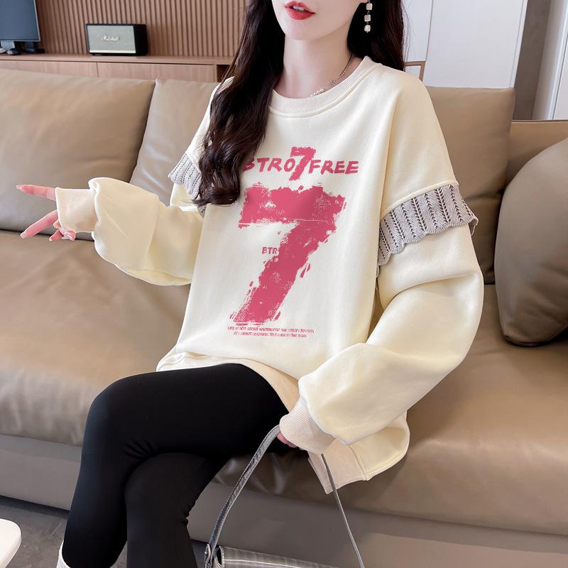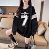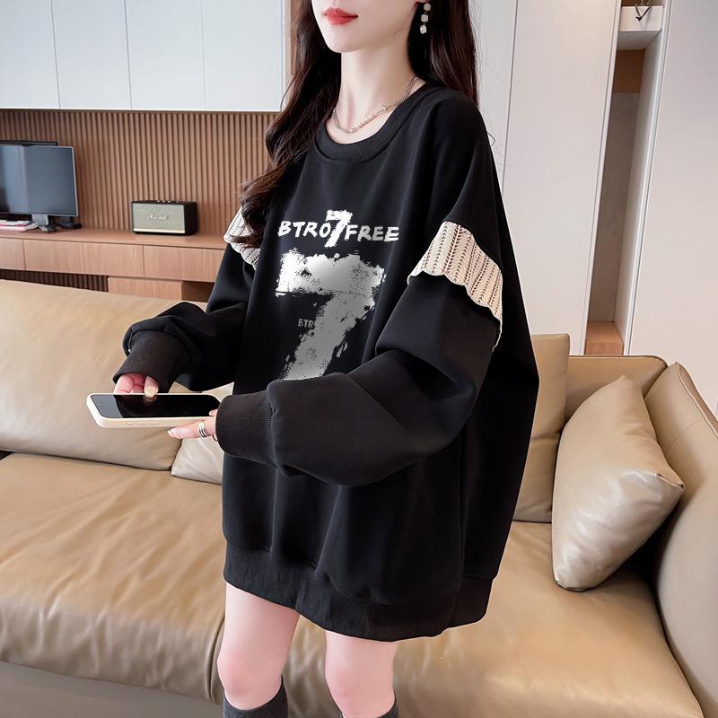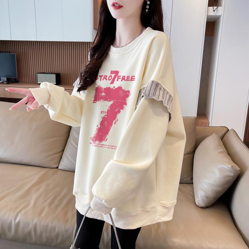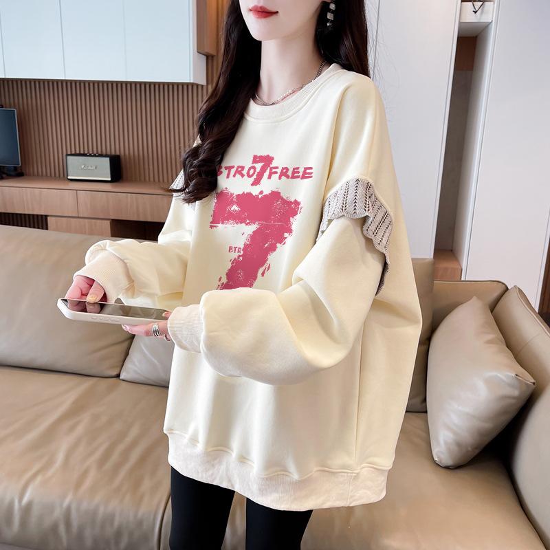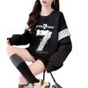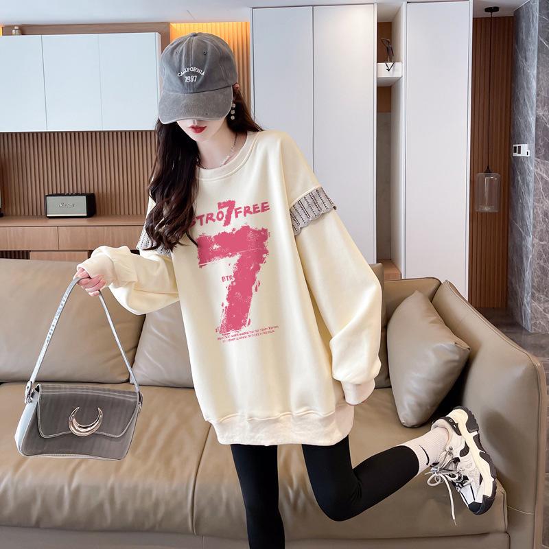 Sudadera Chic Divertida con Estampado Digital de Cuello Redondo Otoño e Invierno Super Fuego Largo Medio Oversize con Forro Polar Grueso Top