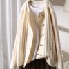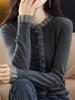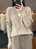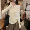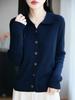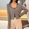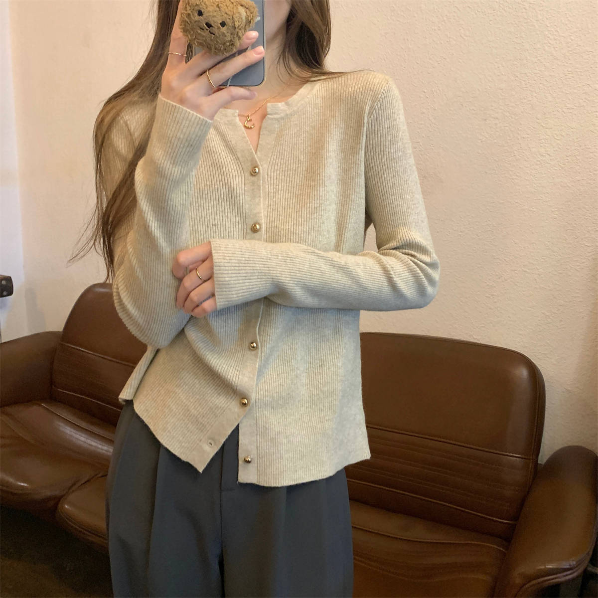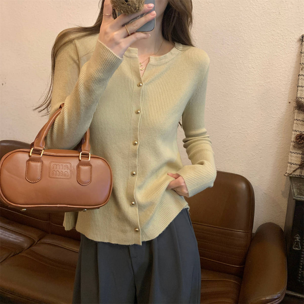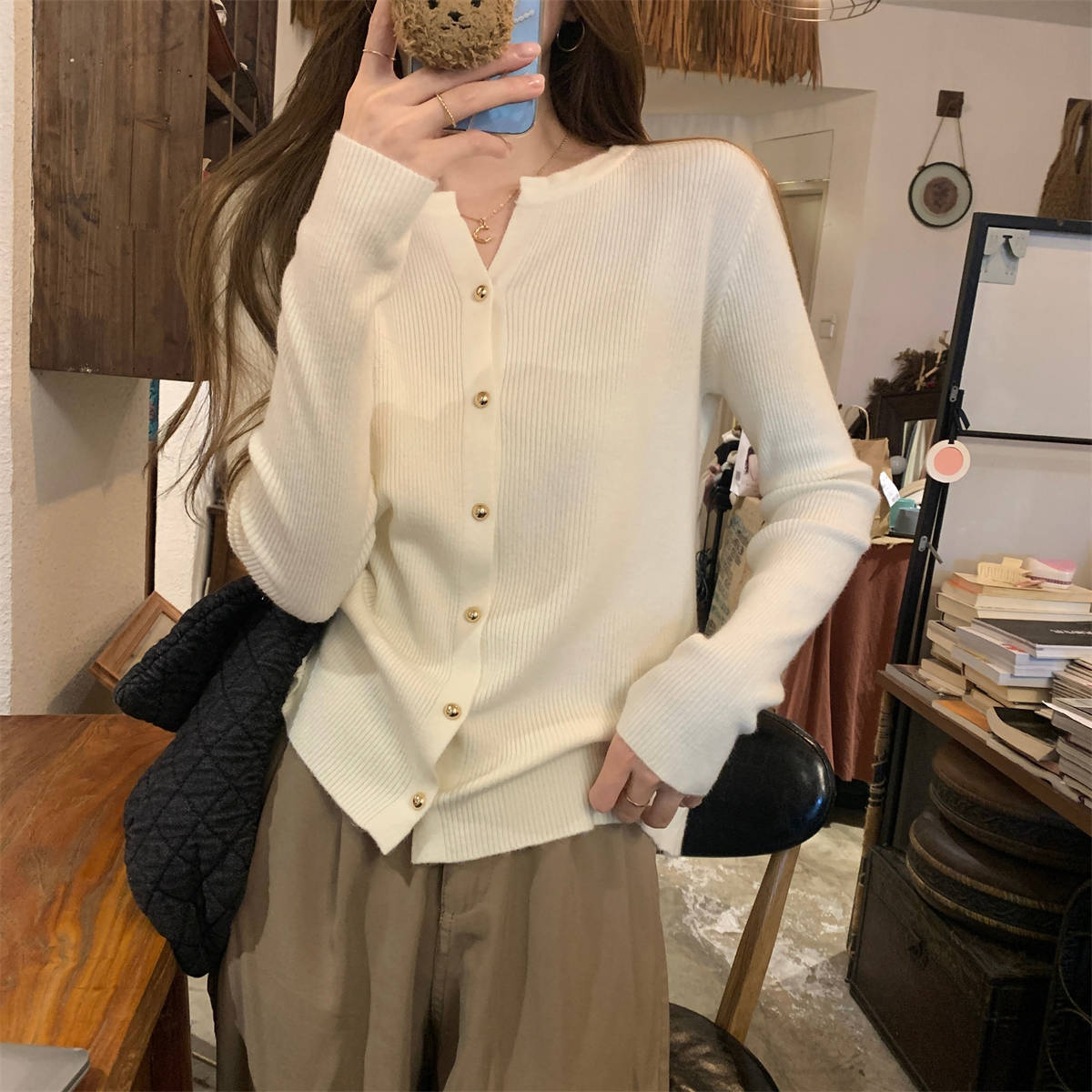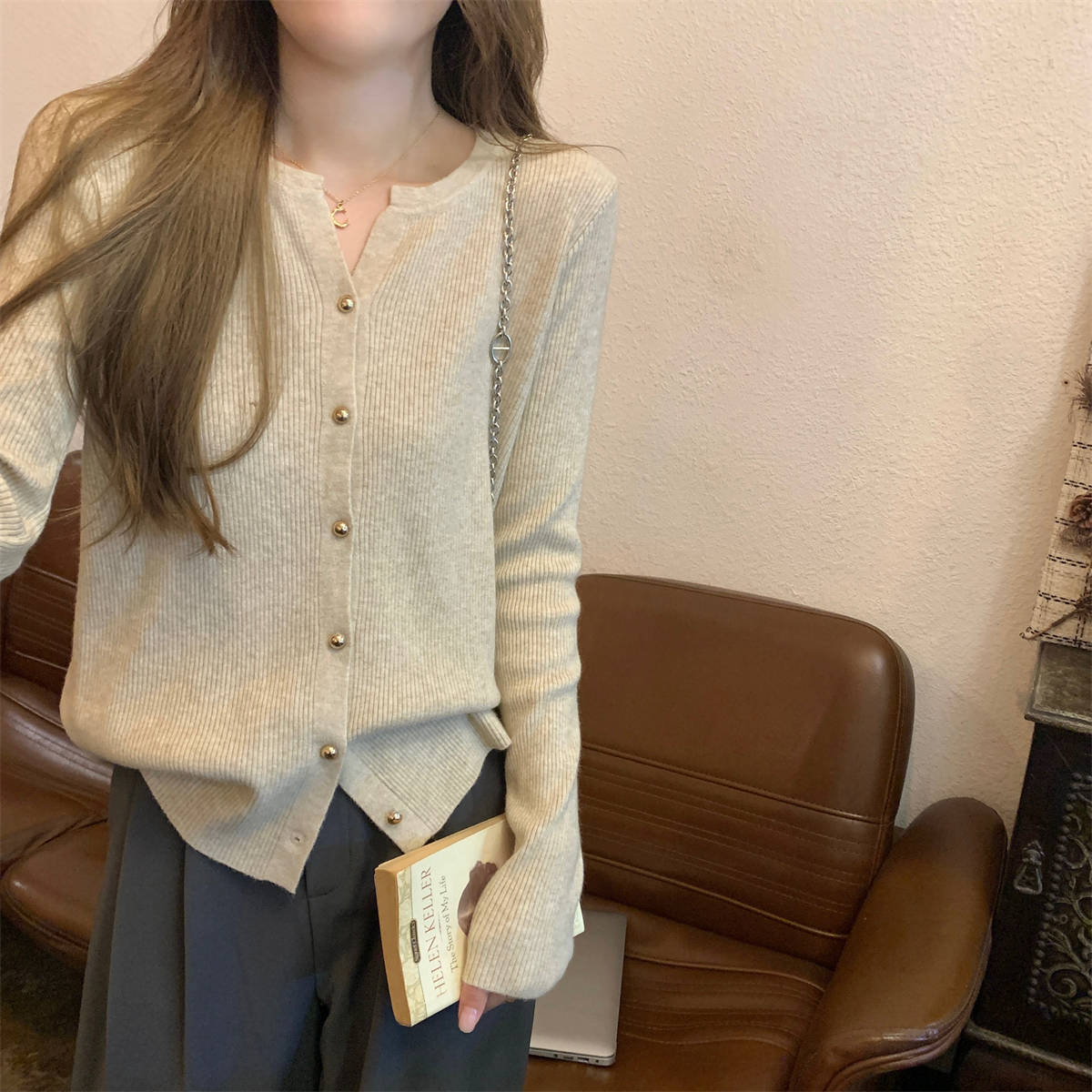 Cárdigan de punto de estilo francés con cuello en V y botonadura simple para mujer, suéter casual versátil sencillo de manga larga, top acanalado