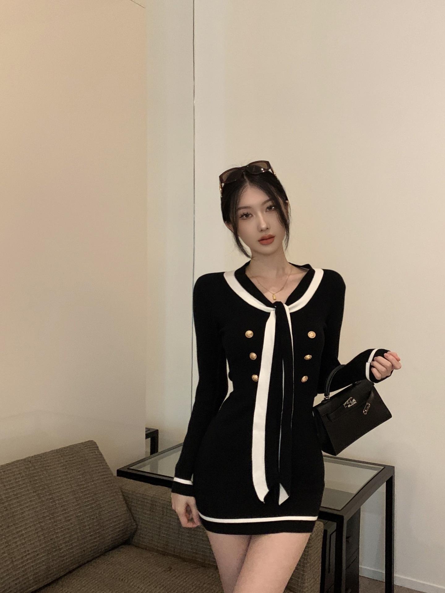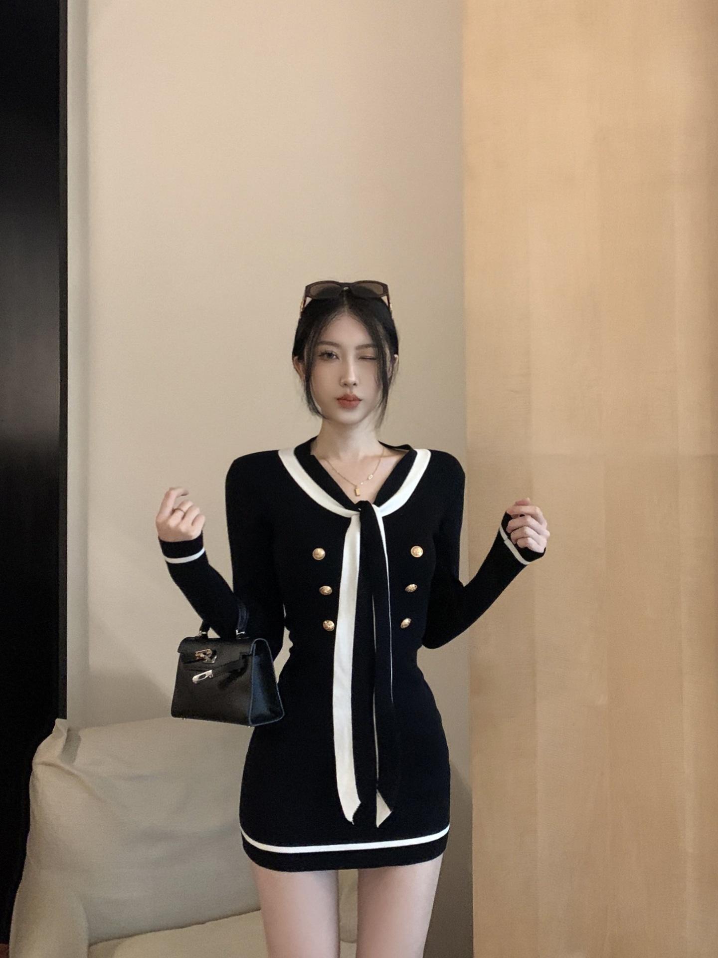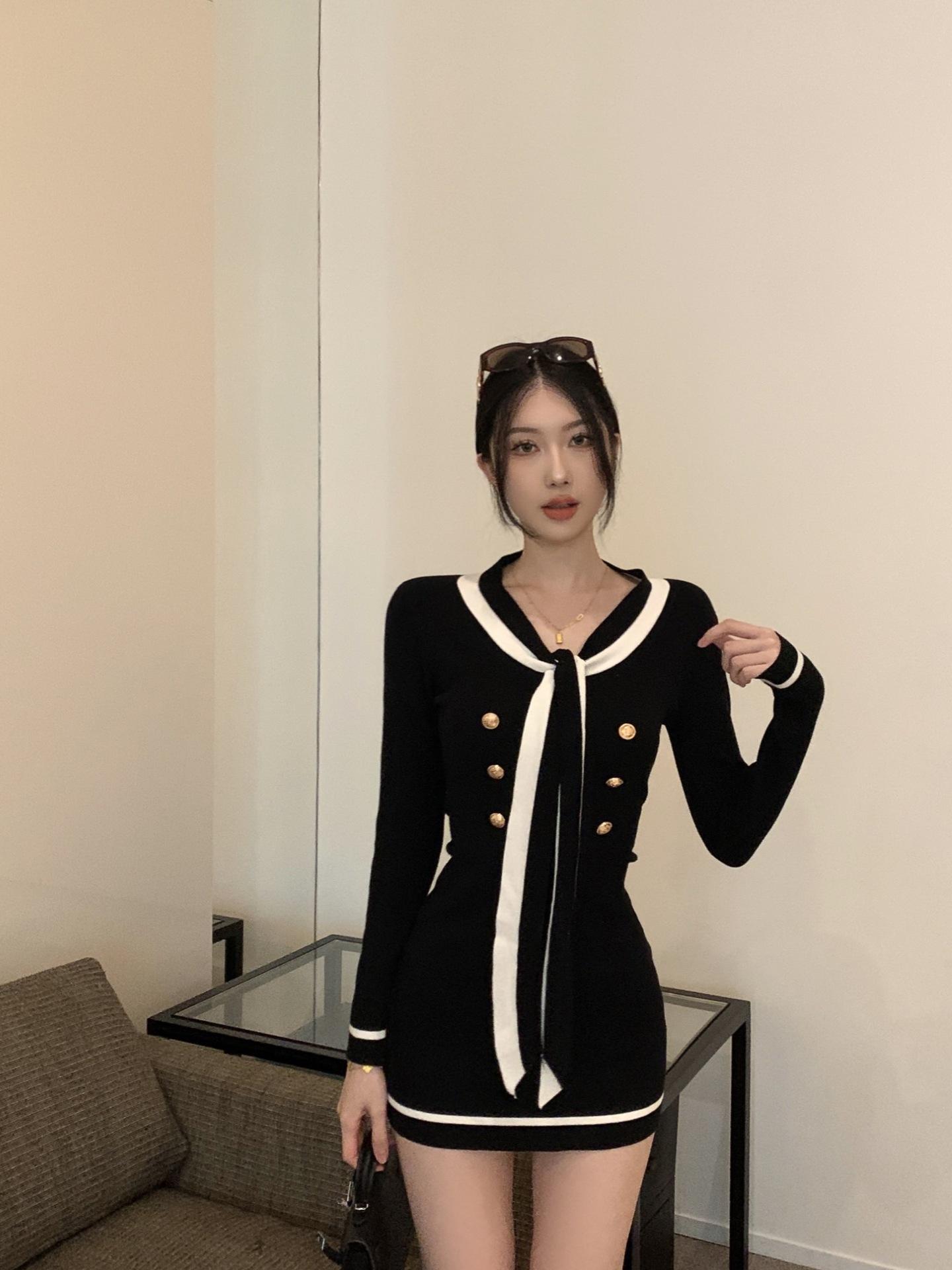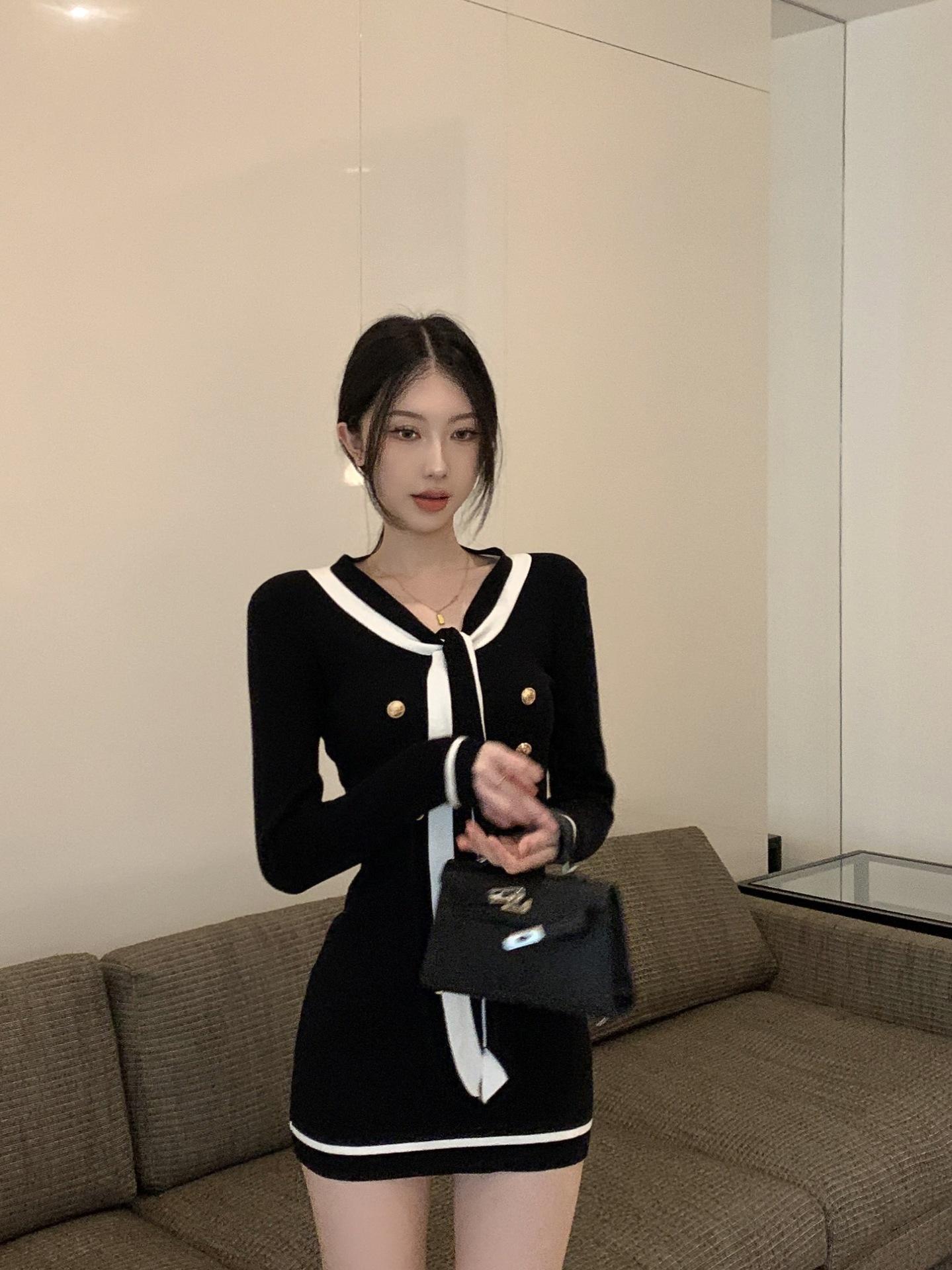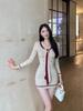 Moda Otoño Temperamento Estilo Pequeño Fragante Vestido de Cinta Adelgazante de Cintura Ajustado a la Cadera Vestido Corto Sexy Puro Deseo