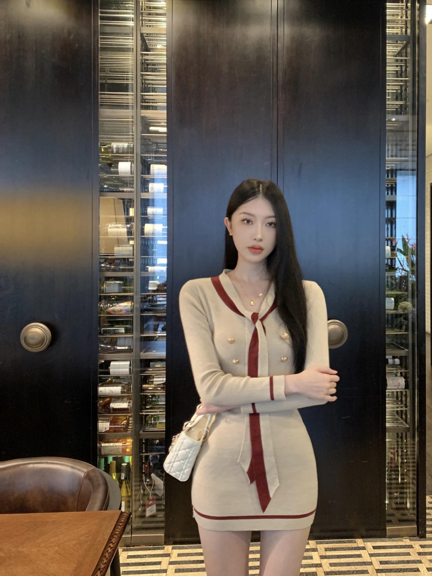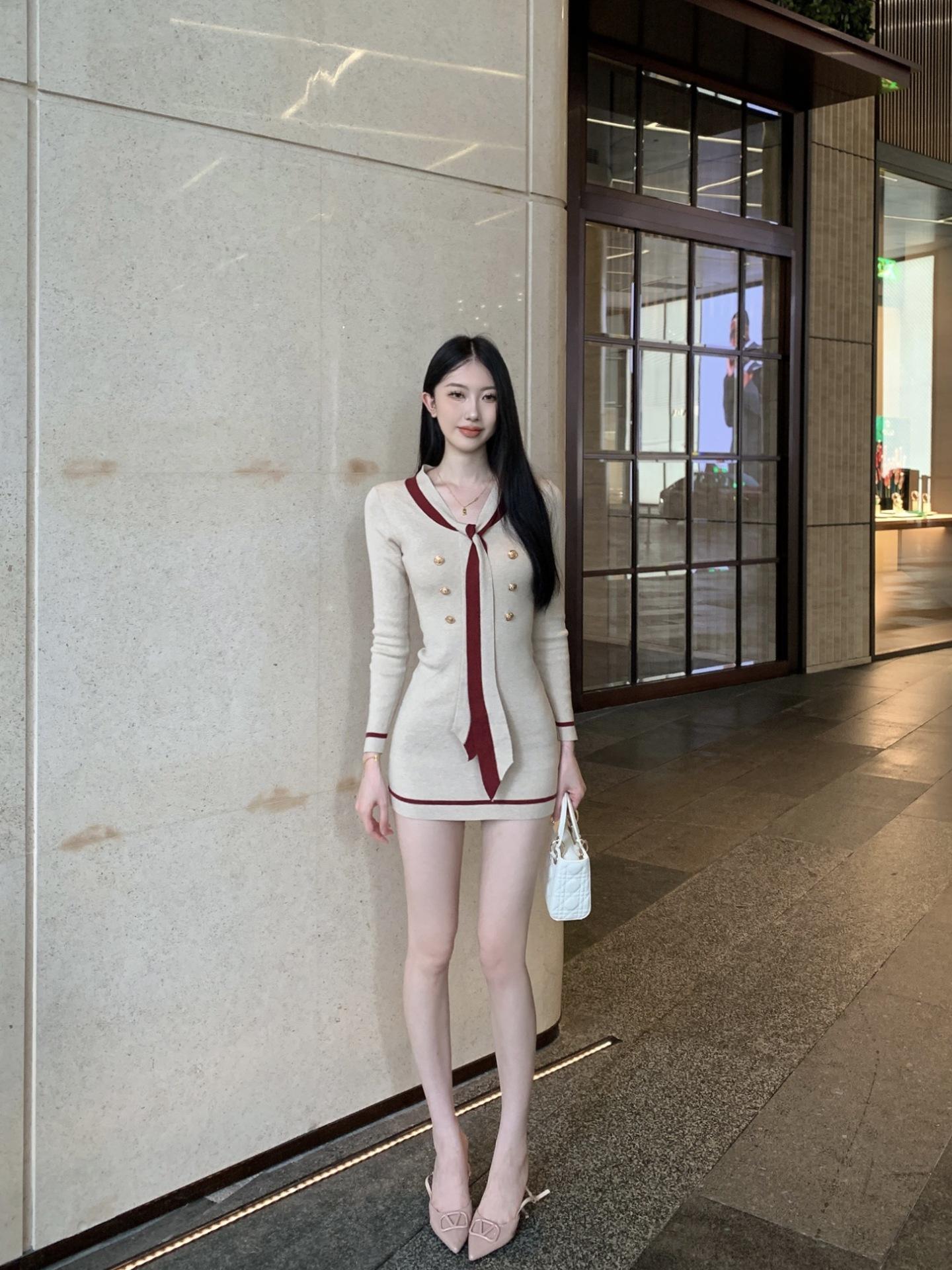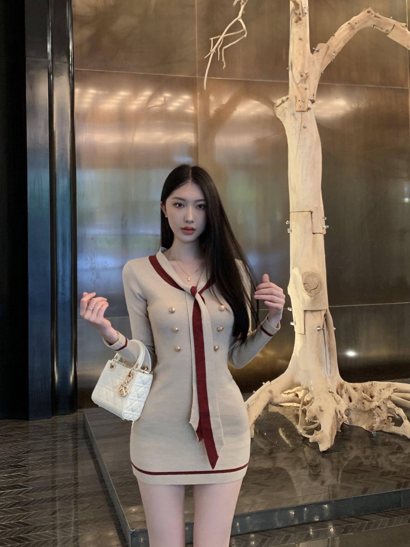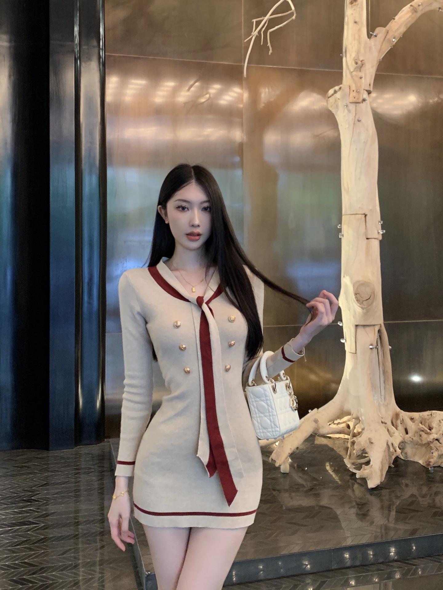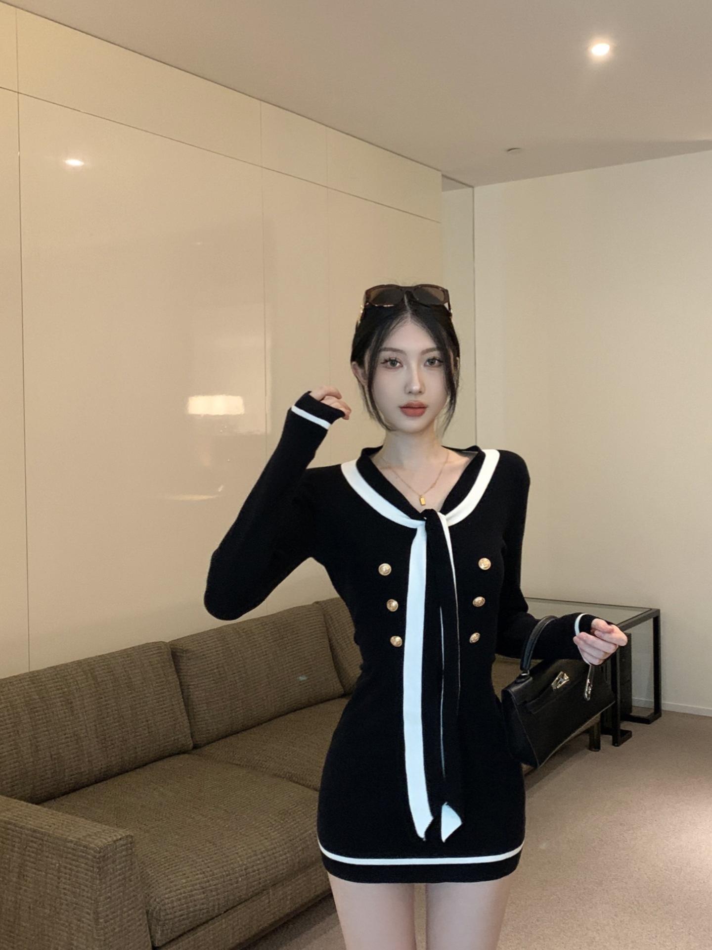 Moda Otoño Temperamento Estilo Pequeño Fragante Vestido de Cinta Adelgazante de Cintura Ajustado a la Cadera Vestido Corto Sexy Puro Deseo