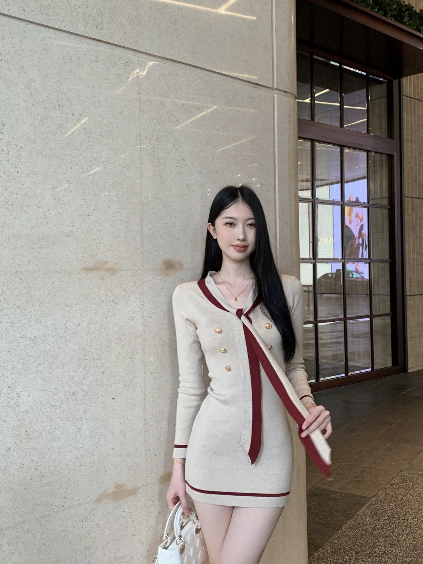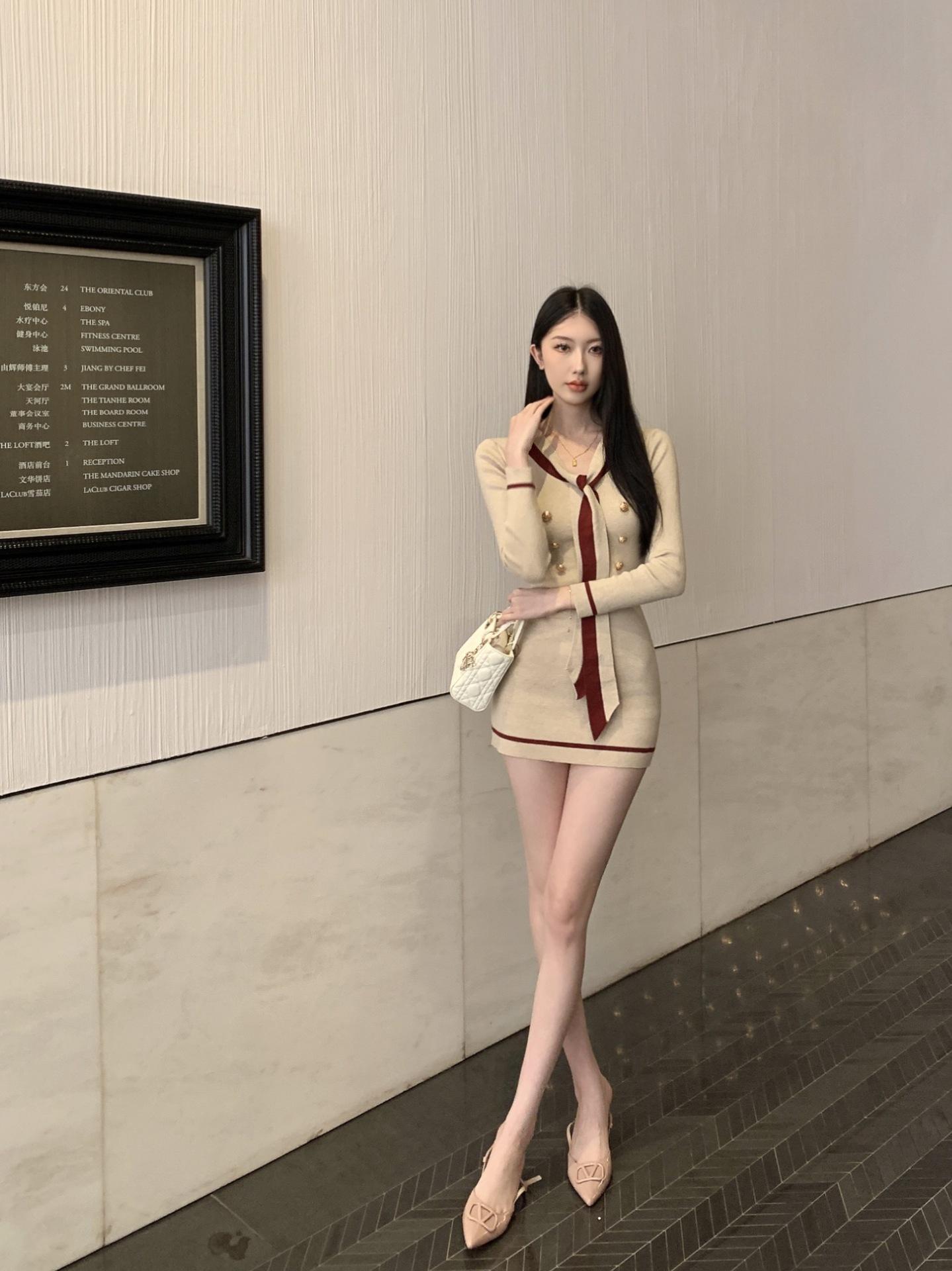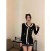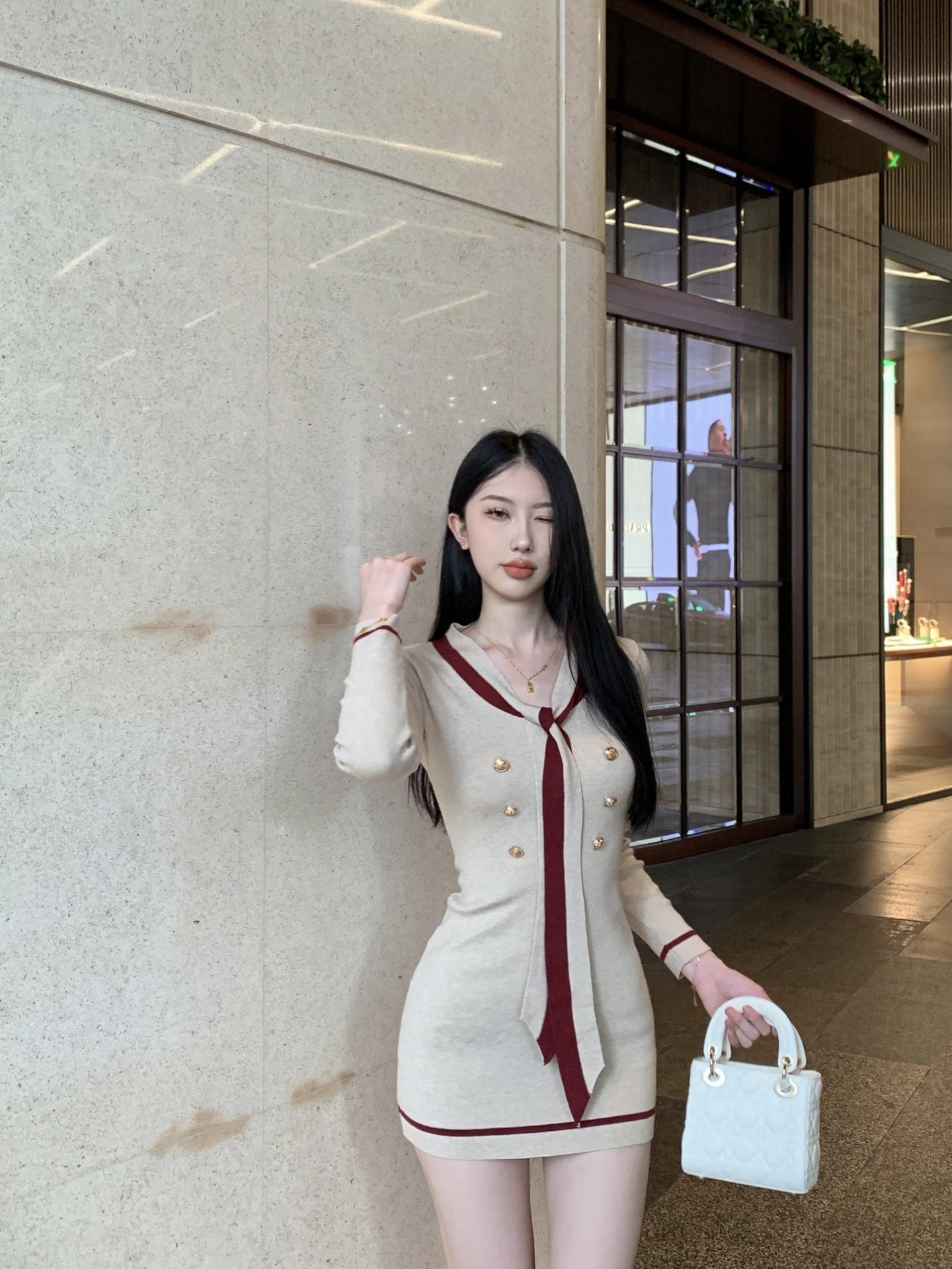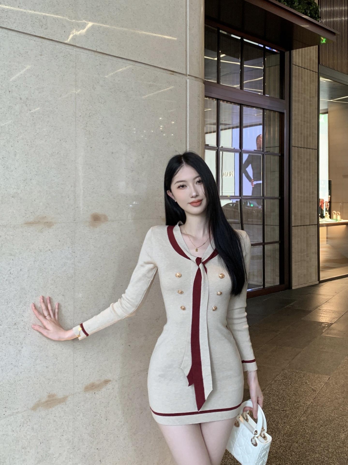 Moda Otoño Temperamento Estilo Pequeño Fragante Vestido de Cinta Adelgazante de Cintura Ajustado a la Cadera Vestido Corto Sexy Puro Deseo