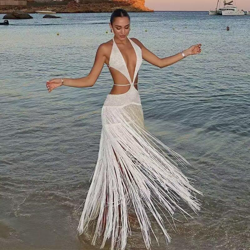 Aliexpress Transfronterizo Ropa Europea y Americana al por Mayor 2025 Principios de Primavera Nuevo Vestido con Flecos