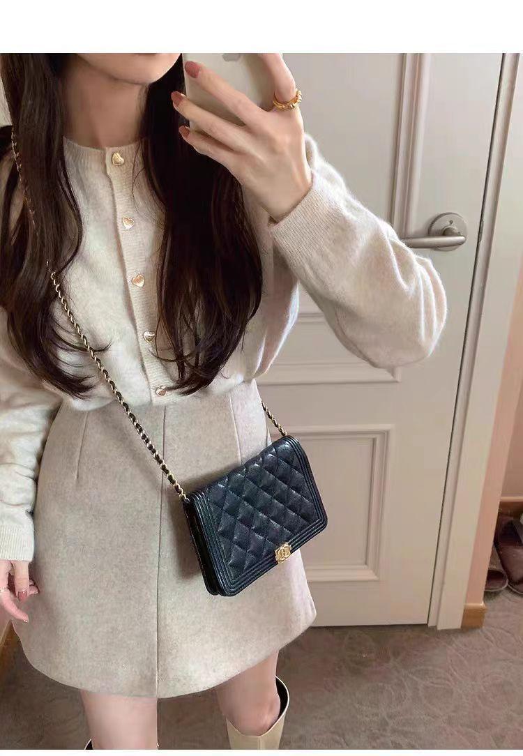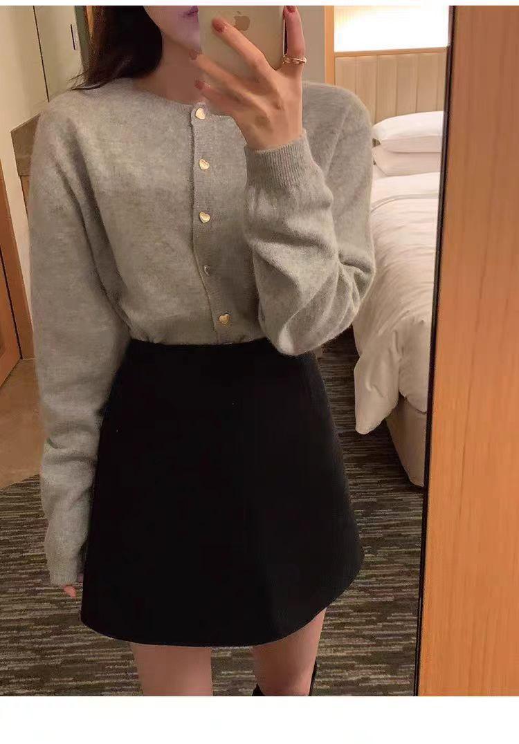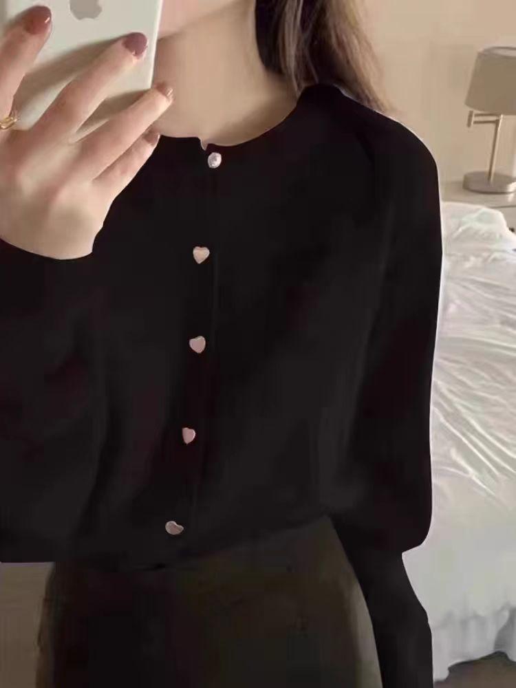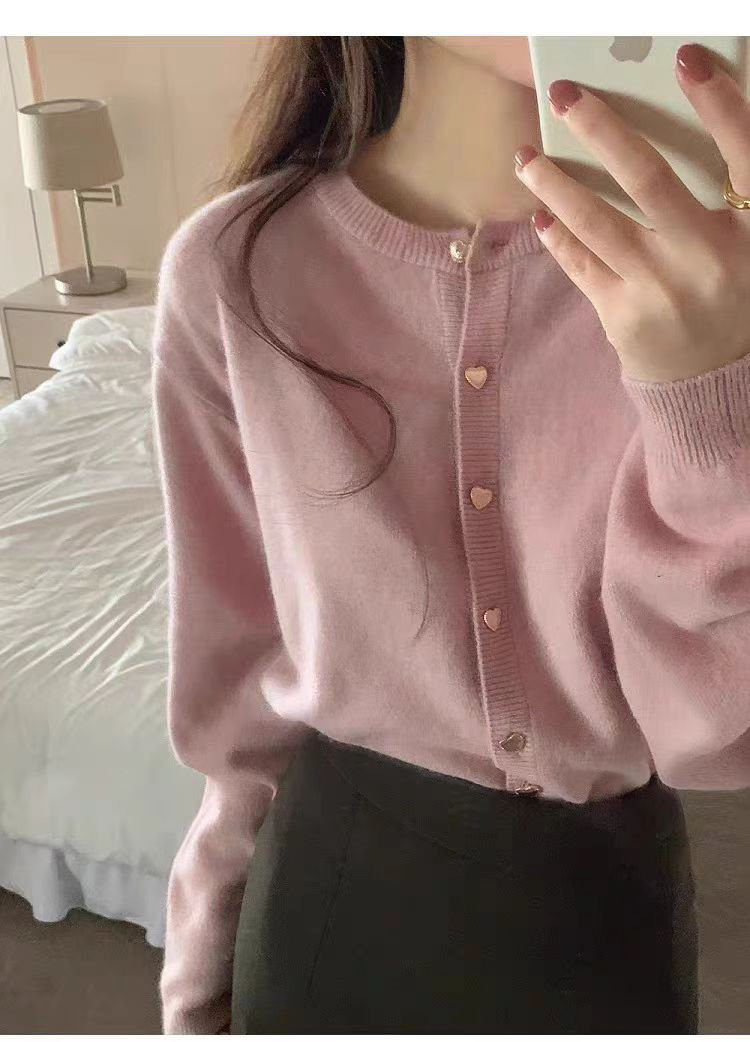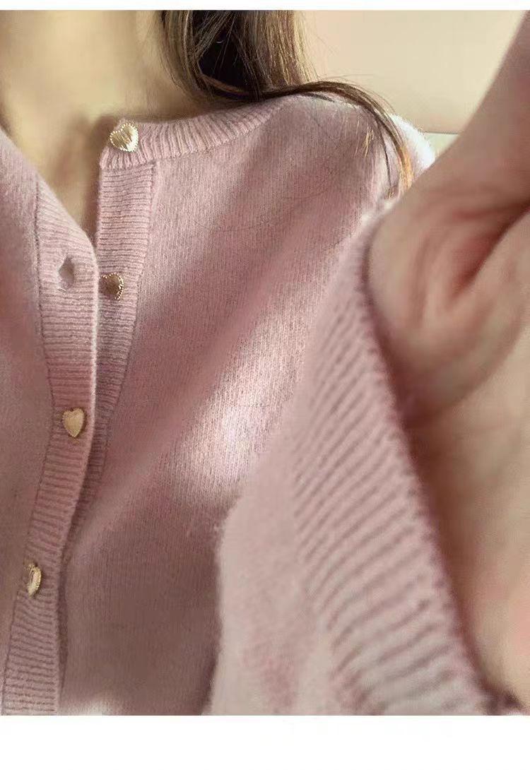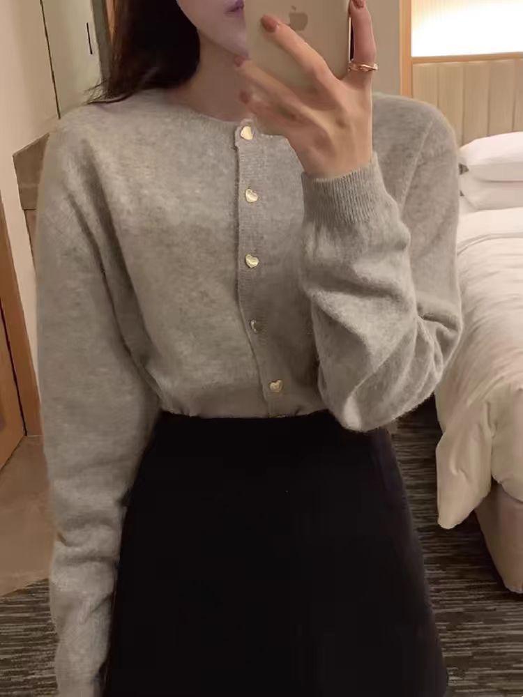 Cárdigan de lana 100% pura para mujer, cuello redondo, corazón, abrigo con botones dorados pequeños, nuevo estilo de otoño e invierno, suéter de estilo moderno que reduce la edad