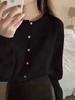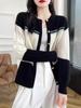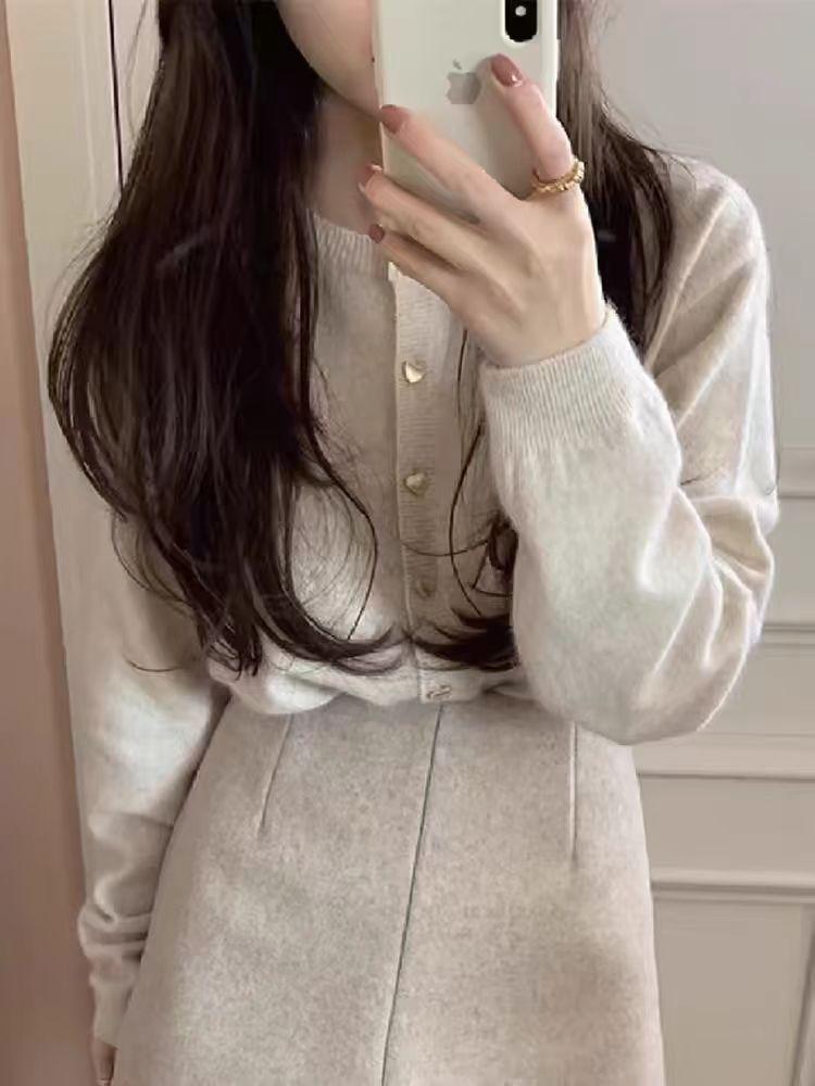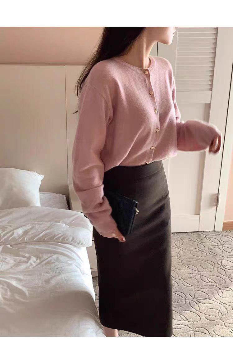 Tejido de Punto de Lana Fina Cárdigan Corto de Cuello Redondo para Mujer Clásico Otoño e Invierno Color Sólido Reductor de Edad Cárdigan Cálido y a la Moda