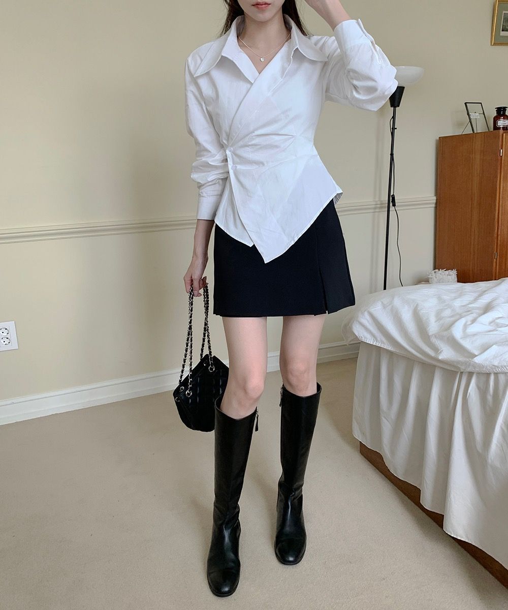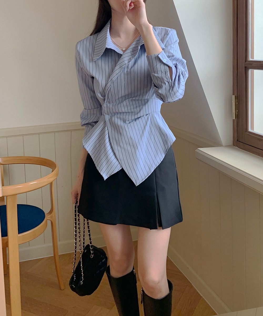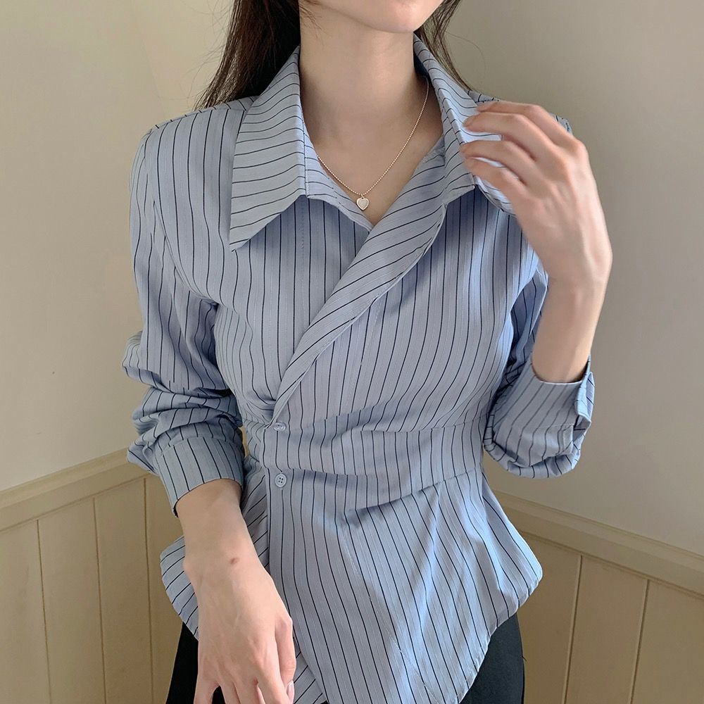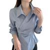 2025 Nuevo Diseño de Moda Cintura Irregular Adelgazante Manga Larga Casual Versátil Camisa Corta a Rayas Top