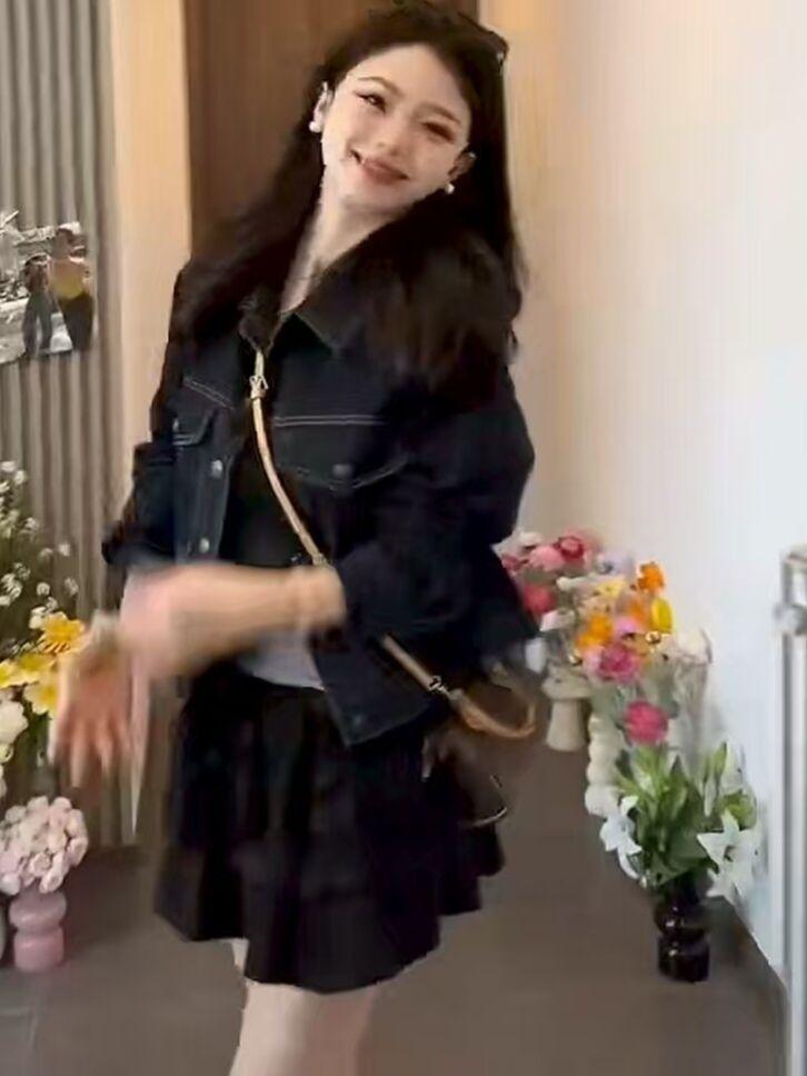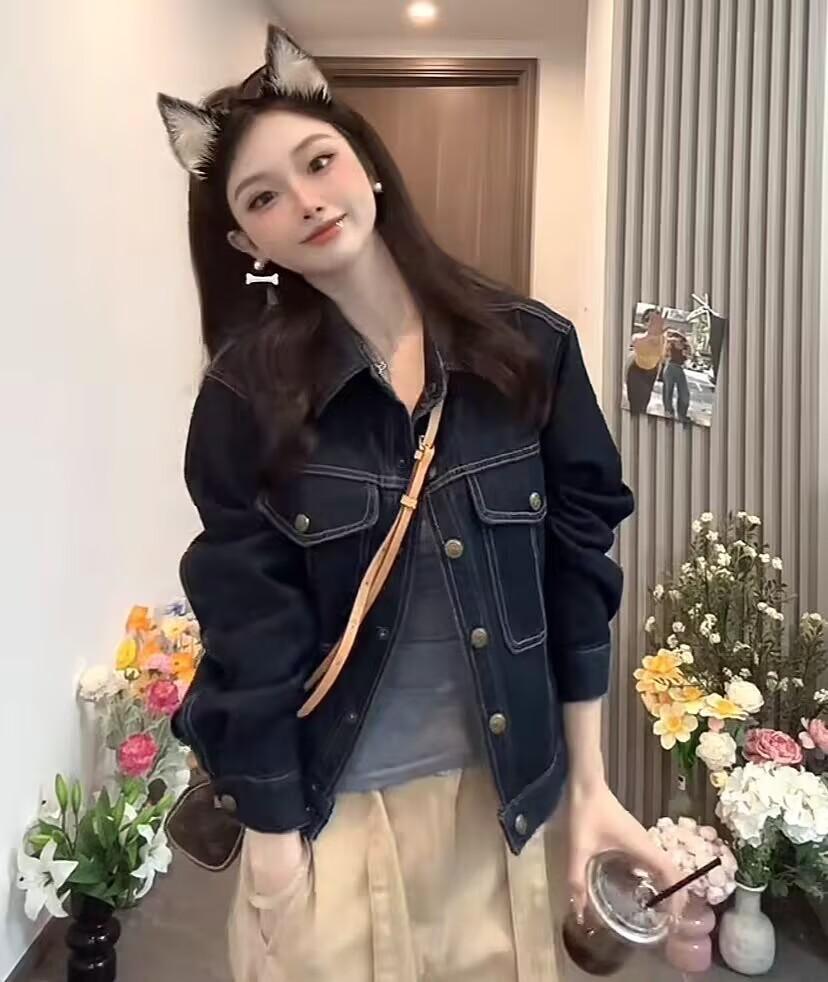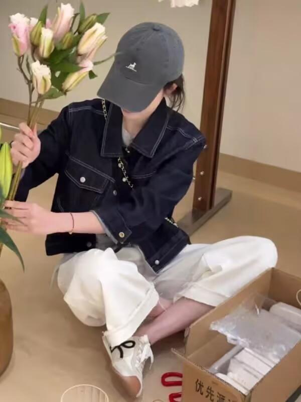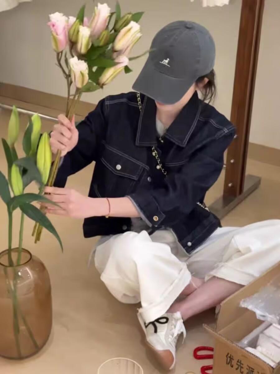 Chaqueta corta de mezclilla de alta gama para mujer 2025 nuevo otoño petite moda popular chaqueta holgada top marea