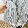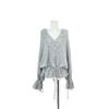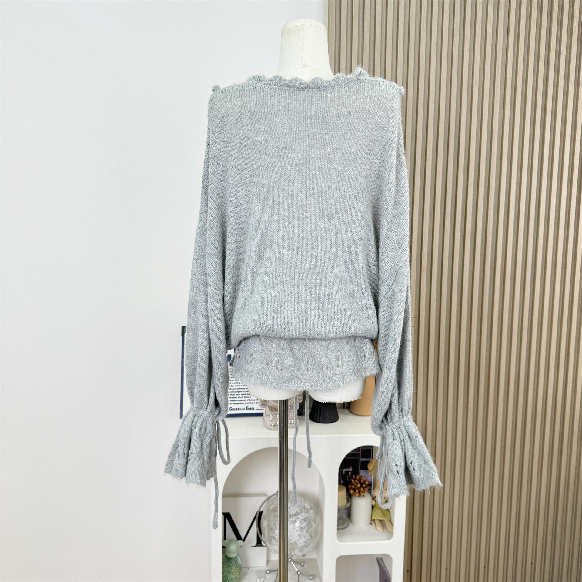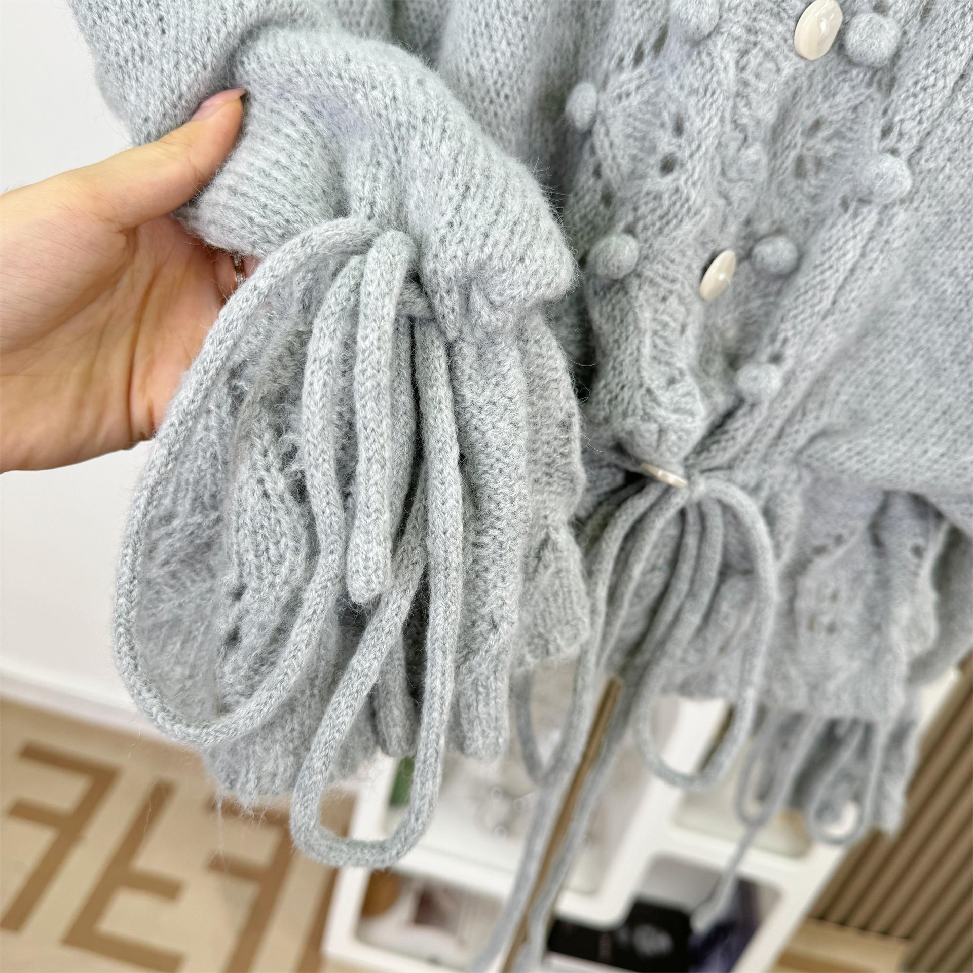 Suéter Nube Cálida Cuello en V Hueco Holgado con Cordón Estilo Lazy Tejido Top Adelgazante Mujer Otoño