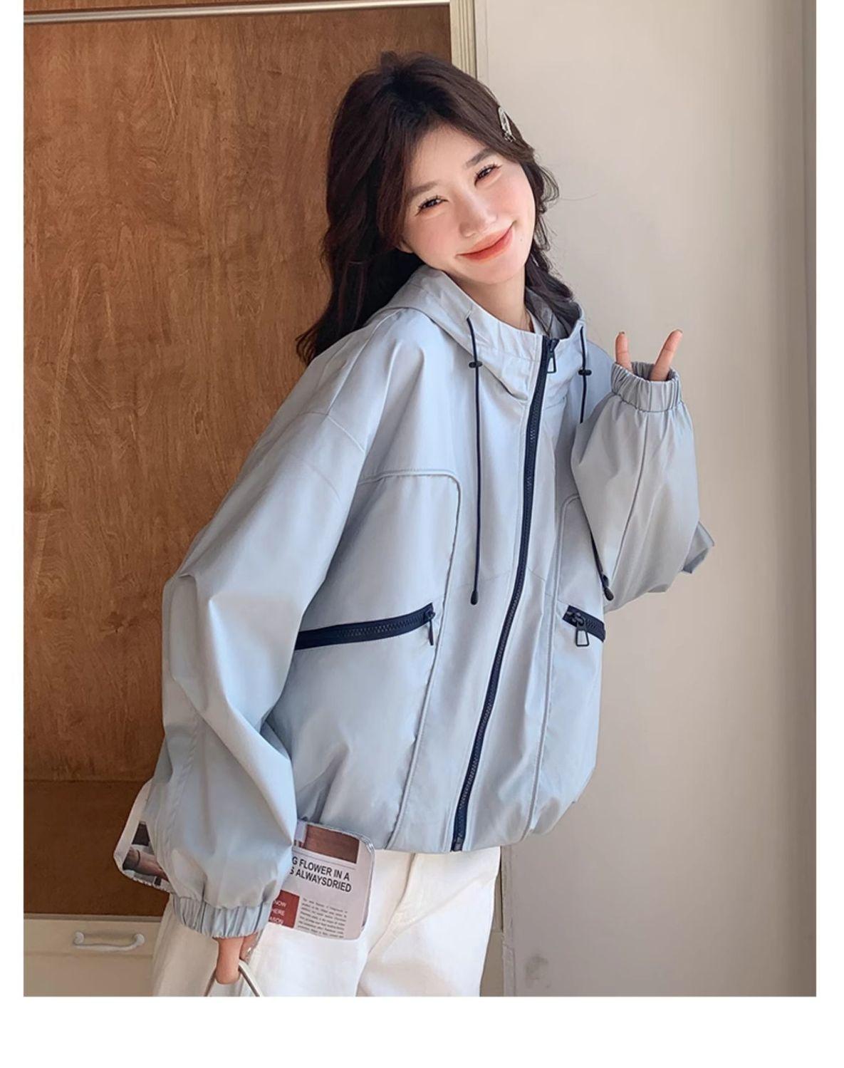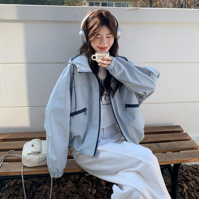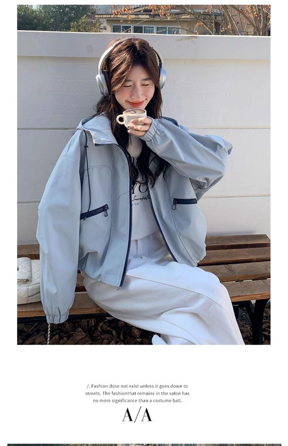 Nueva Chaqueta Cortavientos para Mujer Corta Petite Parka Ajuste Holgado Chaqueta de Ropa de Trabajo Top con Capucha Estilo Lazy