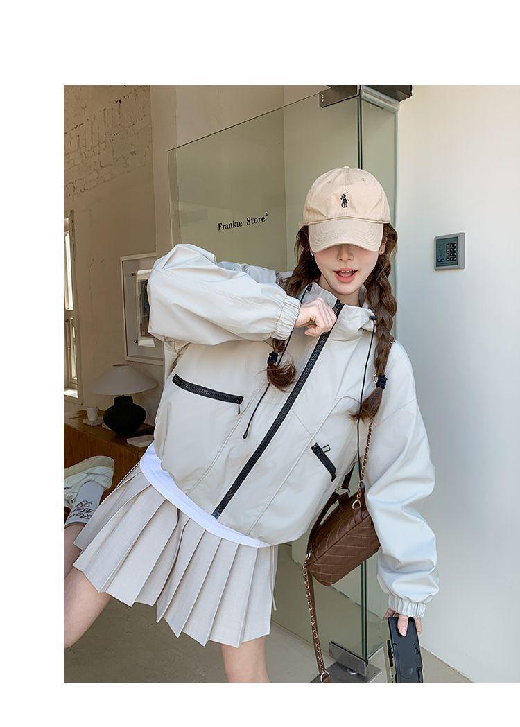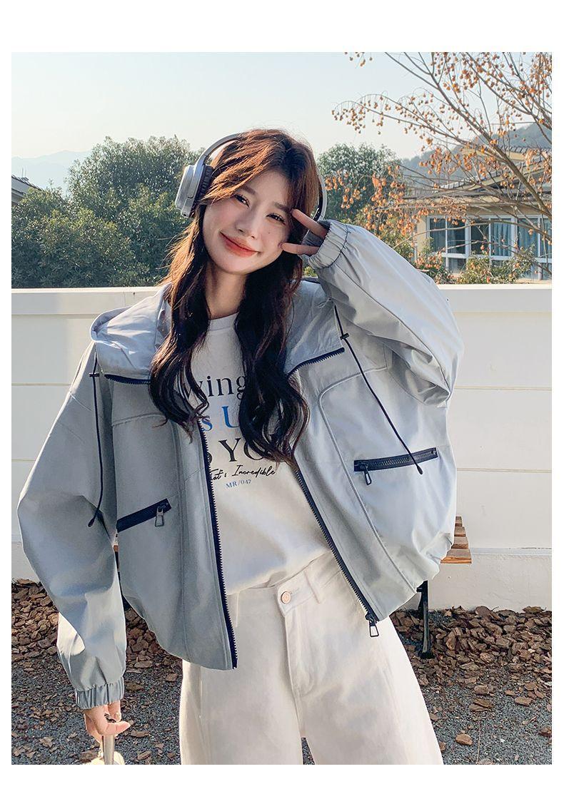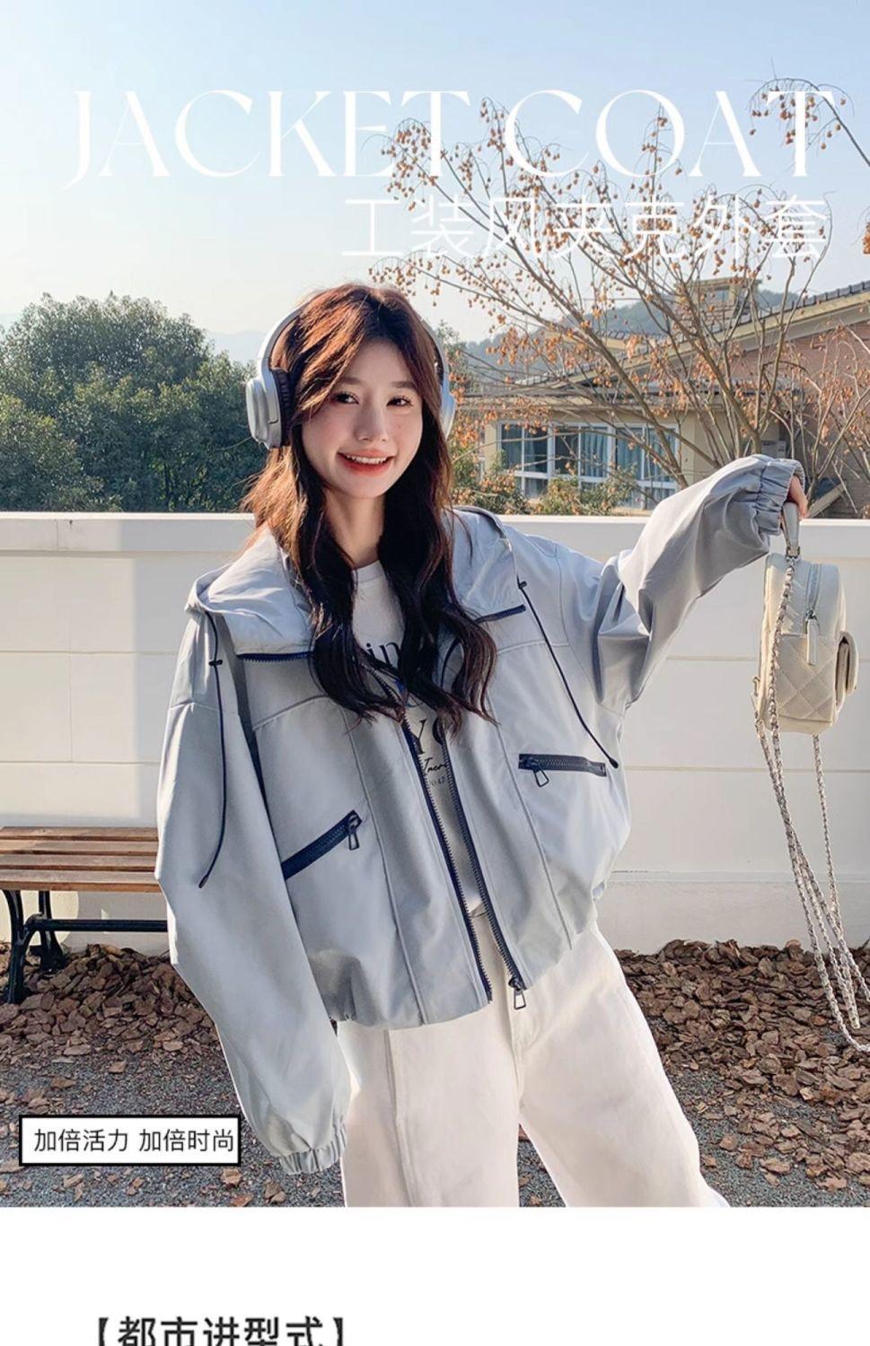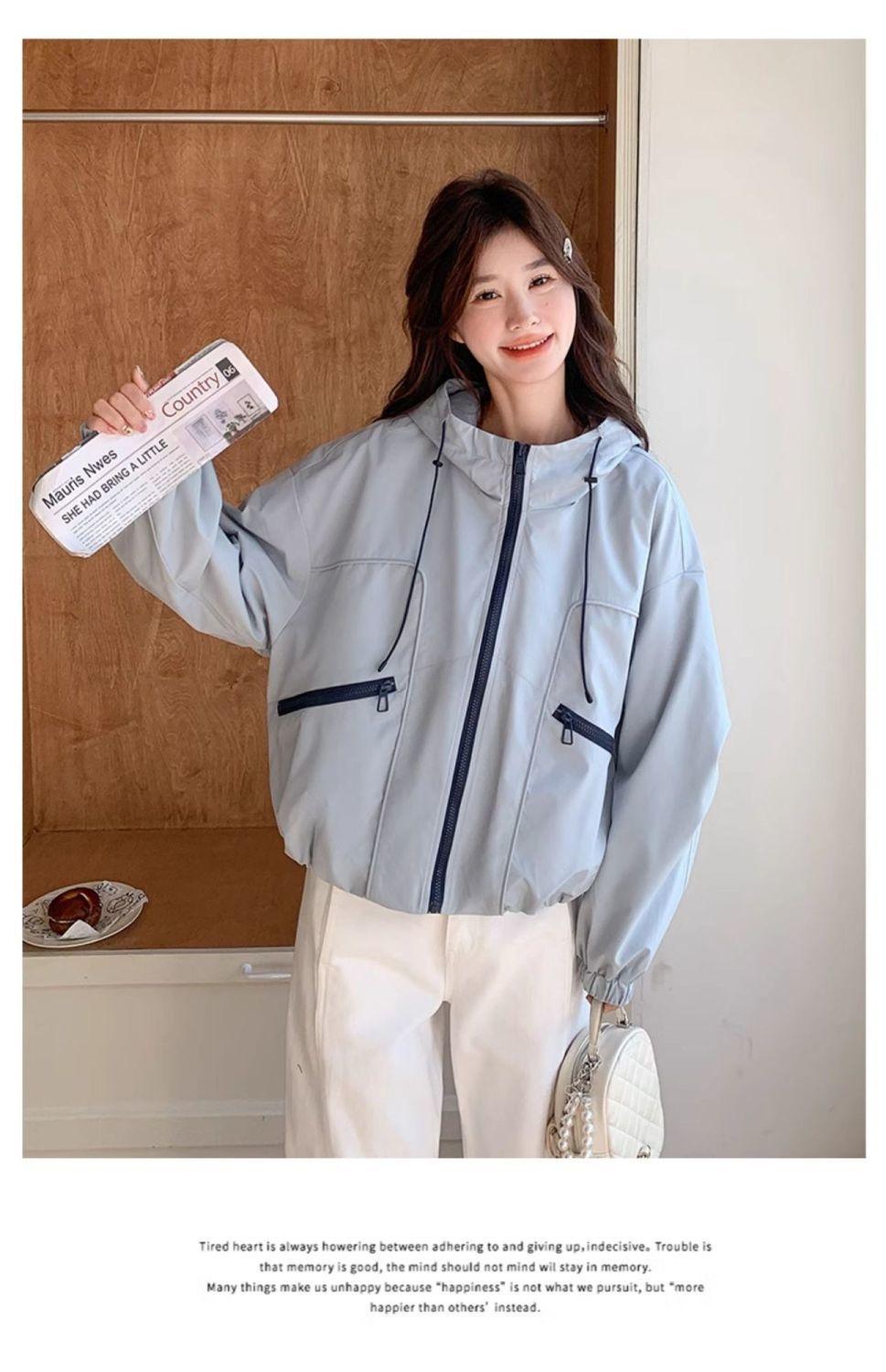 Nueva Chaqueta Cortavientos para Mujer Corta Petite Parka Ajuste Holgado Chaqueta de Ropa de Trabajo Top con Capucha Estilo Lazy