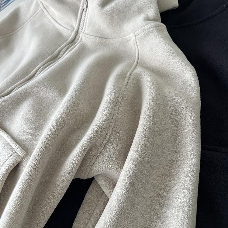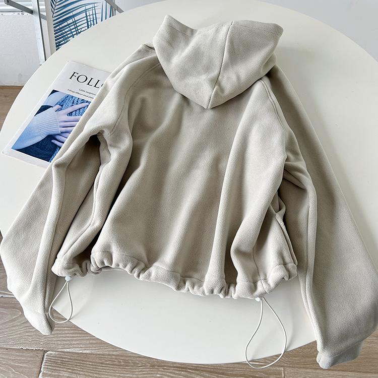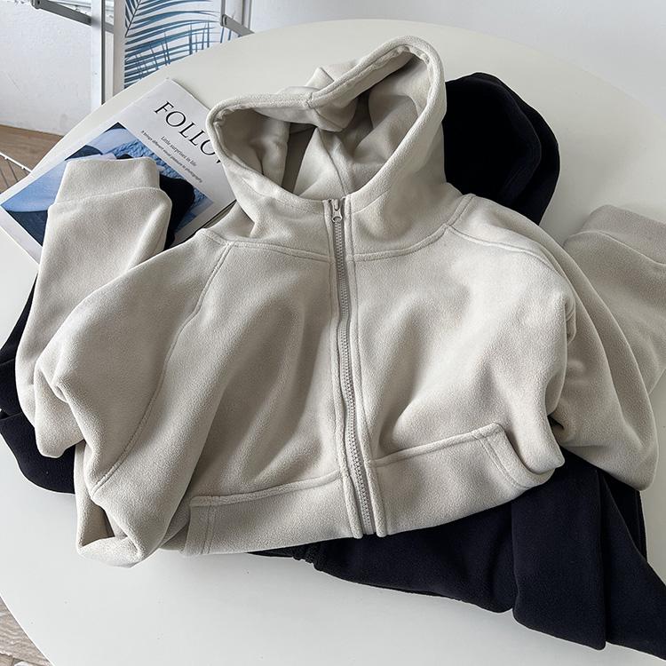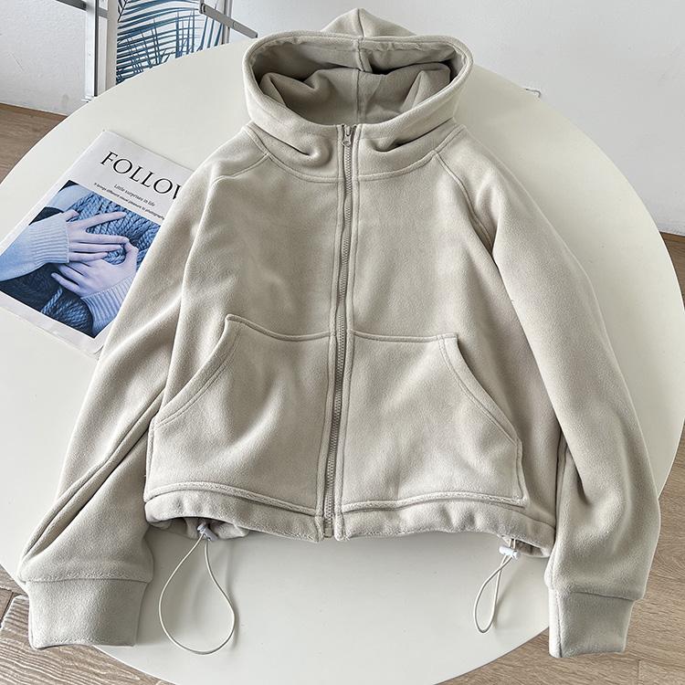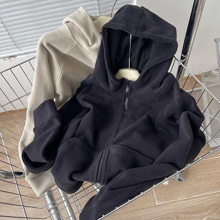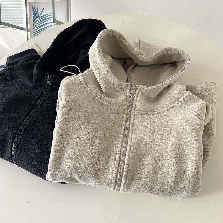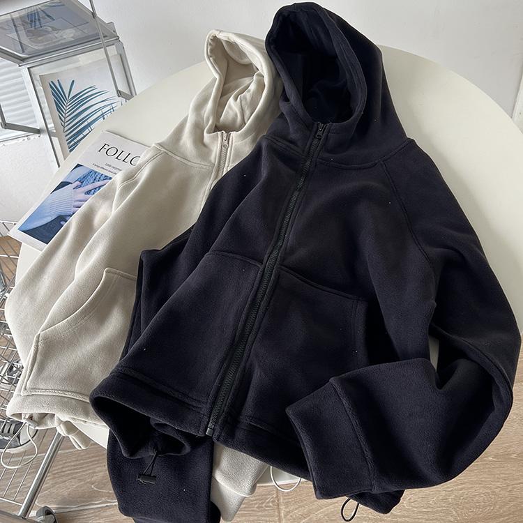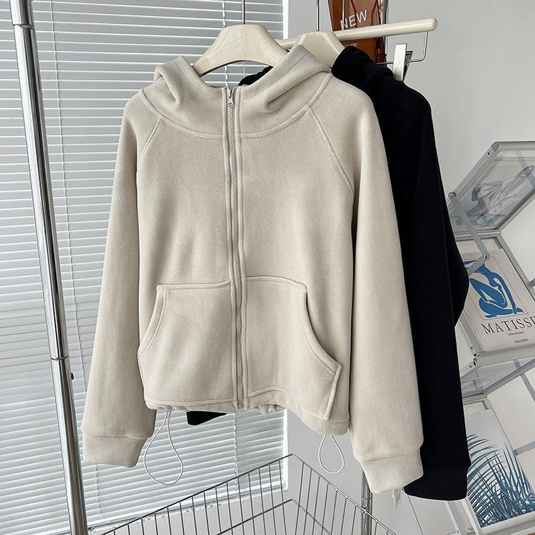 Compra Suéter con capucha y forro polar grueso para mujer, abrigo holgado de otoño e invierno con cremallera, cárdigan informal que combina con todo, top moderno al por mayor en Joom.pro