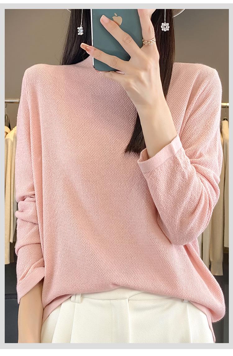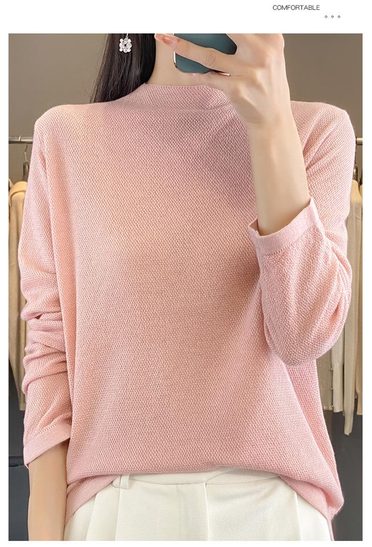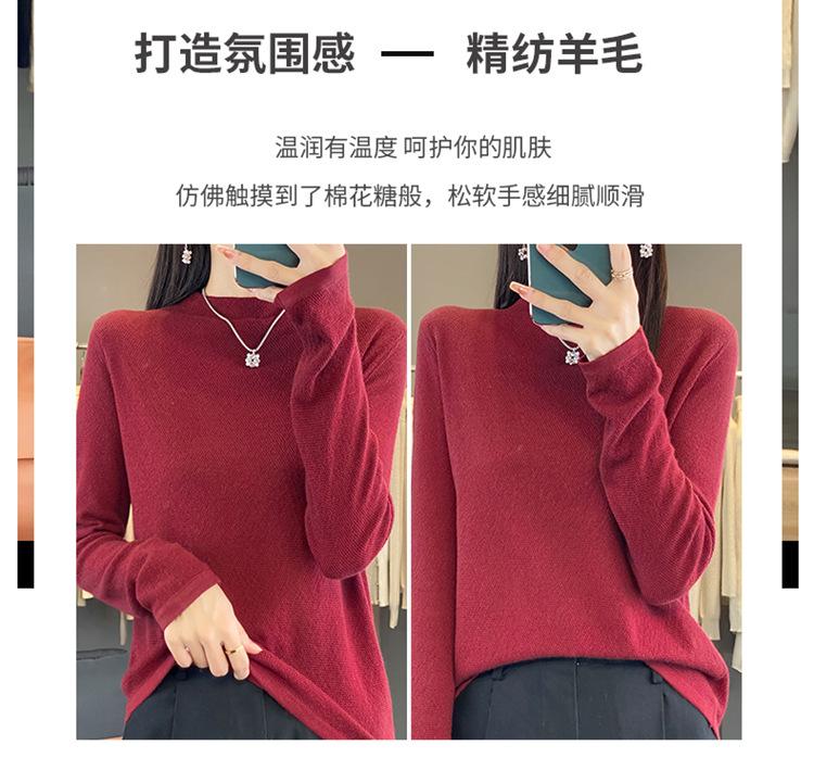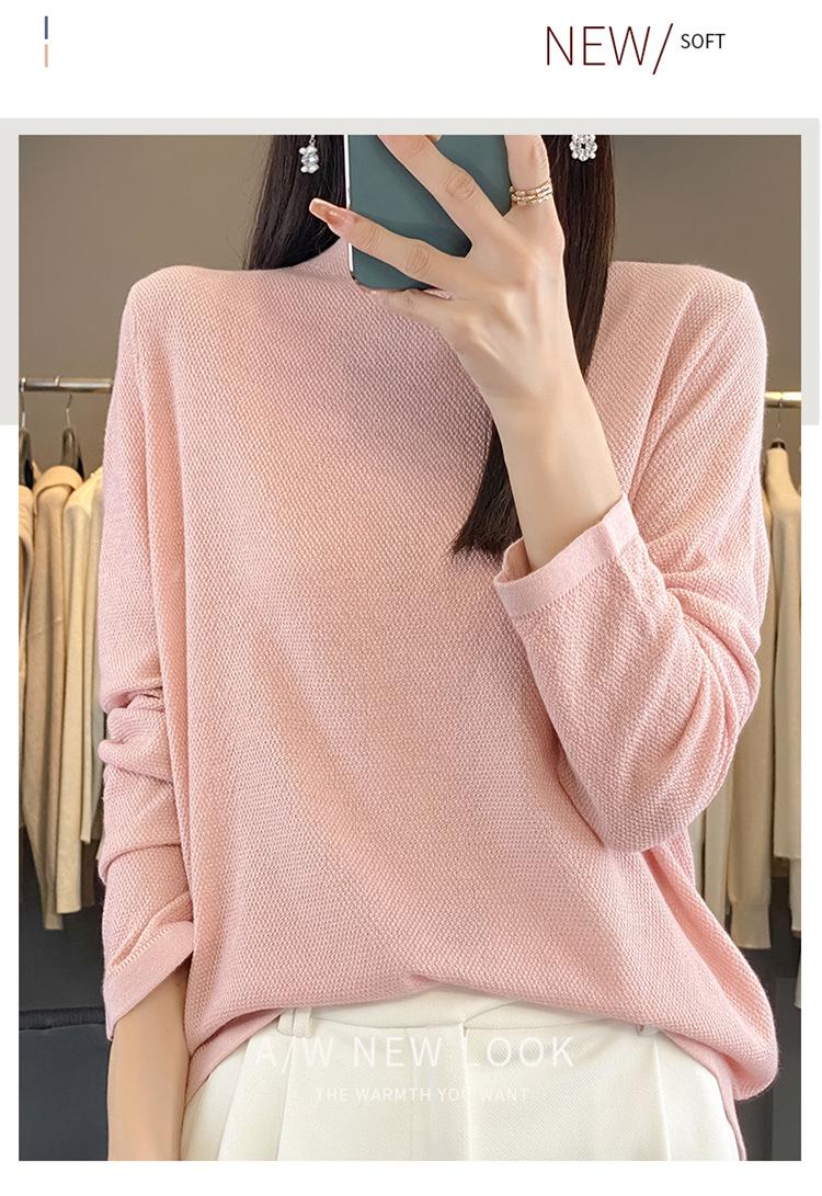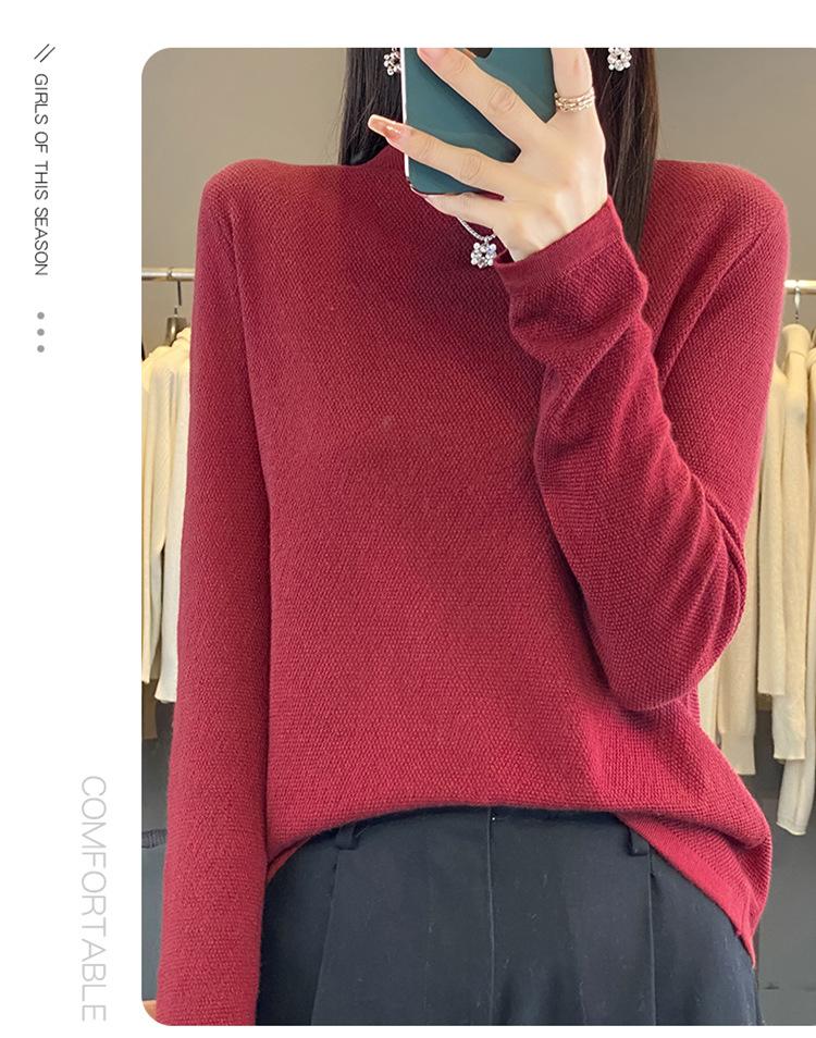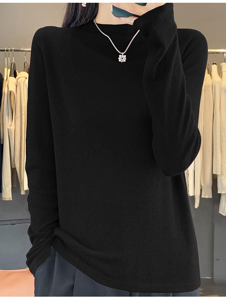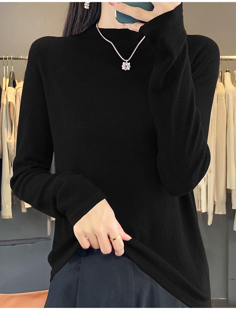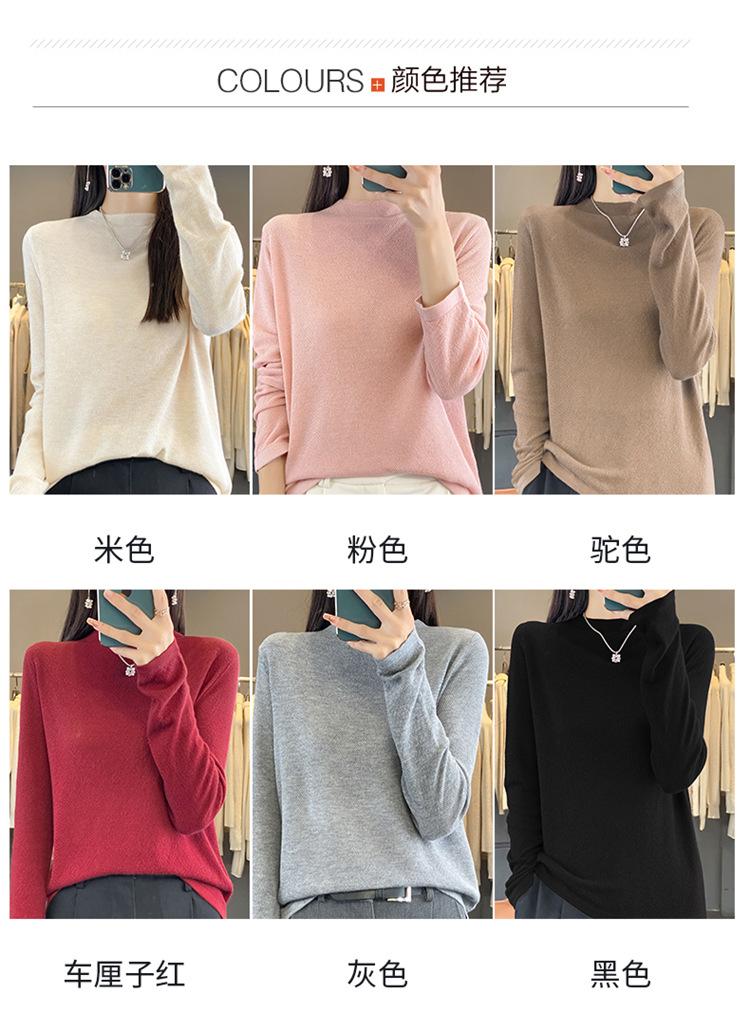 Suéter de lana peinada de cuello medio alto y manga larga para mujer, otoño e invierno, nuevo suéter de color sólido, camisa base, parte superior interior suelta