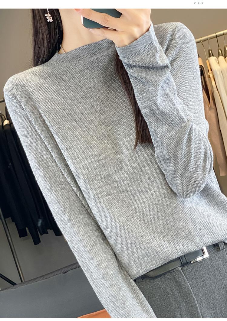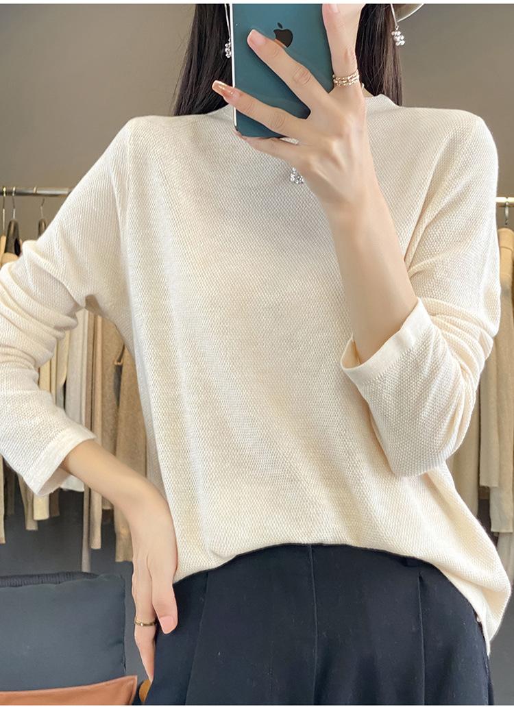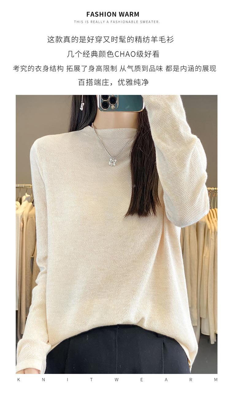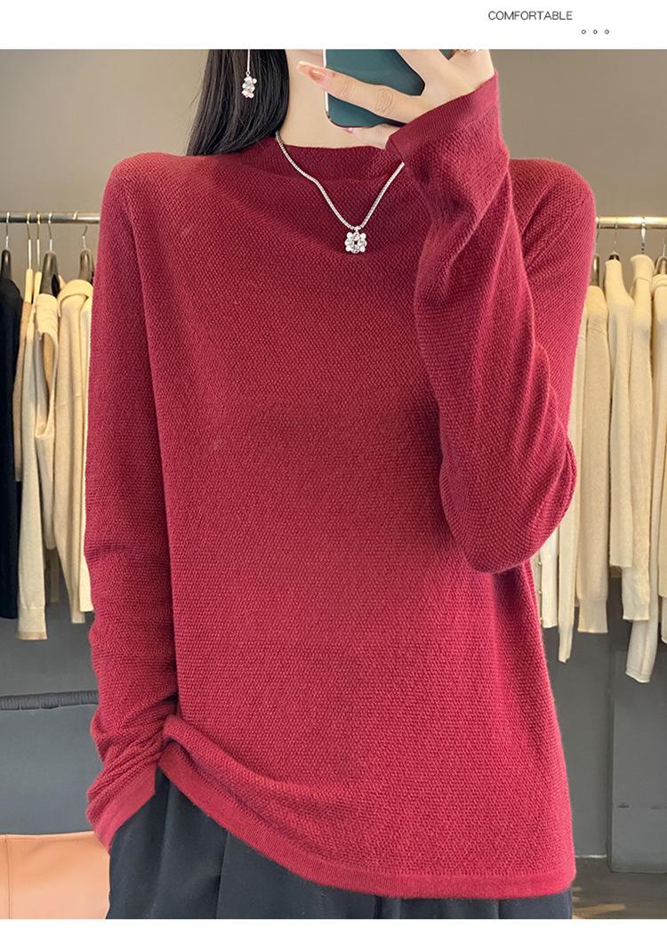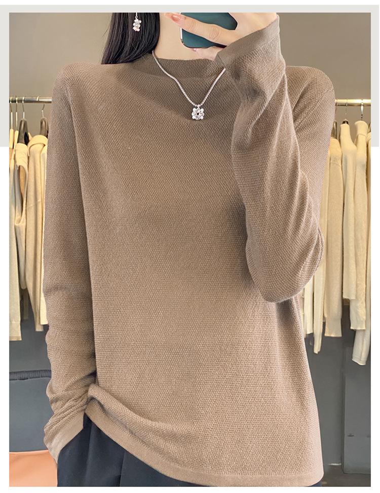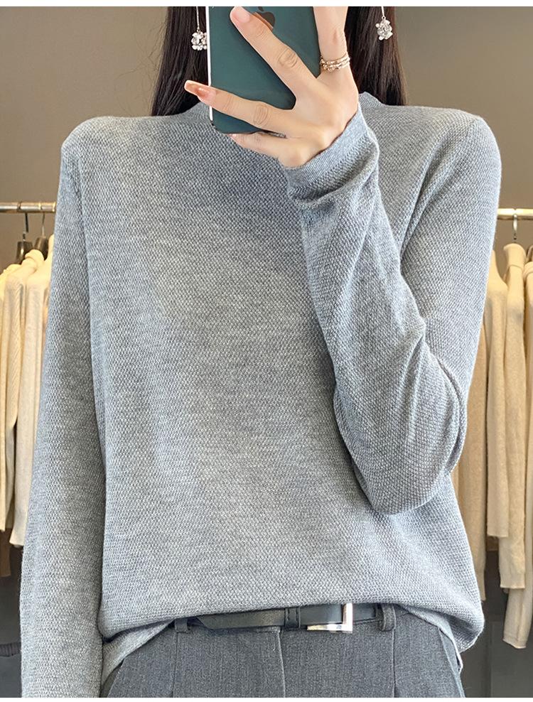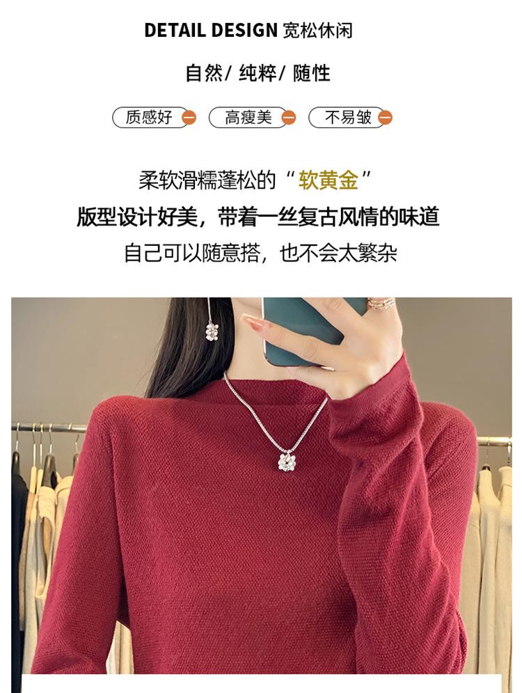 Suéter de lana peinada de cuello medio alto y manga larga para mujer, otoño e invierno, nuevo suéter de color sólido, camisa base, parte superior interior suelta