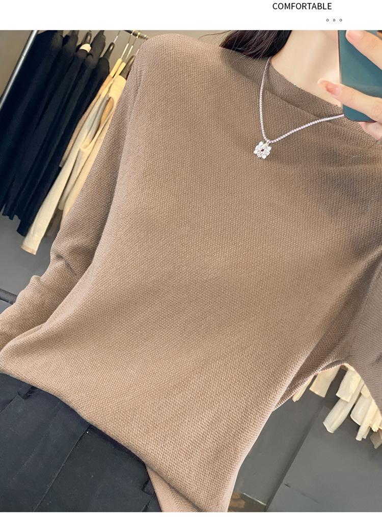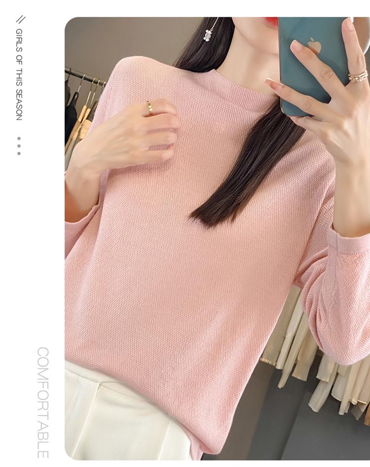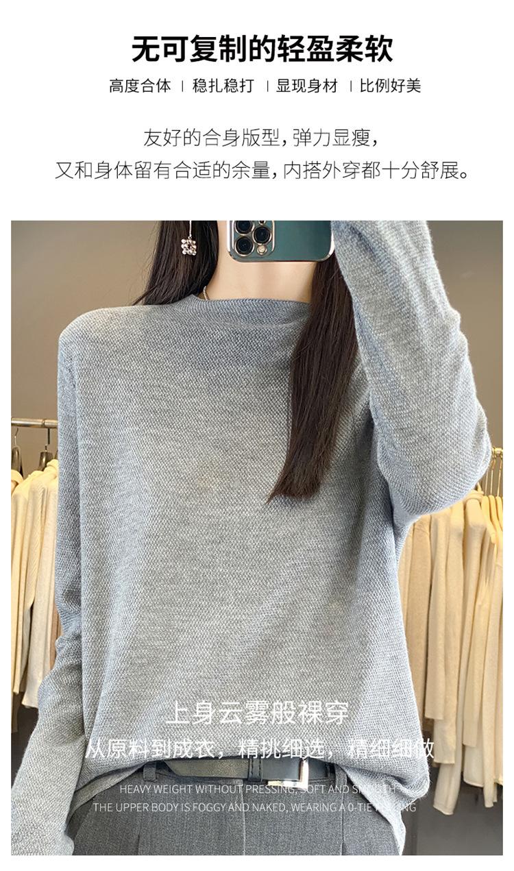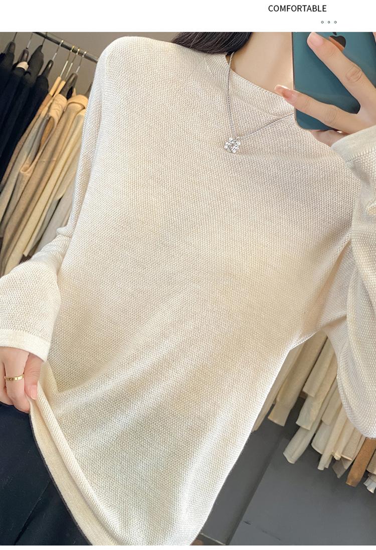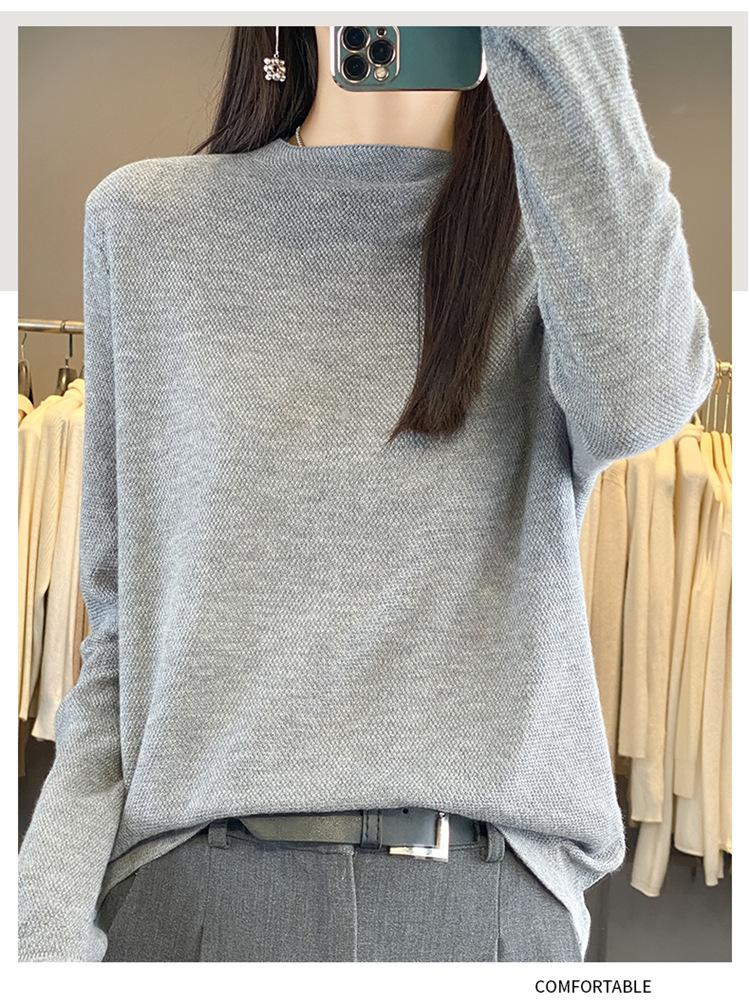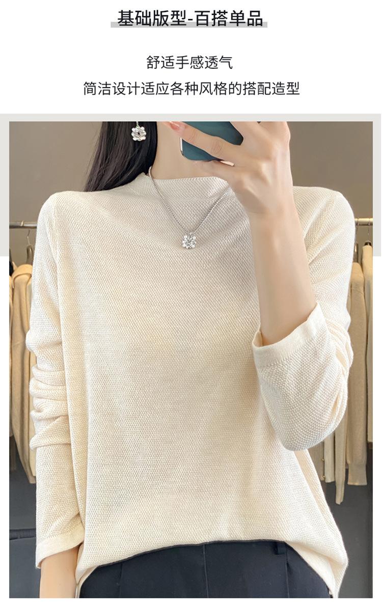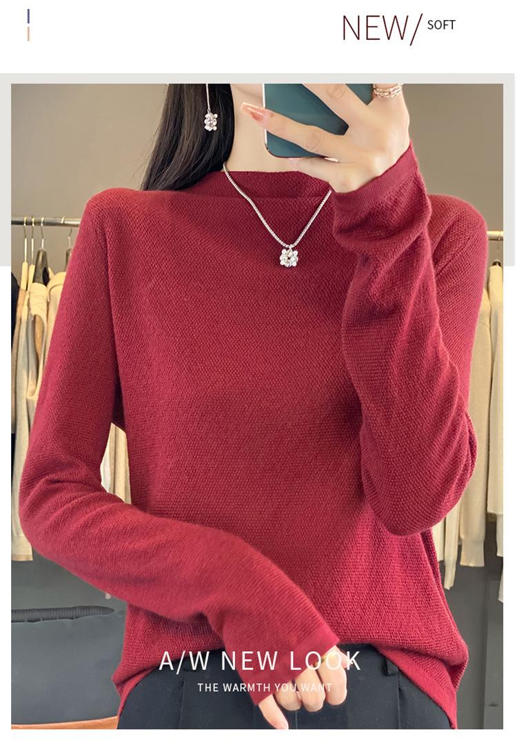 Suéter de lana peinada de cuello medio alto y manga larga para mujer, otoño e invierno, nuevo suéter de color sólido, camisa base, parte superior interior suelta