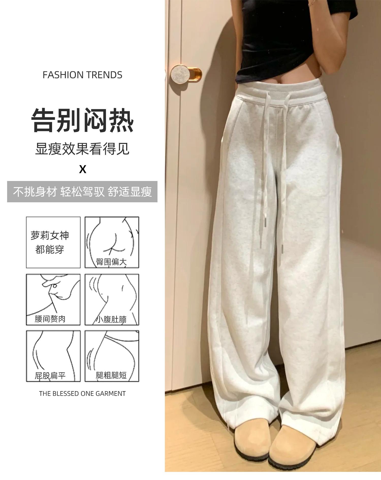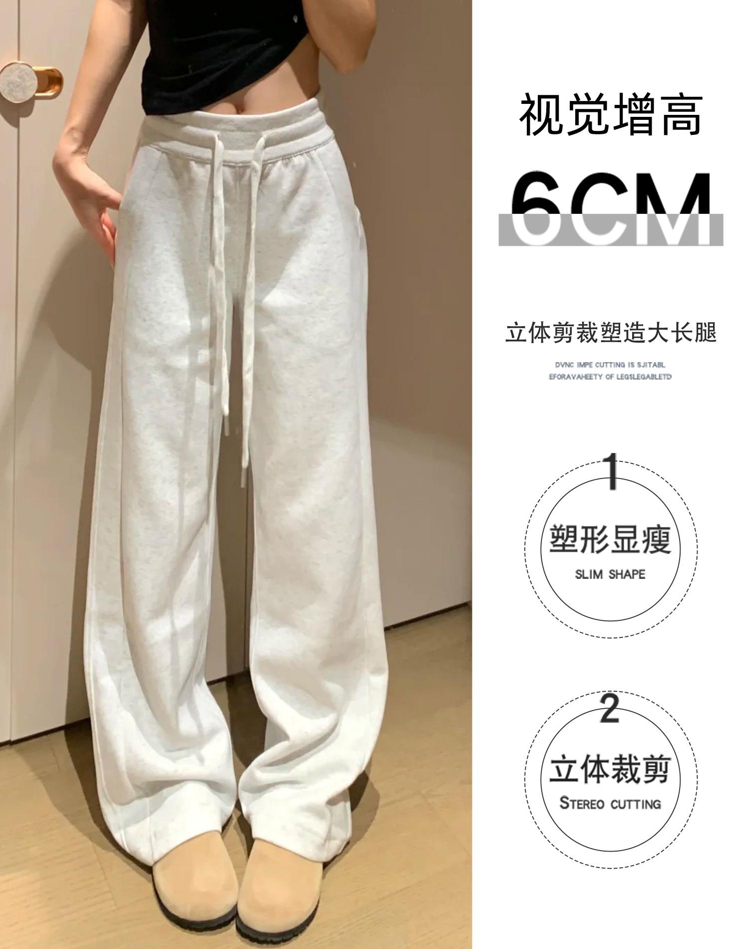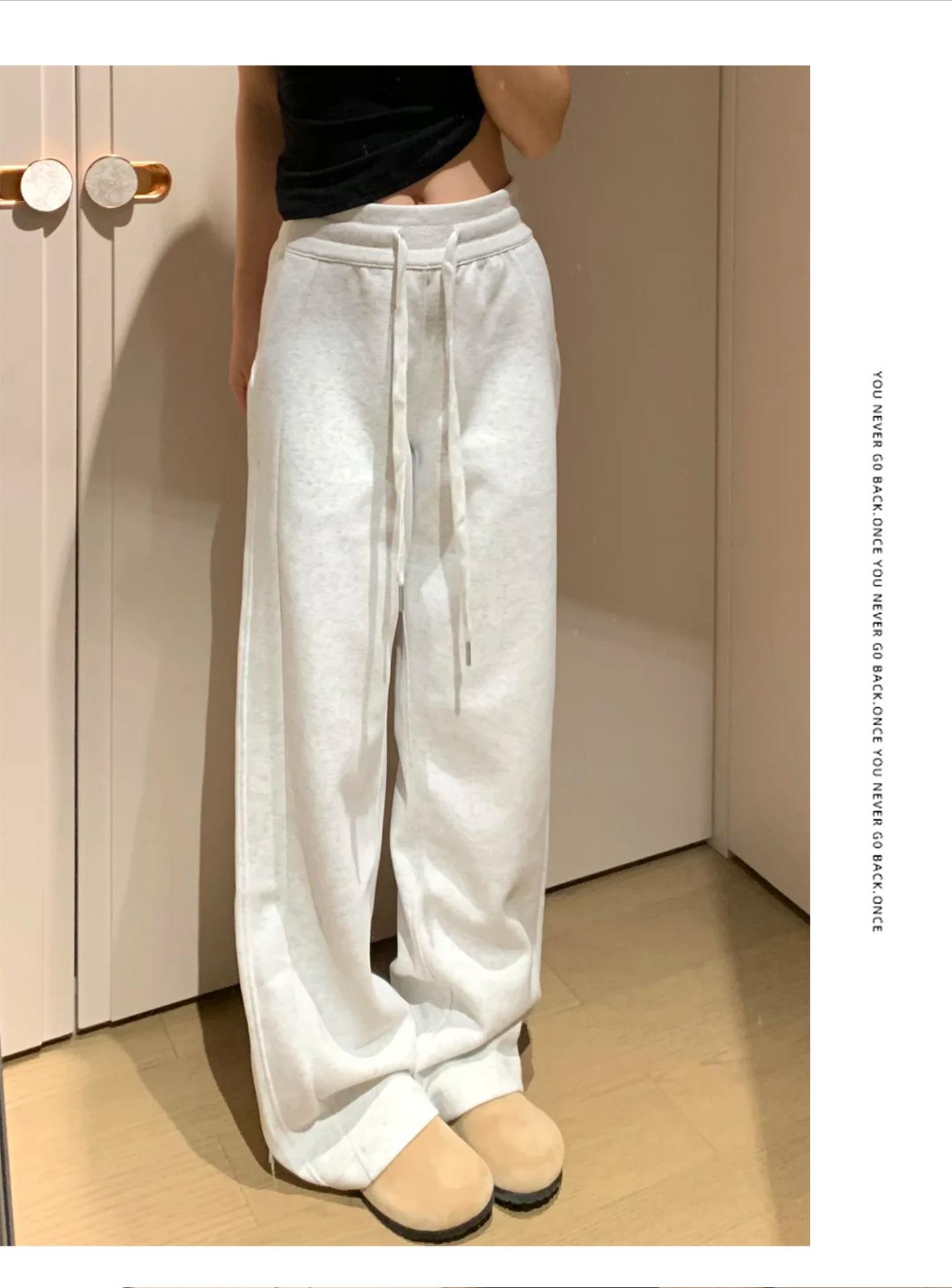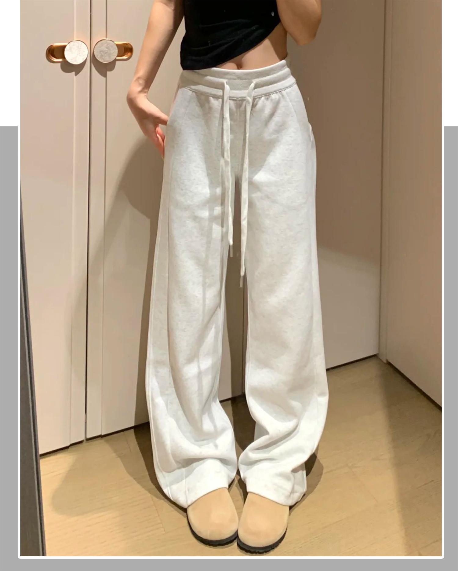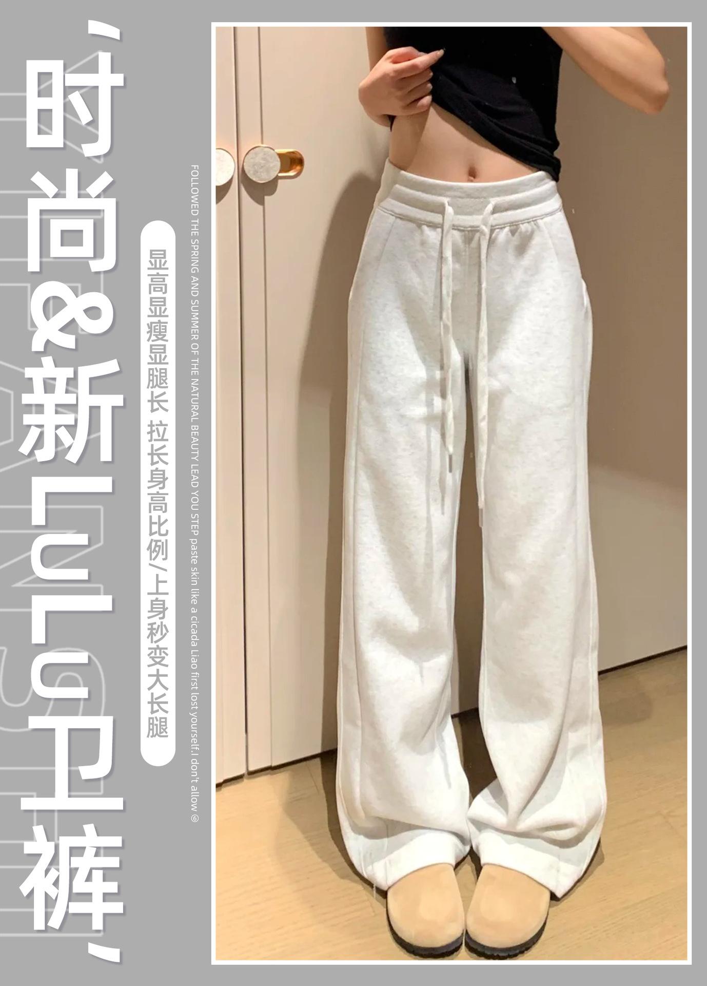 Pantalones deportivos blancos-grises estilo lulu para mujer otoño 2025 nuevos de talle alto adelgazantes petite de pierna estrecha y pierna ancha
