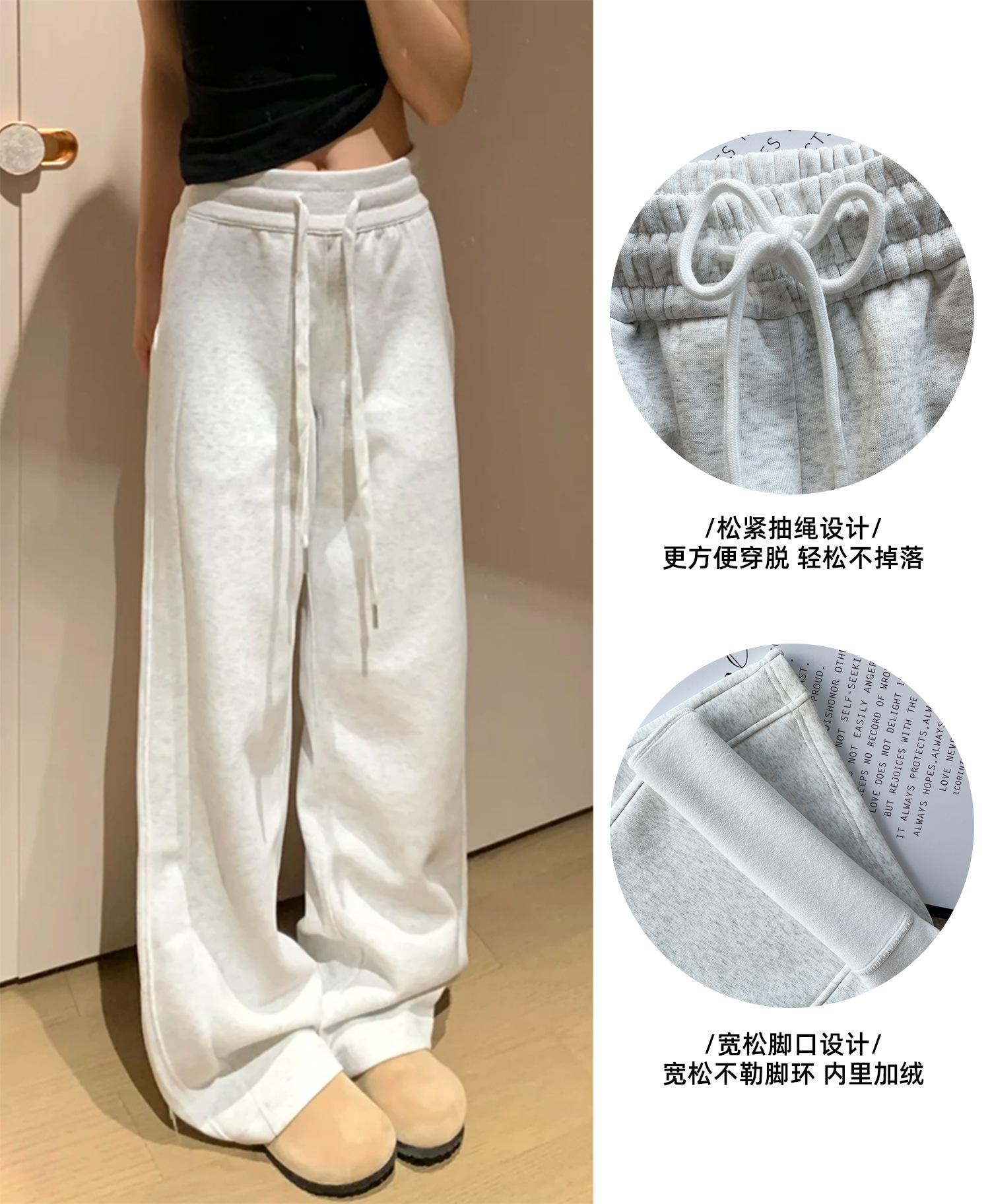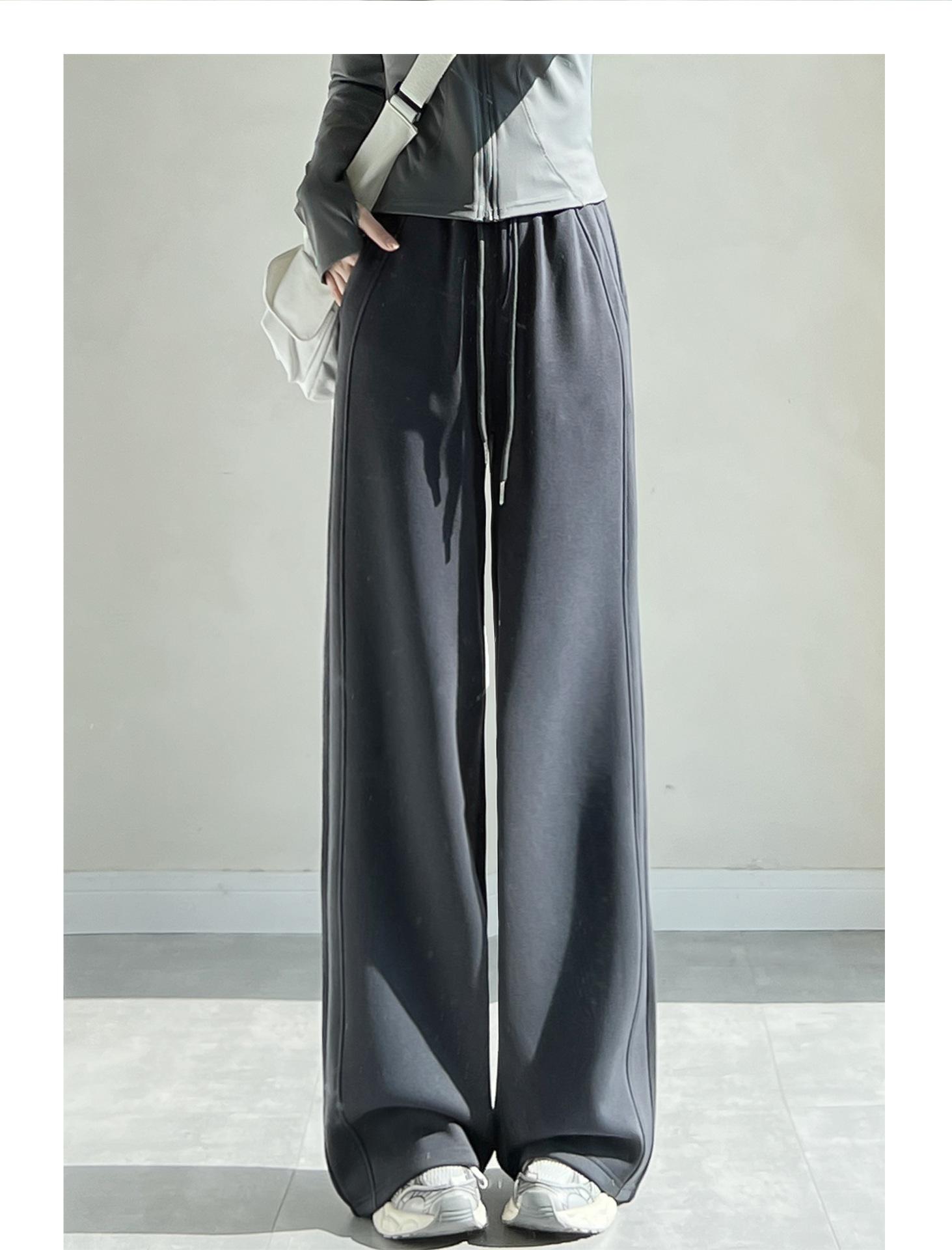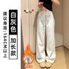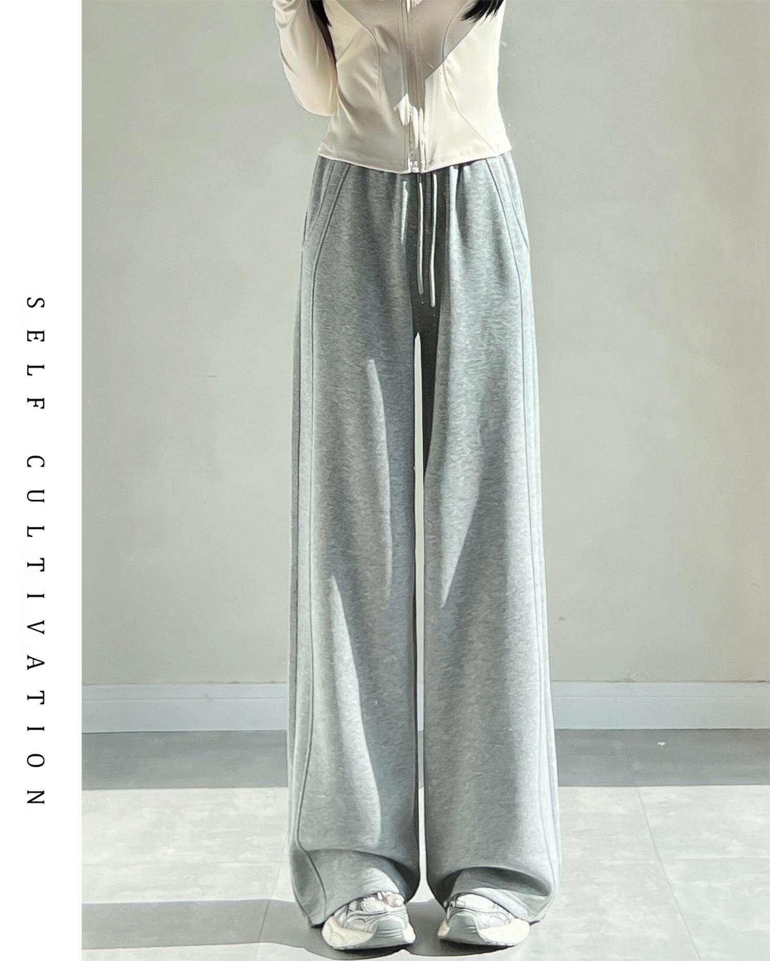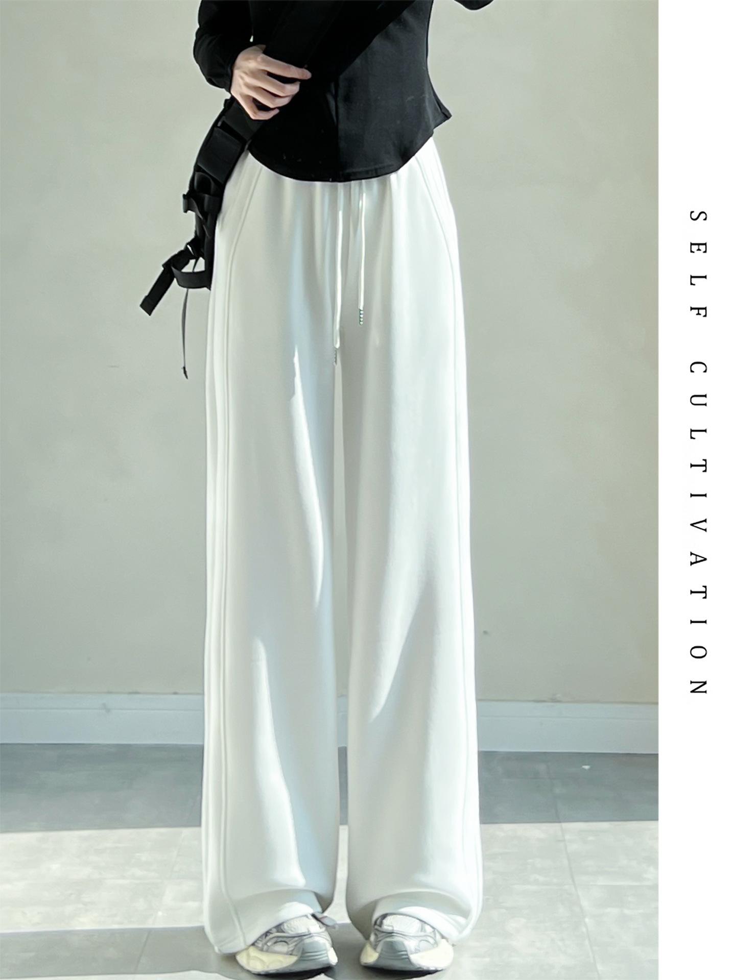 Pantalones deportivos blancos-grises estilo lulu para mujer otoño 2025 nuevos de talle alto adelgazantes petite de pierna estrecha y pierna ancha