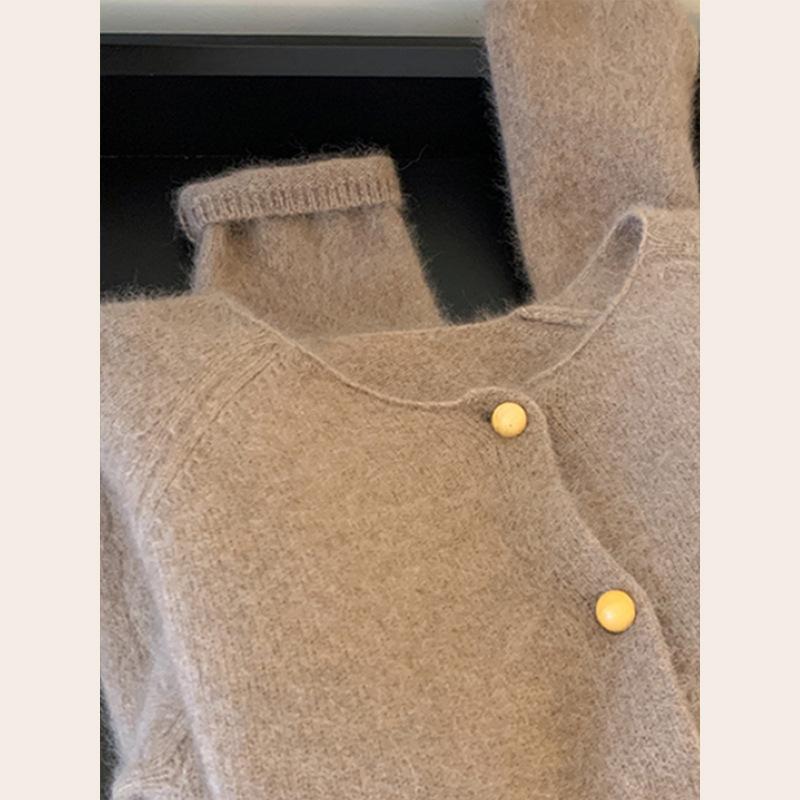 Estilo Coreano Temperamento Viento Perezoso Conjunto de Principios de Otoño Top Cárdigan de Punto de Terciopelo de Mapache Abrigo Suéter Exterior Mujeres 2025
