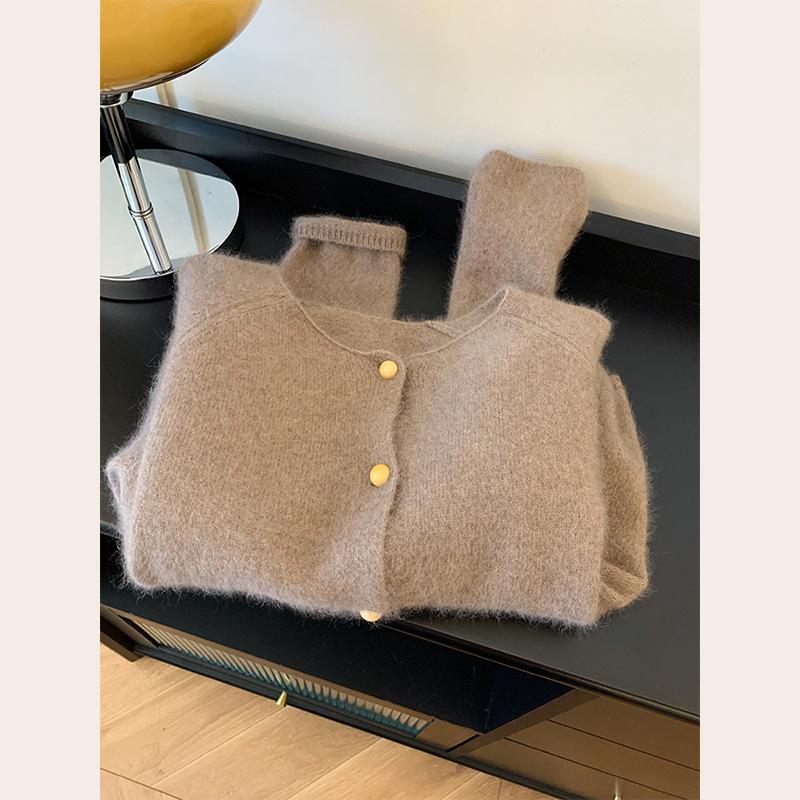 Cárdigan de punto de mapache estilo coreano holgado para mujer 2025 otoño e invierno nuevo abrigo suéter adelgazante marea