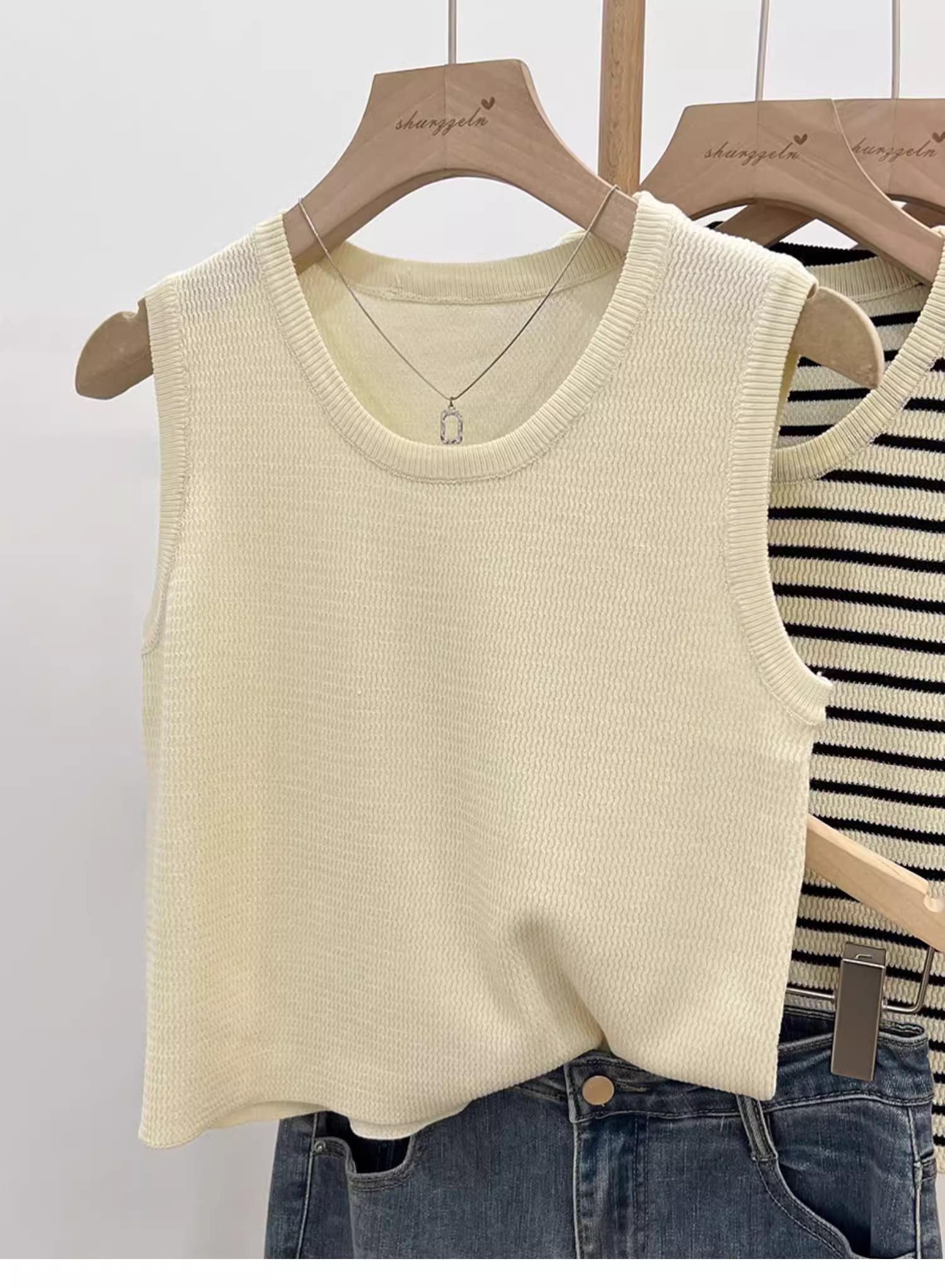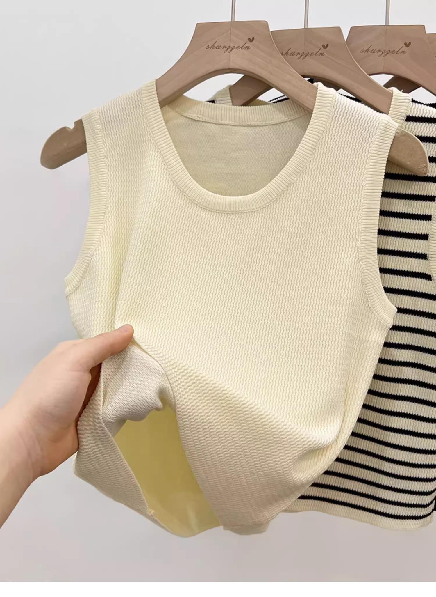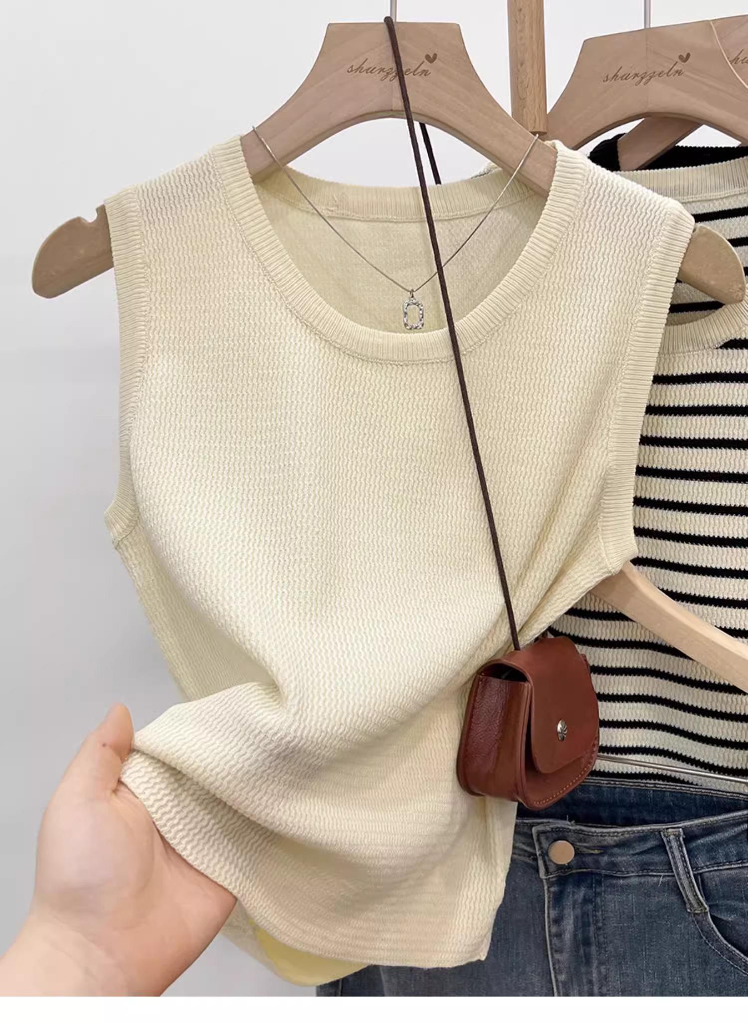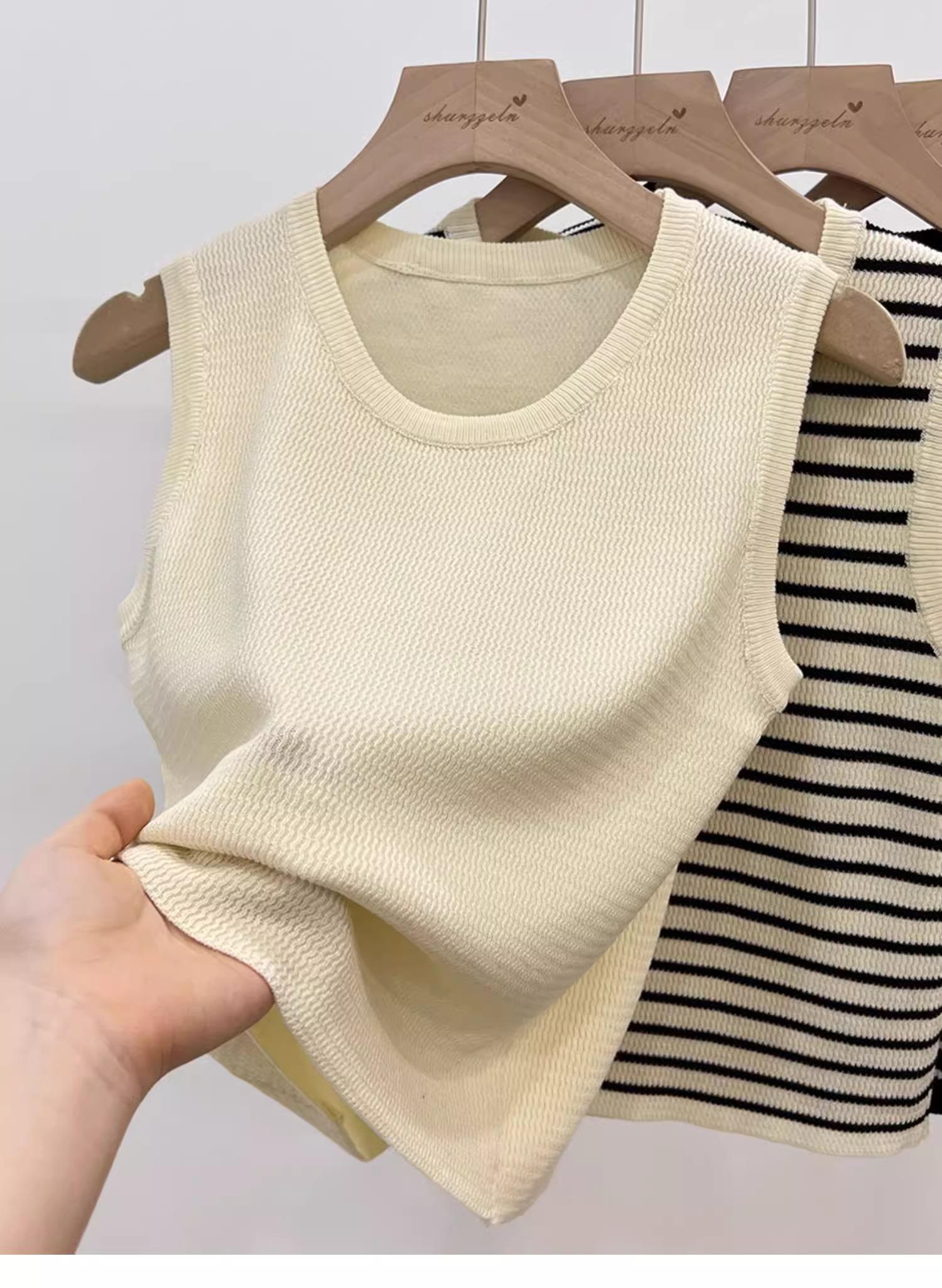 Chaleco de Mujer Ropa Exterior 2025 Verano Nuevo Estilo Top de Tirantes Pequeños sin Mangas con Camiseta Pequeña de Punto Ropa de Mujer