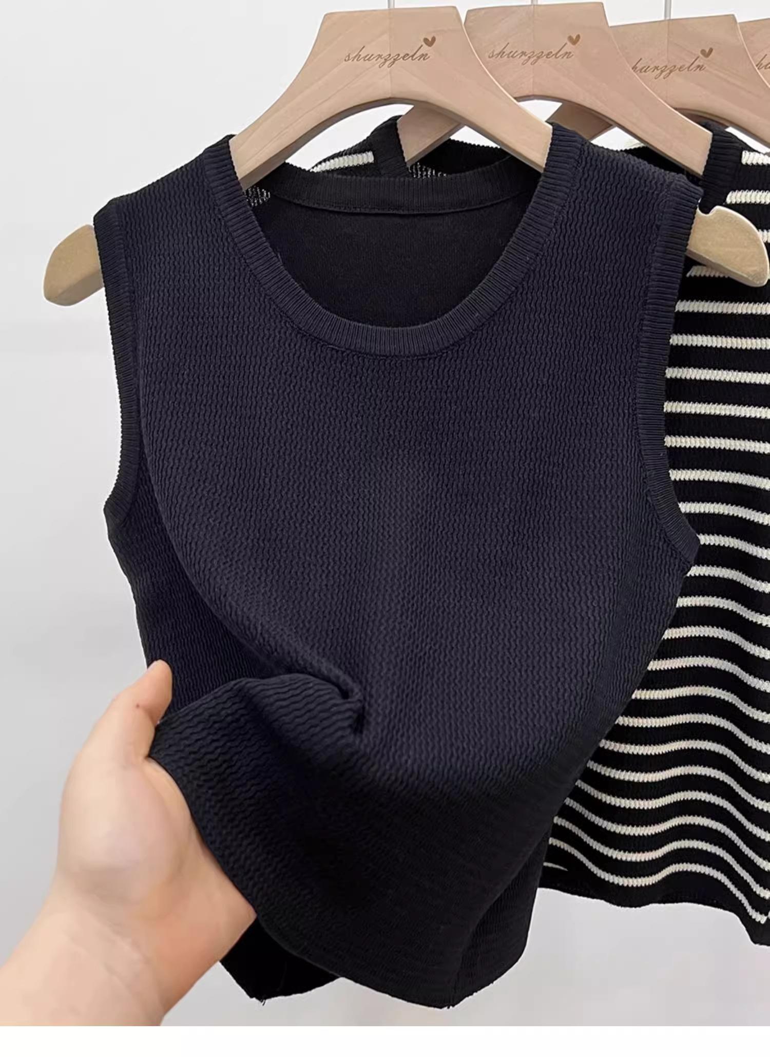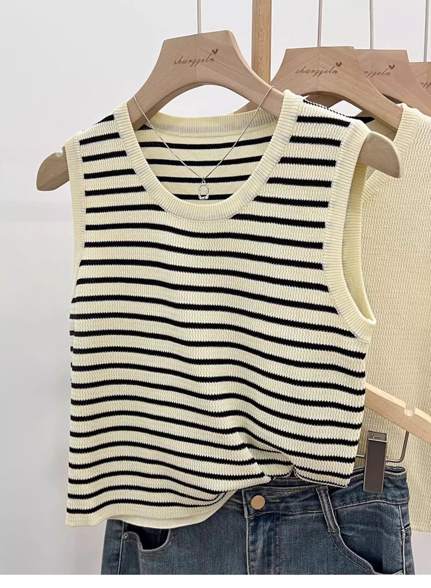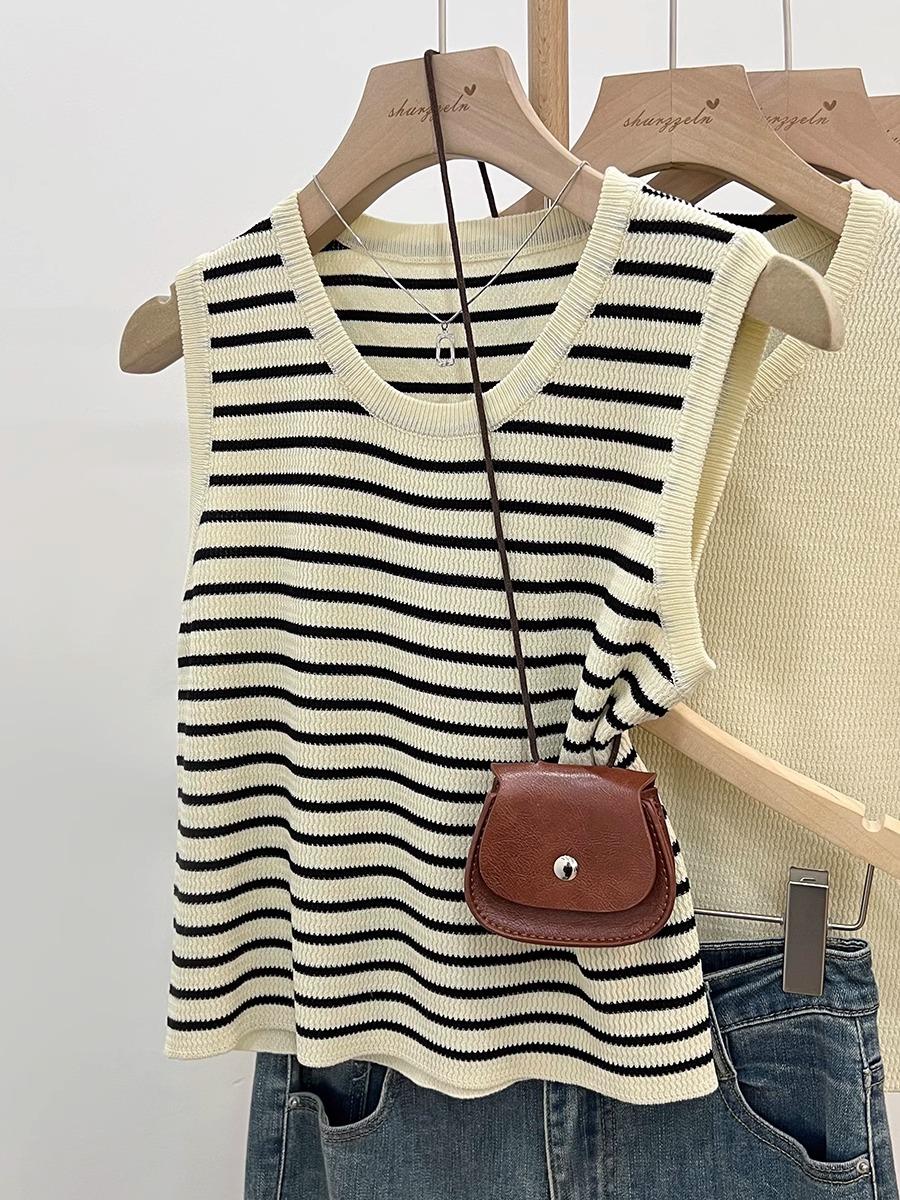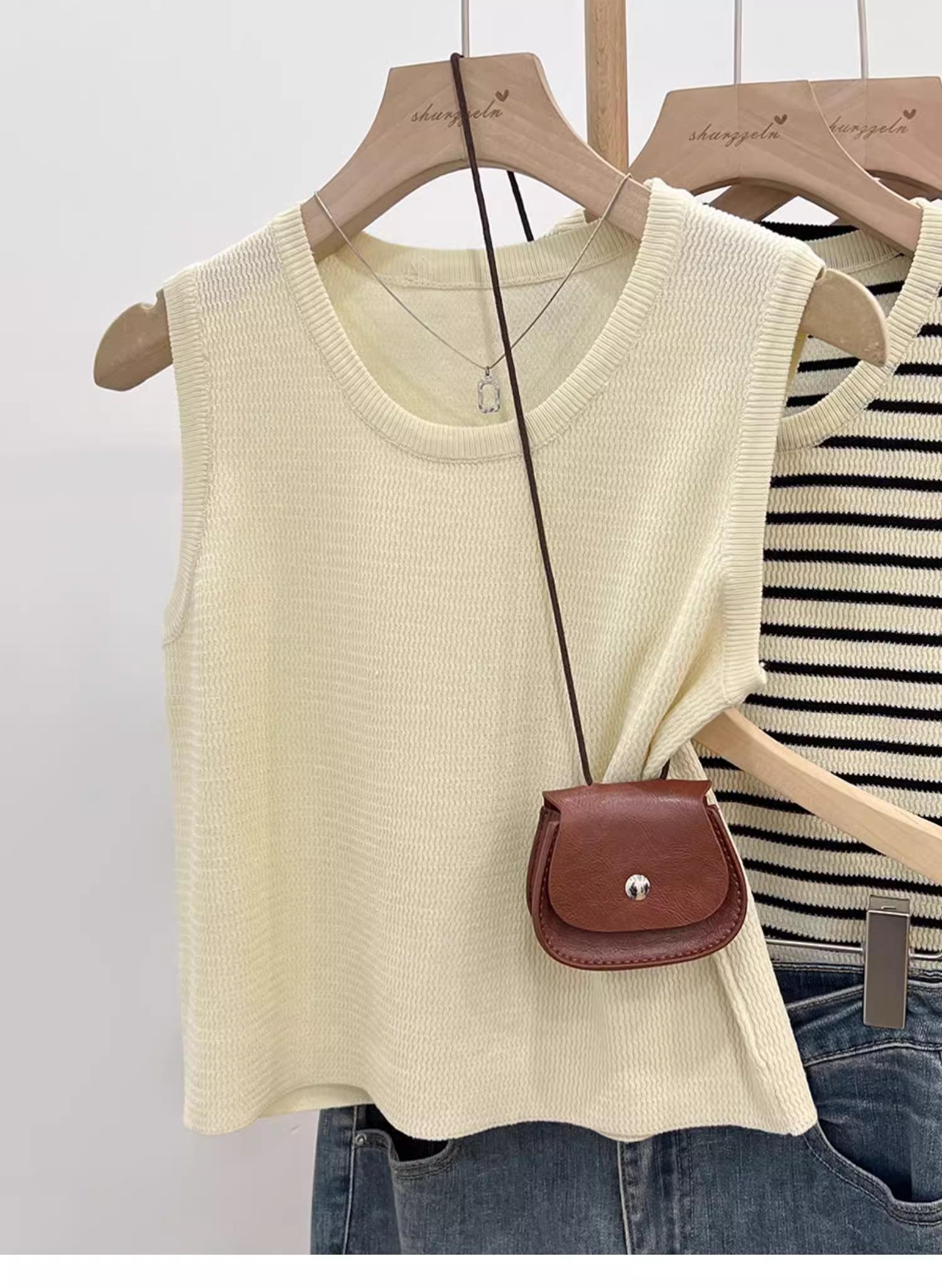 Chaleco de Mujer Ropa Exterior 2025 Verano Nuevo Estilo Top de Tirantes Pequeños sin Mangas con Camiseta Pequeña de Punto Ropa de Mujer
