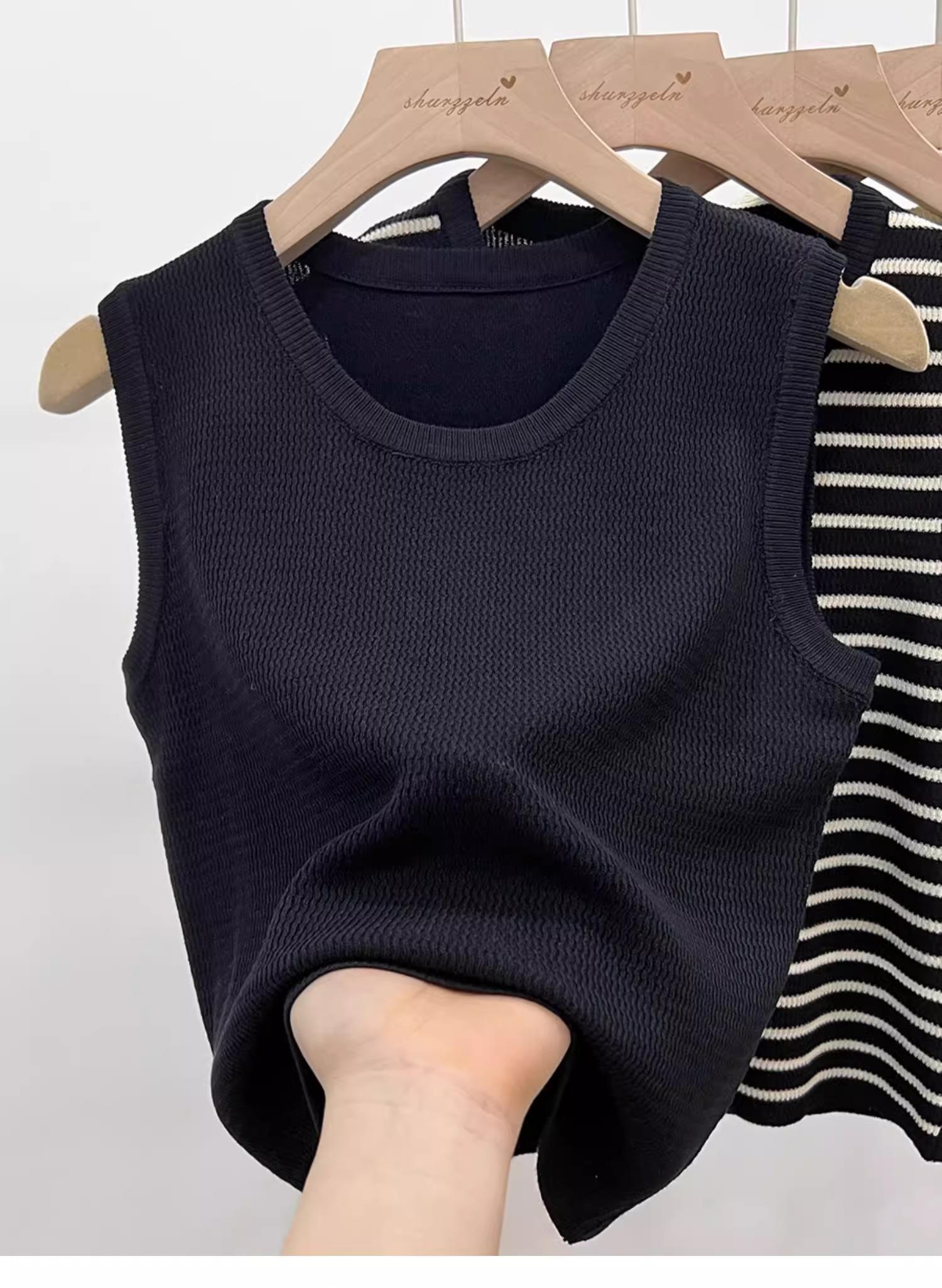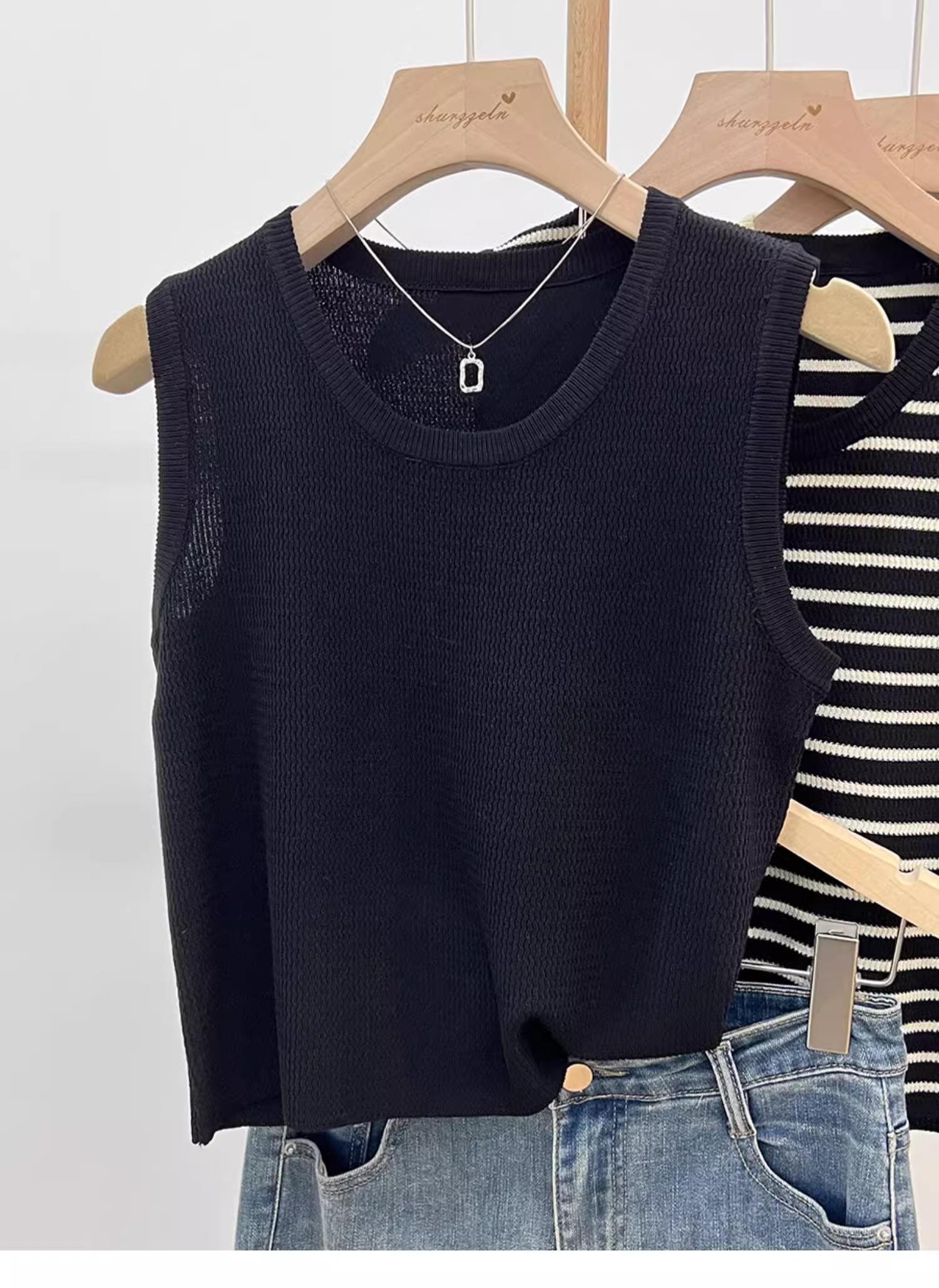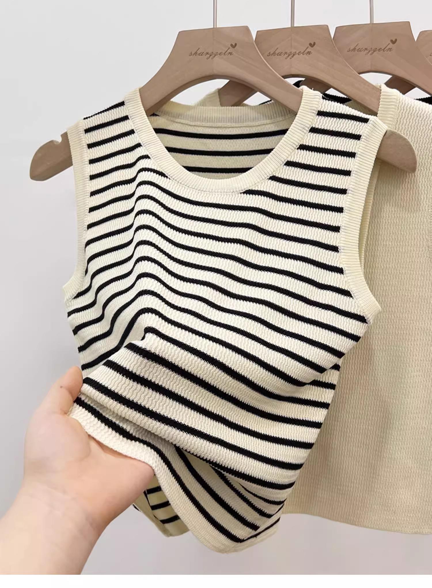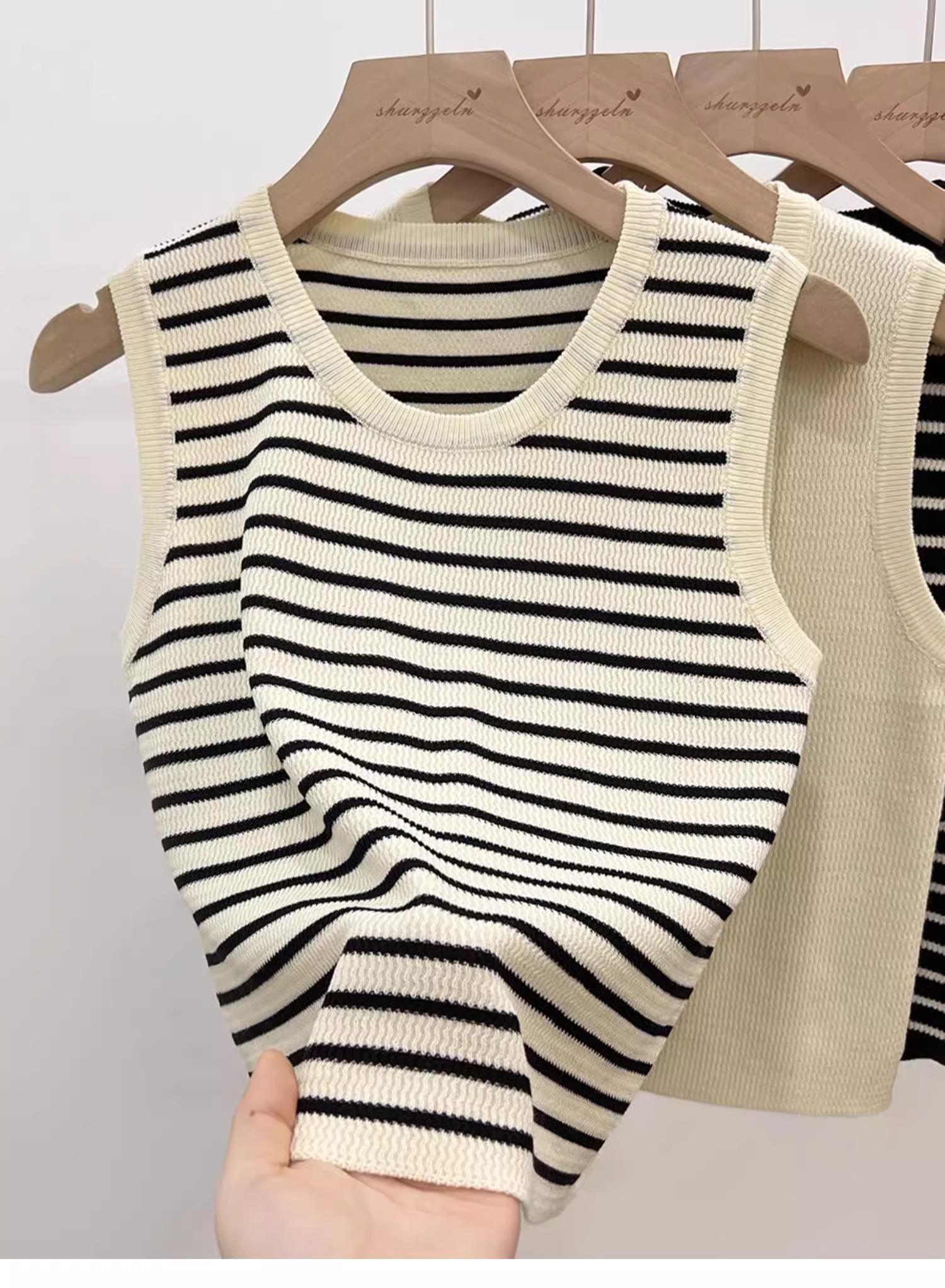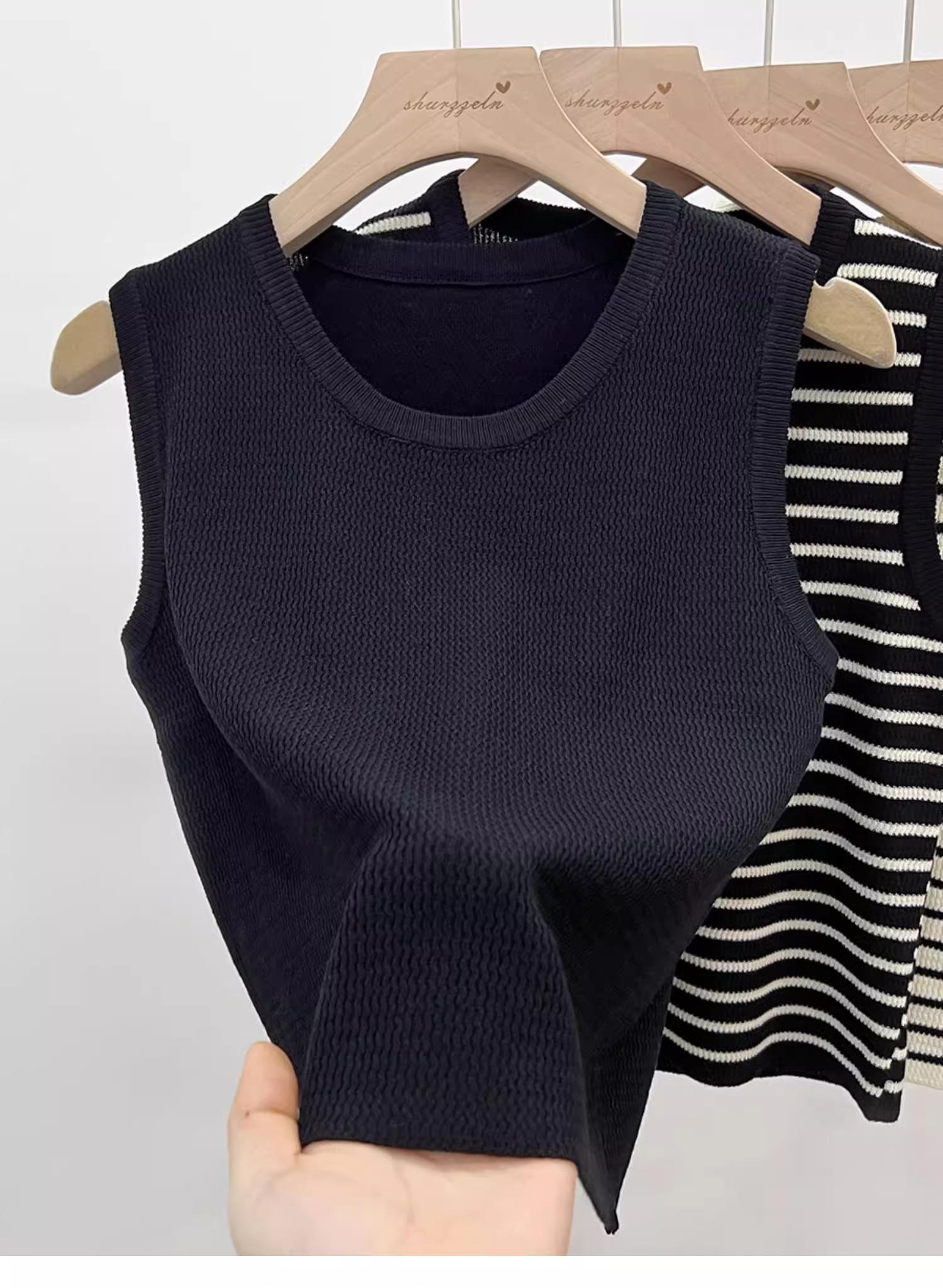 Chaleco de Mujer Ropa Exterior 2025 Verano Nuevo Estilo Top de Tirantes Pequeños sin Mangas con Camiseta Pequeña de Punto Ropa de Mujer