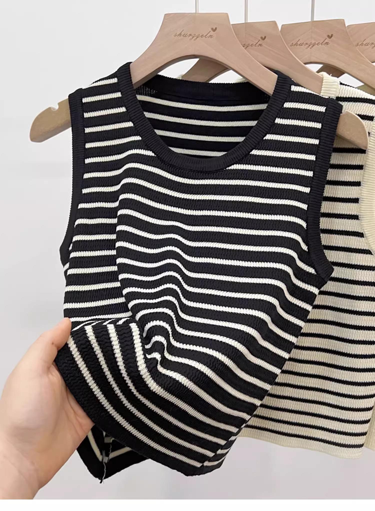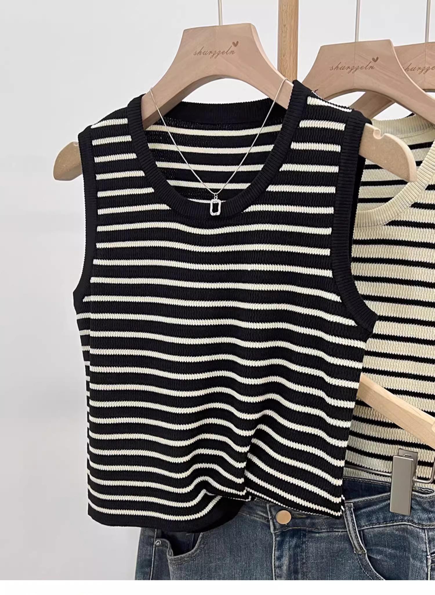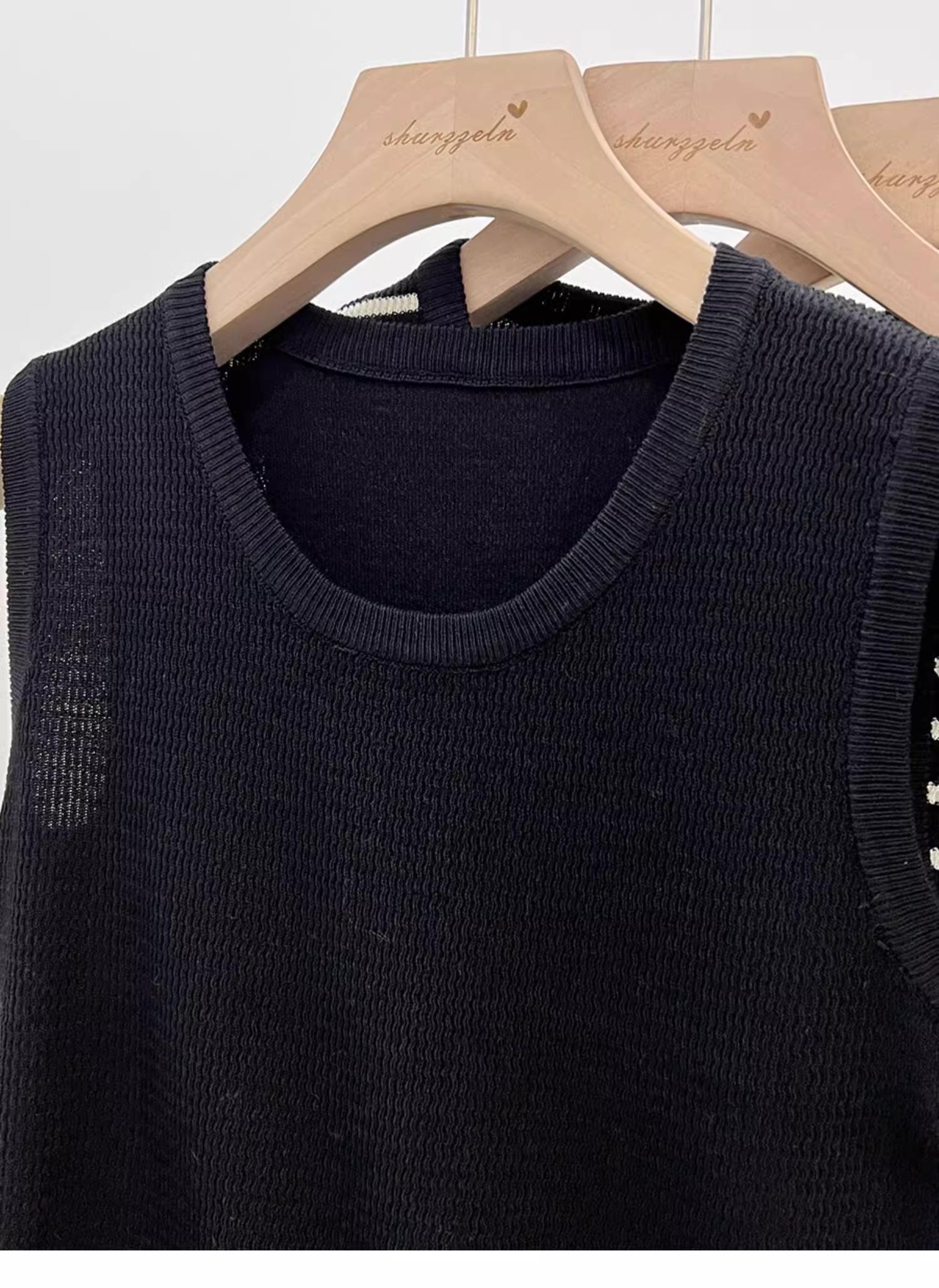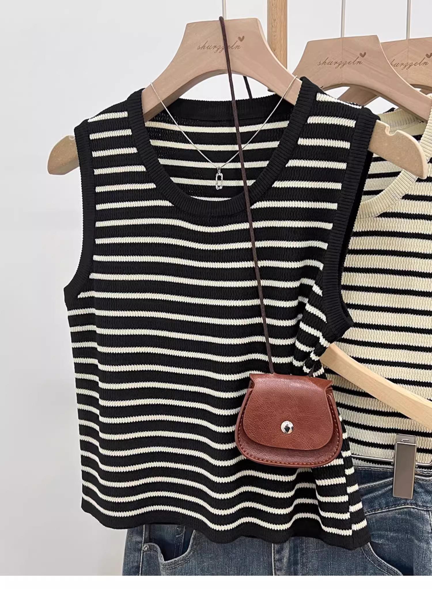 Chaleco de Mujer Ropa Exterior 2025 Verano Nuevo Estilo Top de Tirantes Pequeños sin Mangas con Camiseta Pequeña de Punto Ropa de Mujer