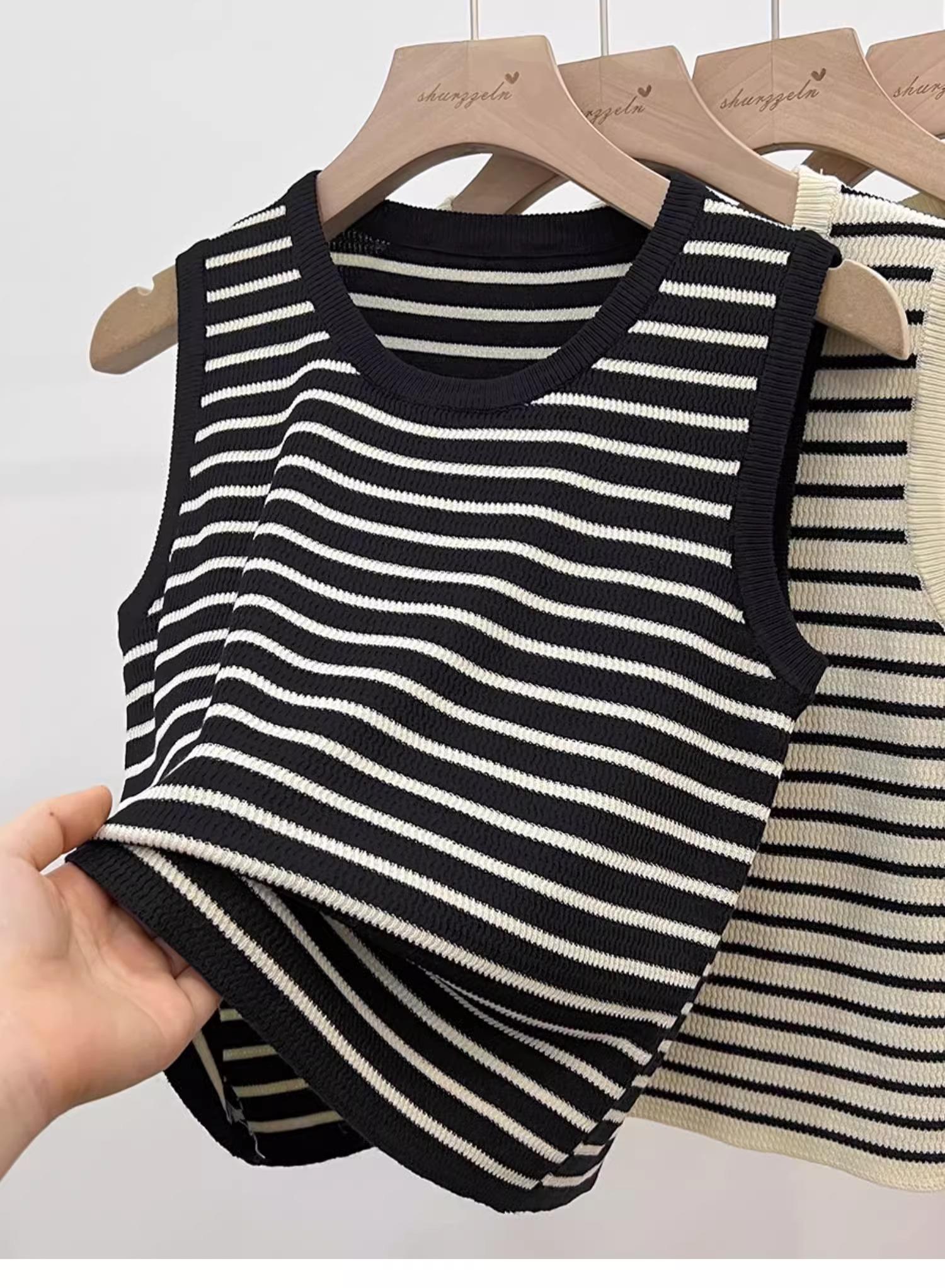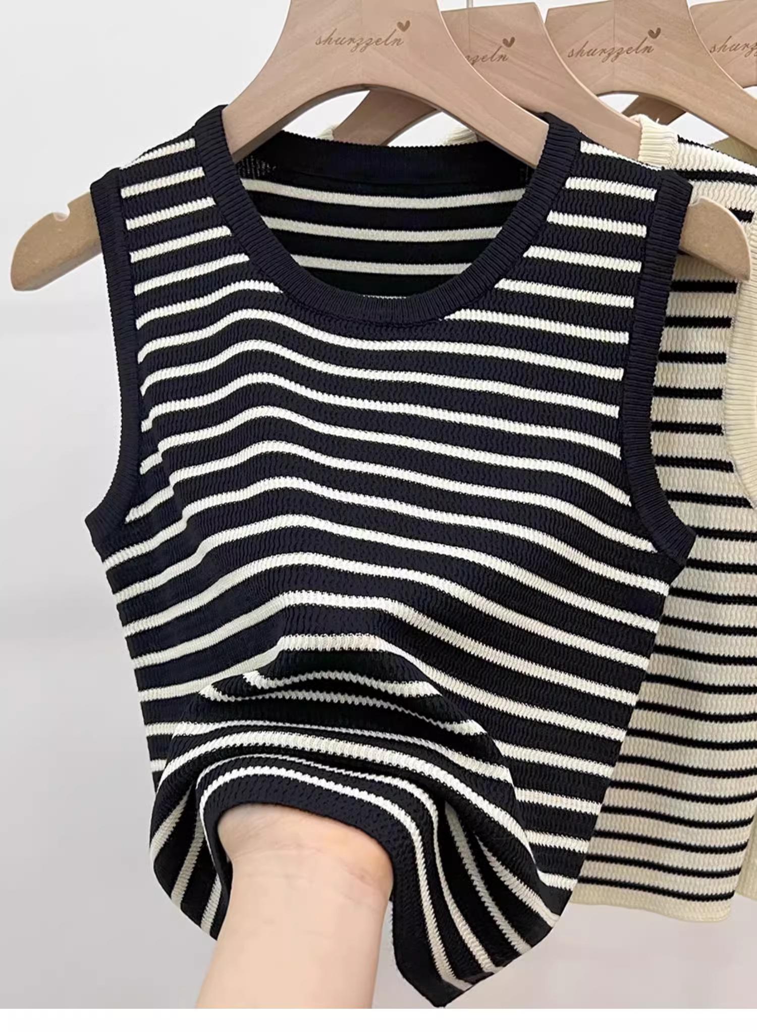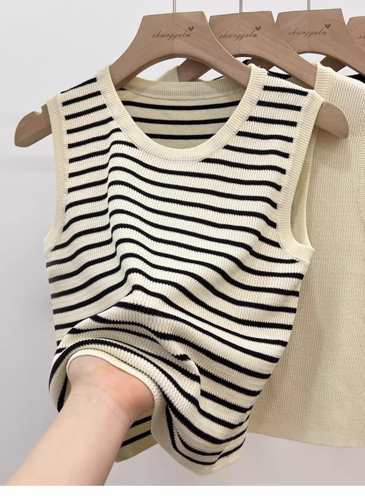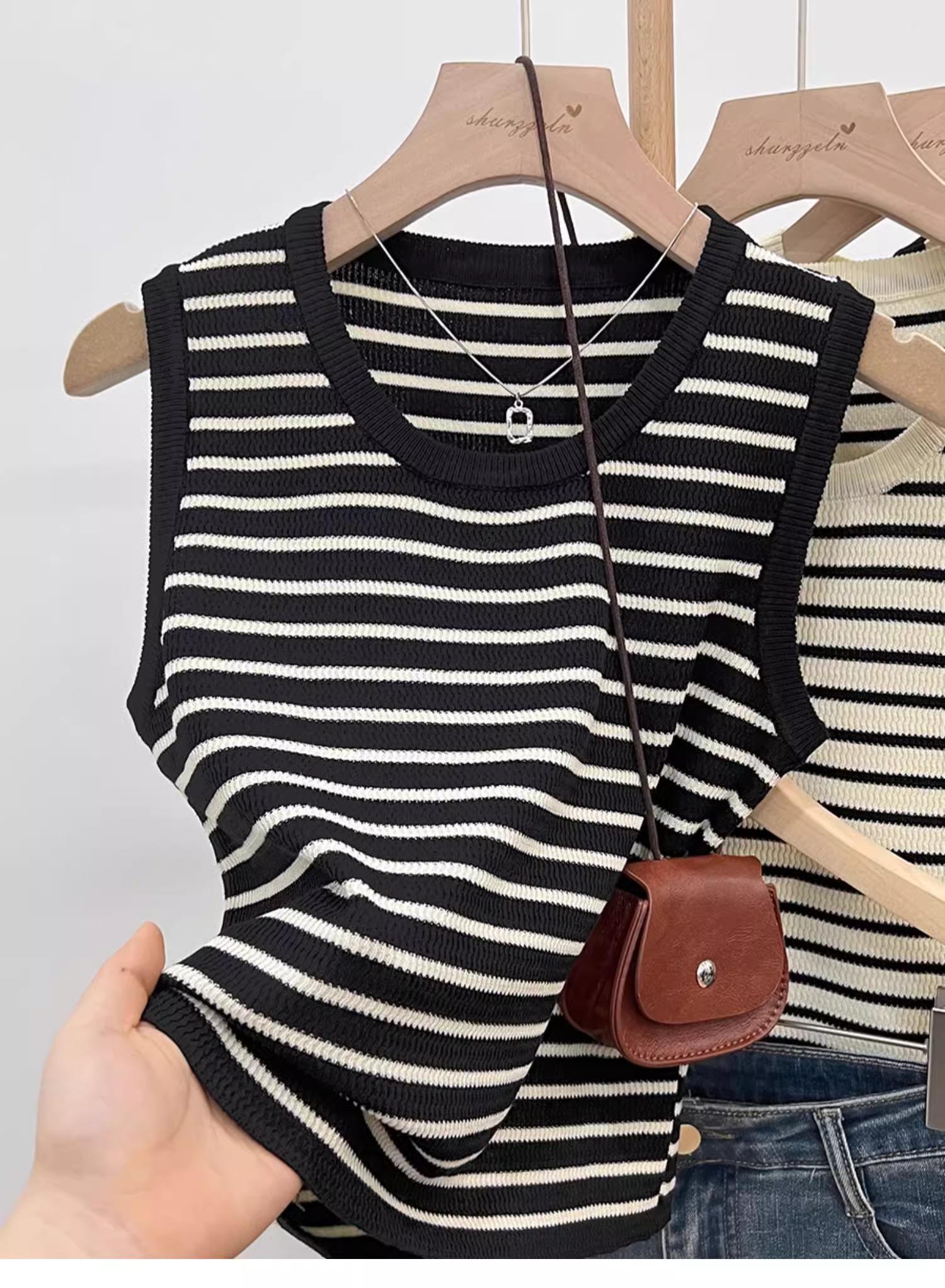 Chaleco de Mujer Ropa Exterior 2025 Verano Nuevo Estilo Top de Tirantes Pequeños sin Mangas con Camiseta Pequeña de Punto Ropa de Mujer