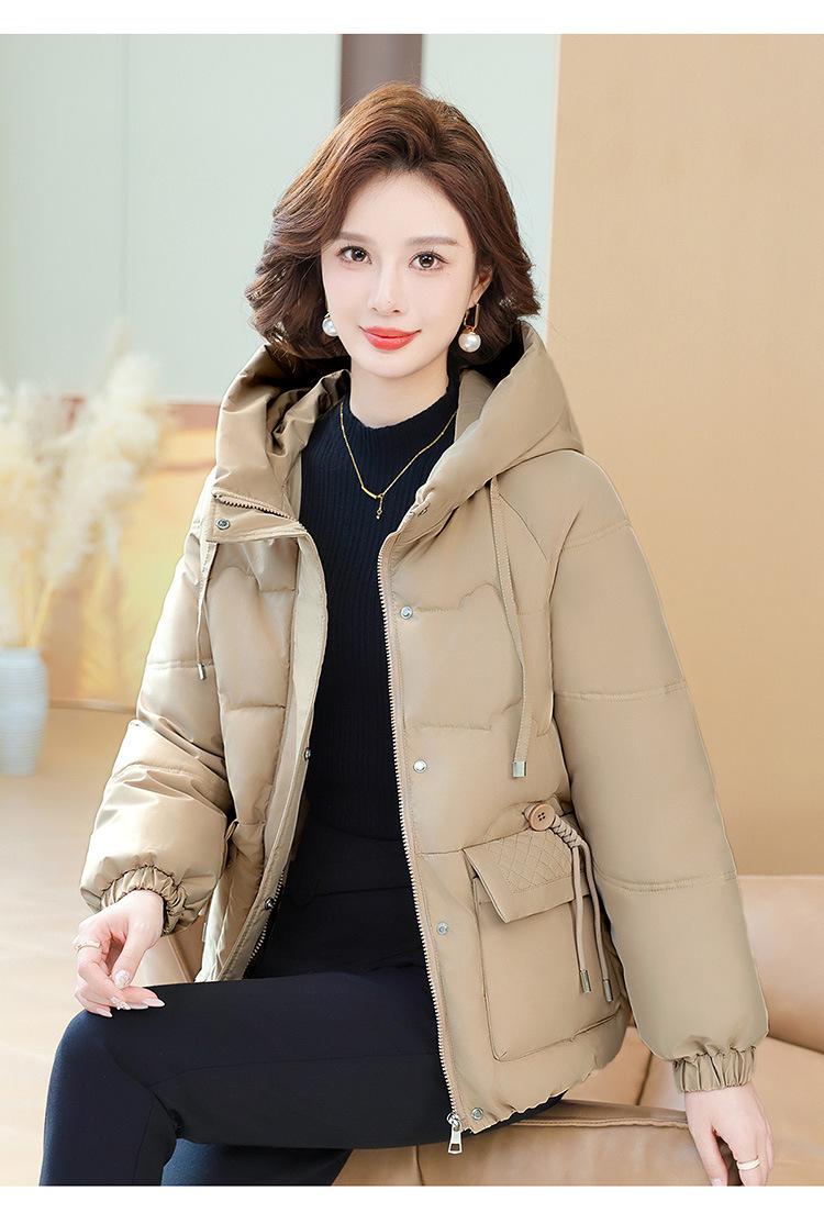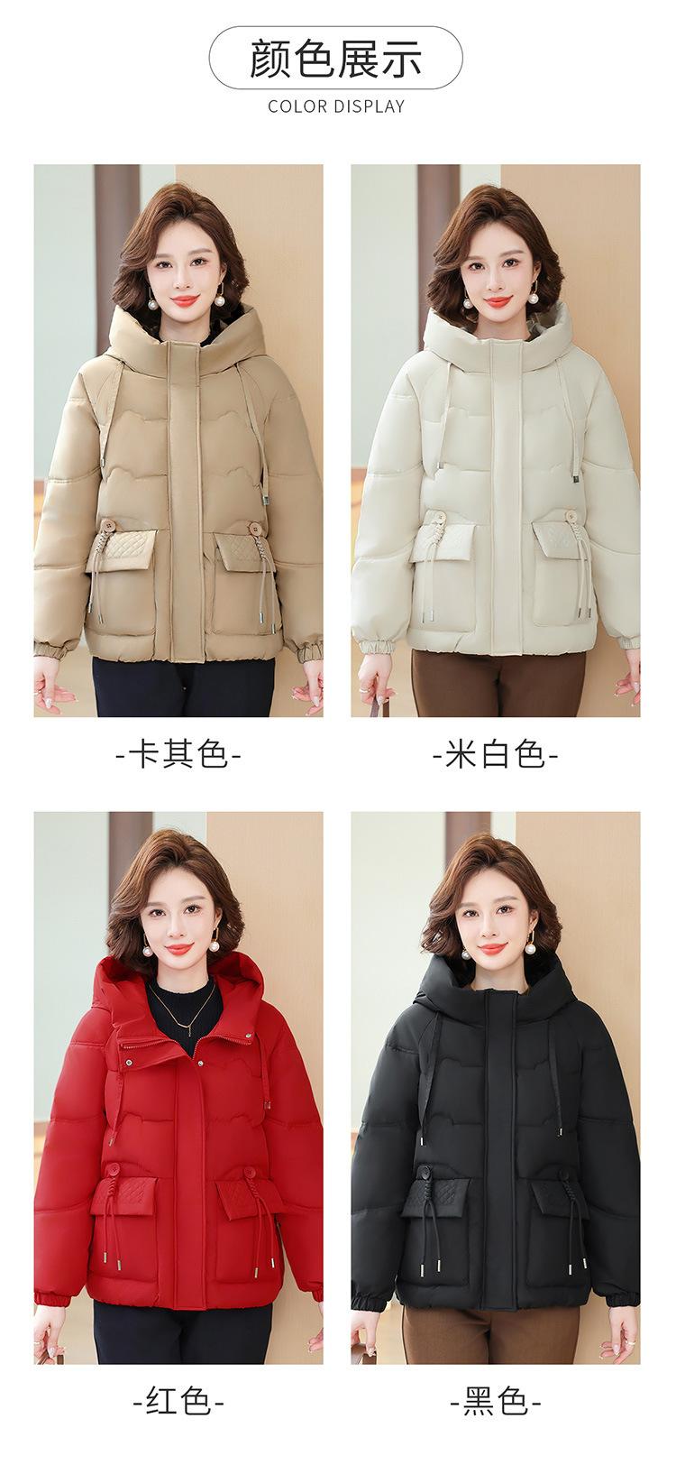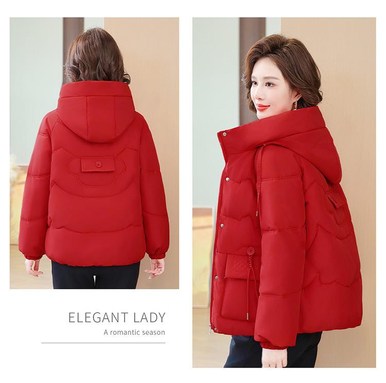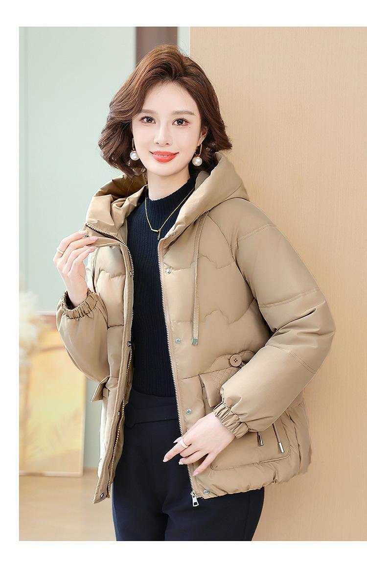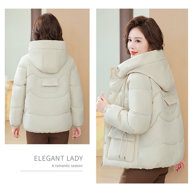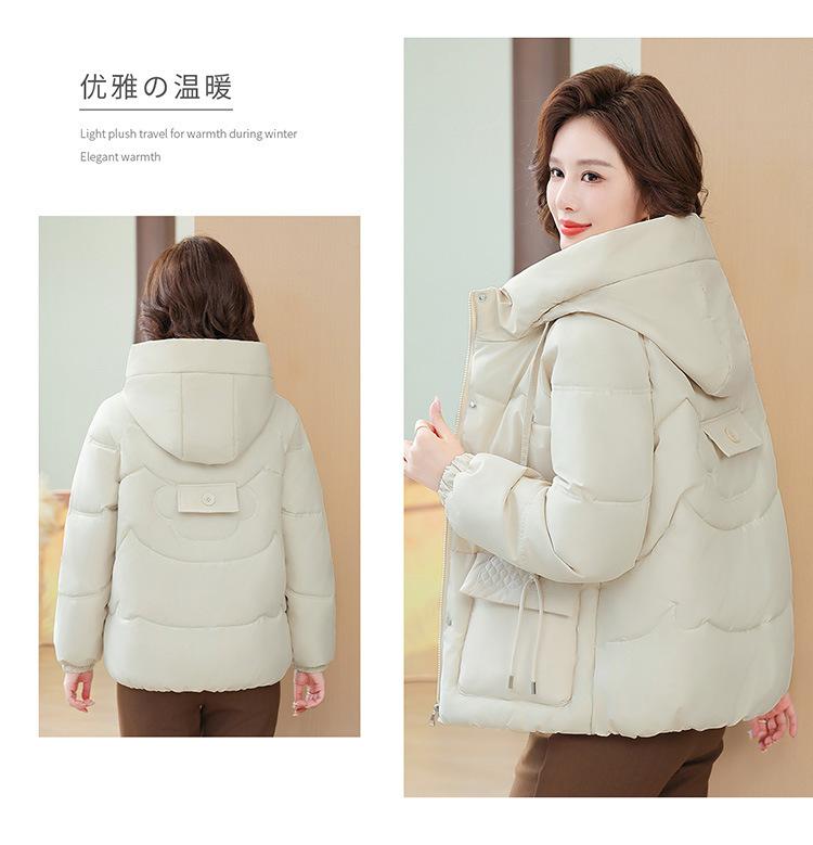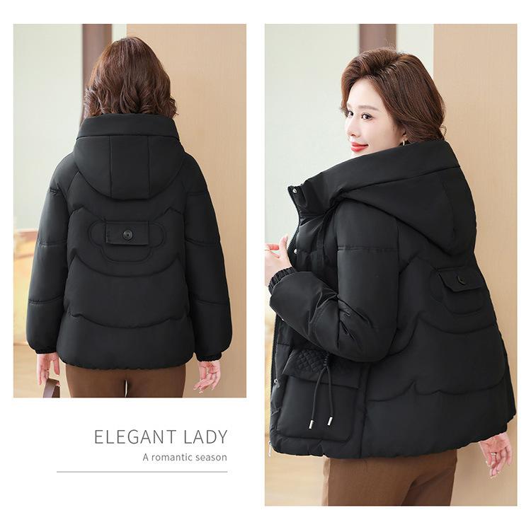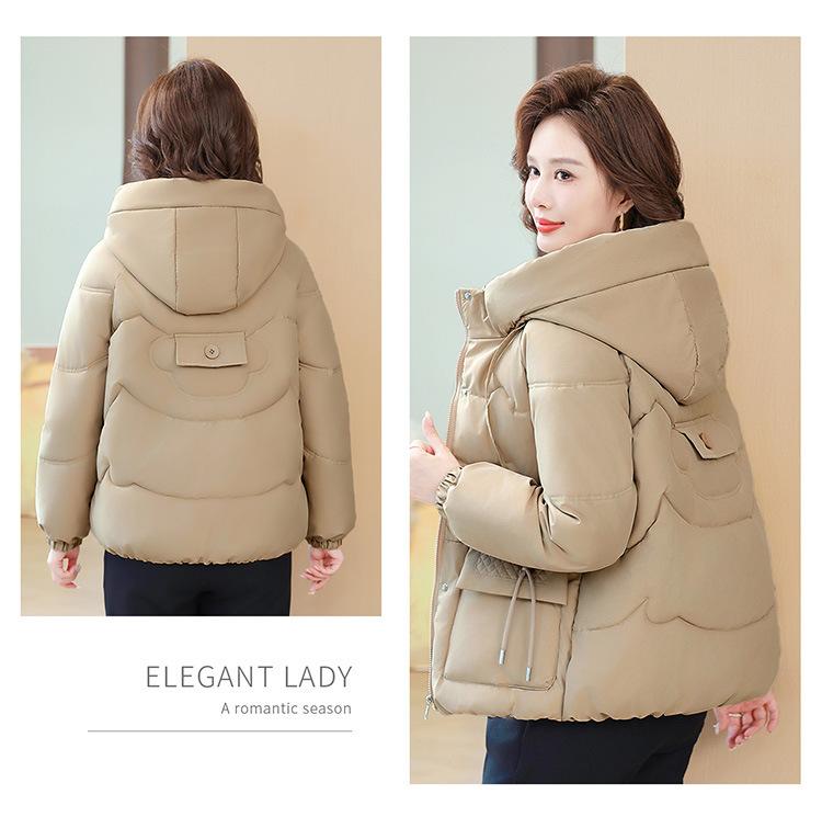 Nueva Chaqueta Corta de Algodón Acolchado 2024 para Mujeres de Mediana Edad Otoño Invierno Suelta Gruesa Cálida Moda Abrigo con Capucha Estilo Extranjero