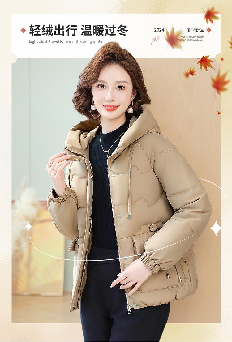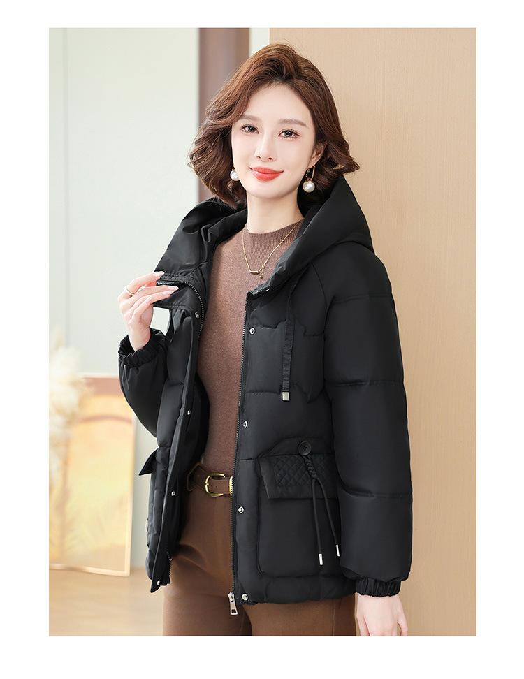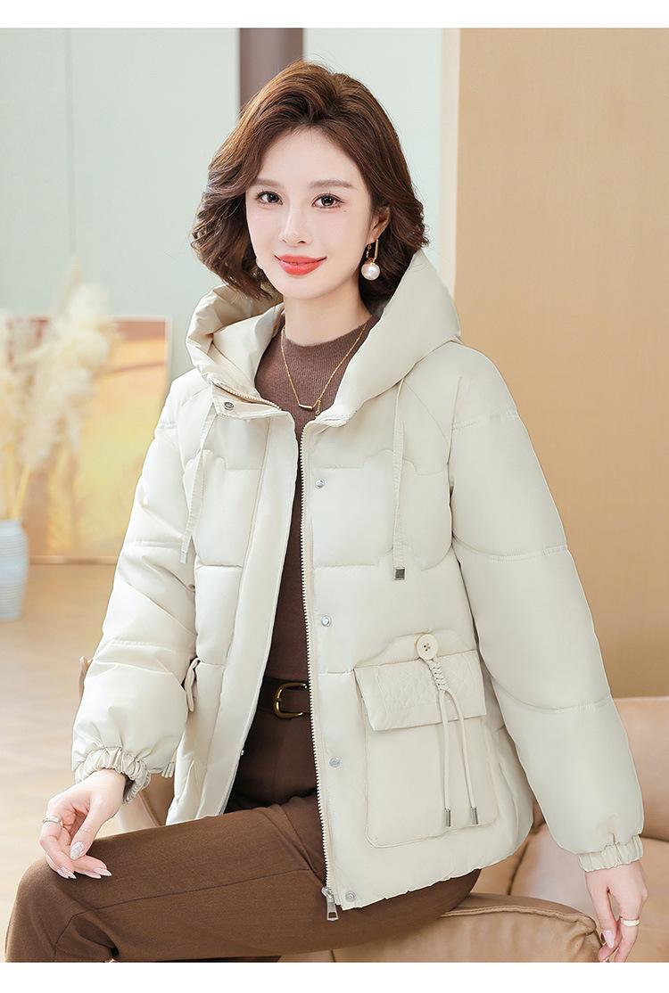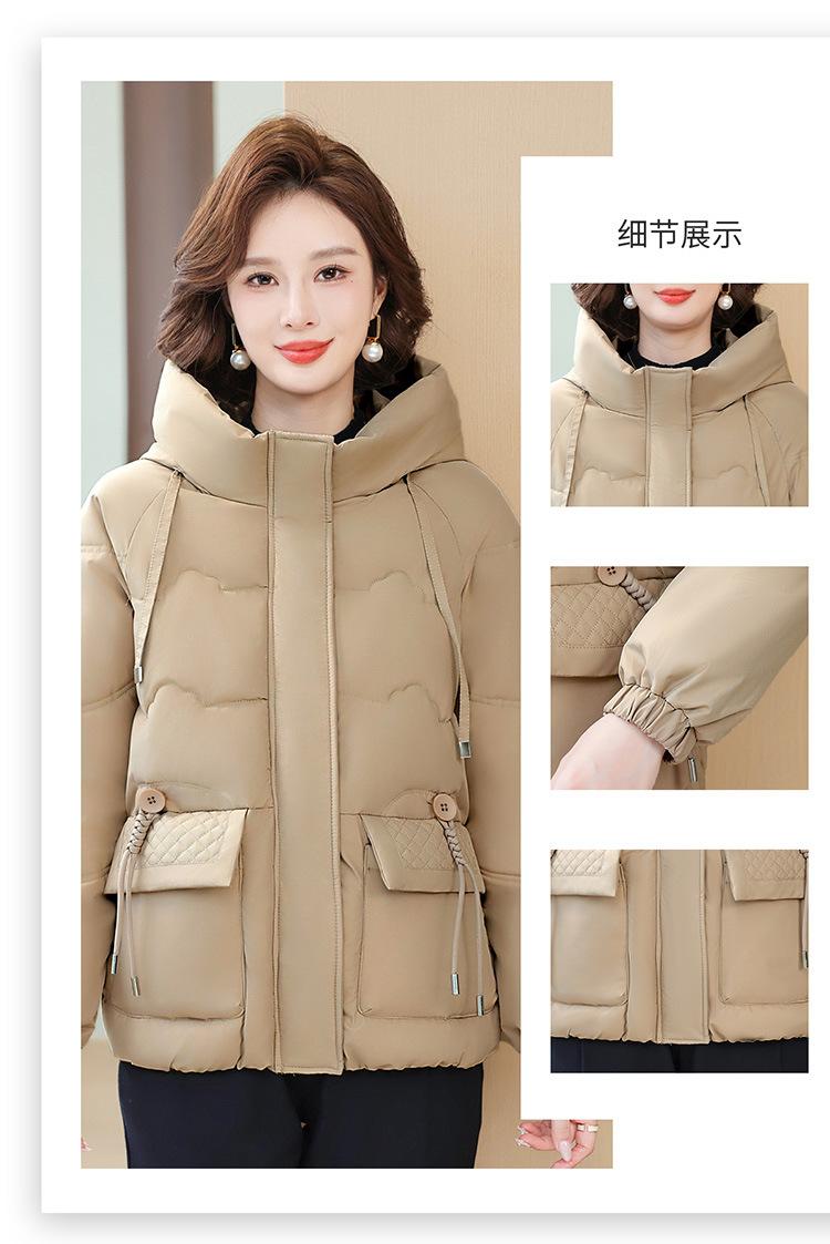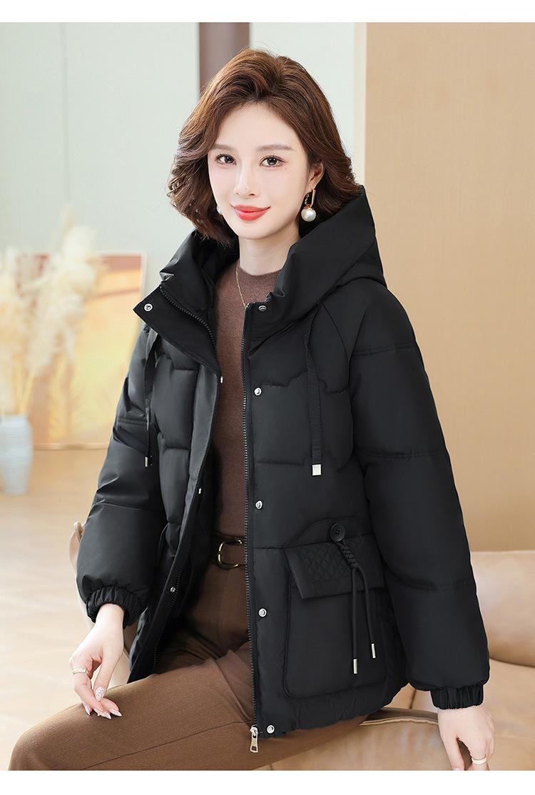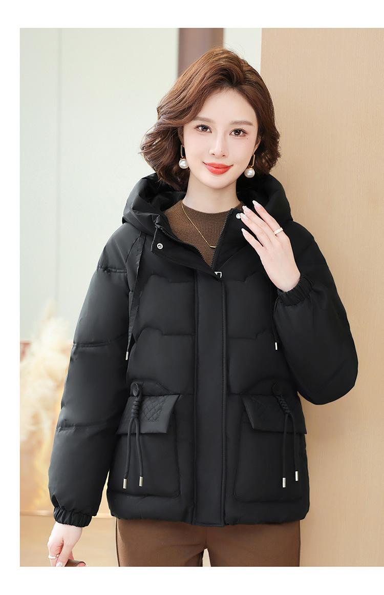 Nueva Chaqueta Corta de Algodón Acolchado 2024 para Mujeres de Mediana Edad Otoño Invierno Suelta Gruesa Cálida Moda Abrigo con Capucha Estilo Extranjero