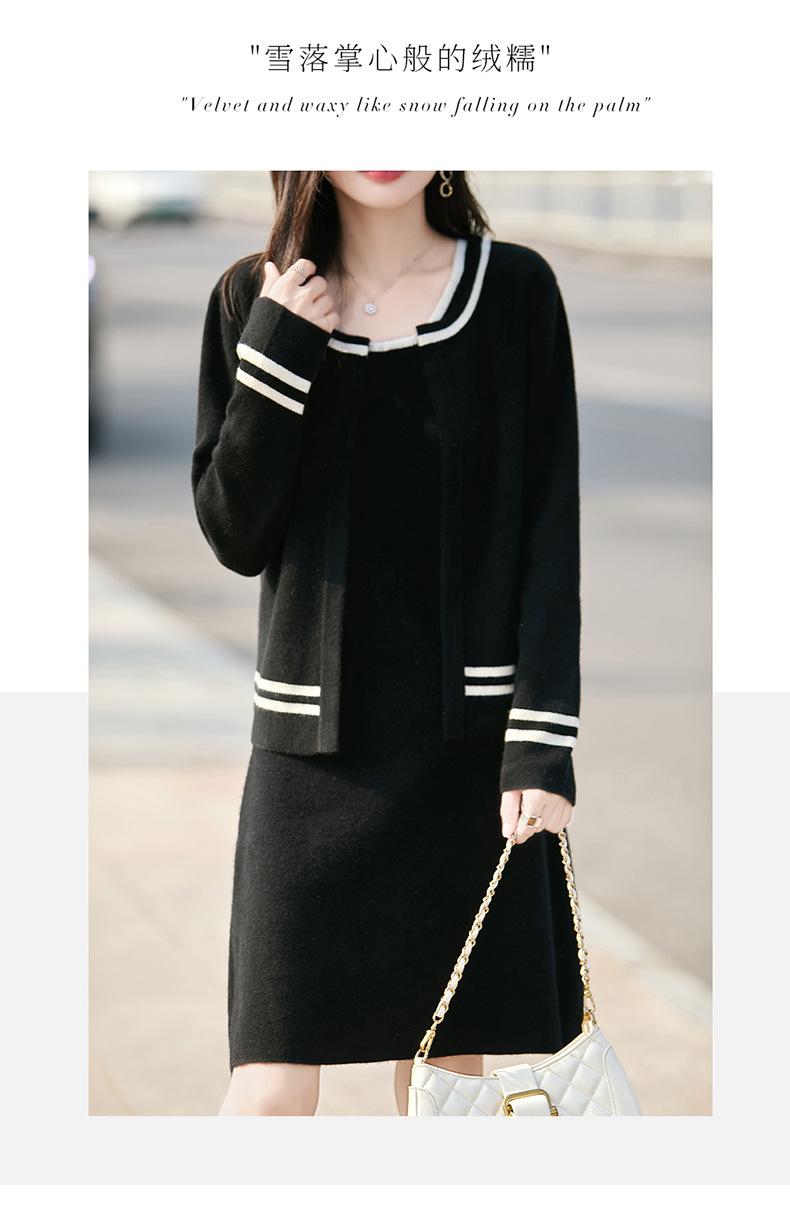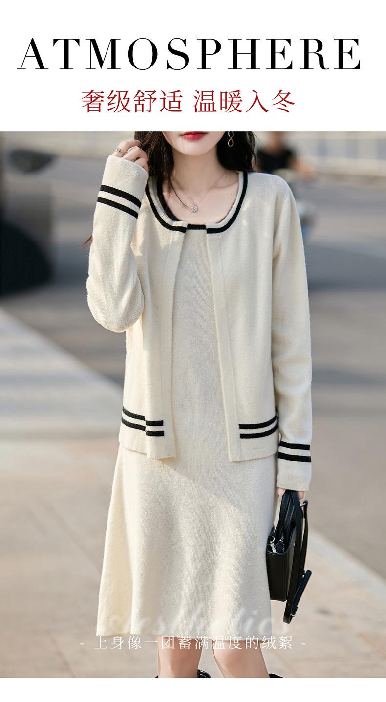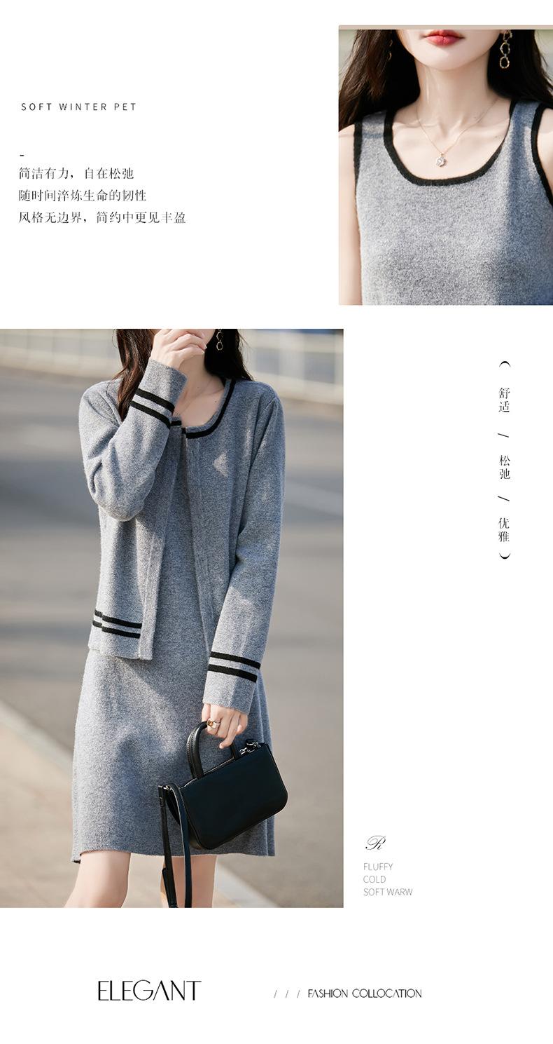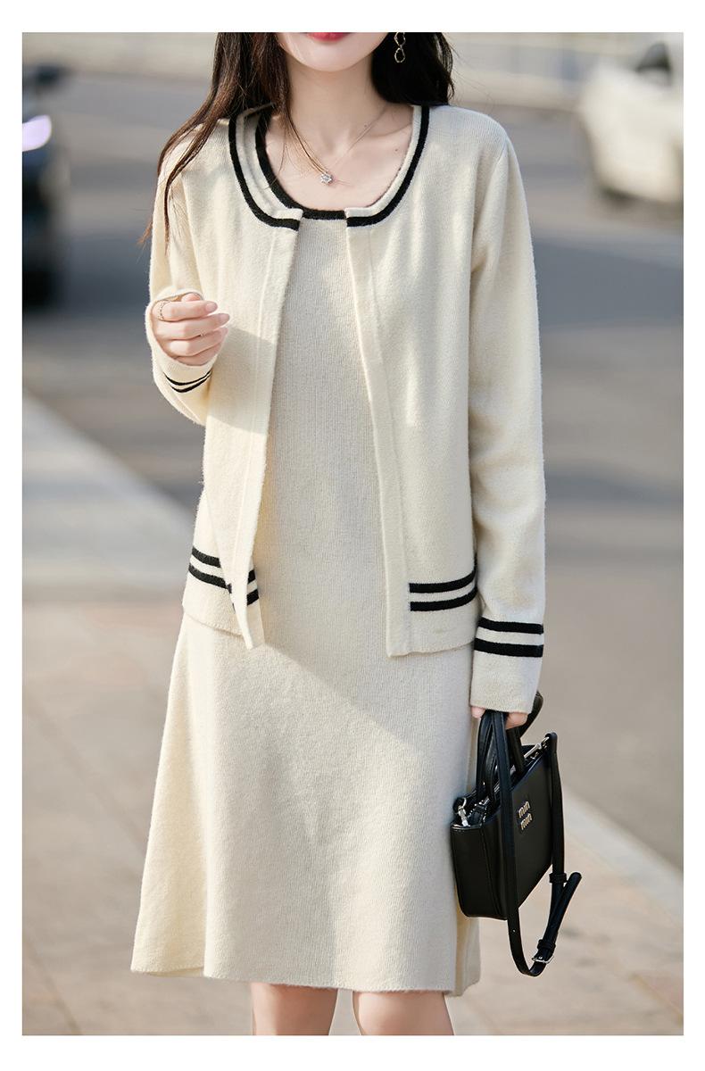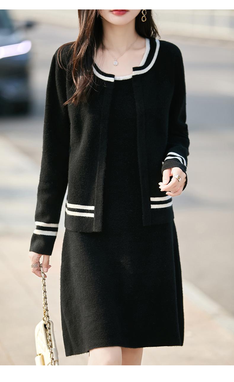 2025 Otoño/Invierno Nuevo Estilo 100% Lana Pura Set Vestido Cárdigan para Mujer Suelto Bloque de Color Capas Conjunto de Dos Piezas